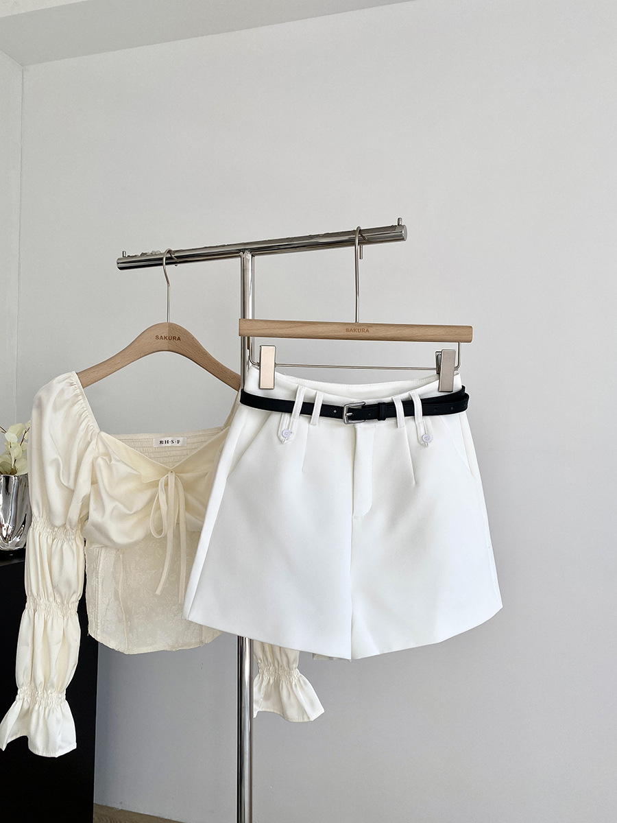 2025년 여름 신상 한국식 쁘띠 캐주얼 정장 반바지, 여성스럽고 활용도가 높은 하이웨이스트 슬리밍 와이드 팬츠