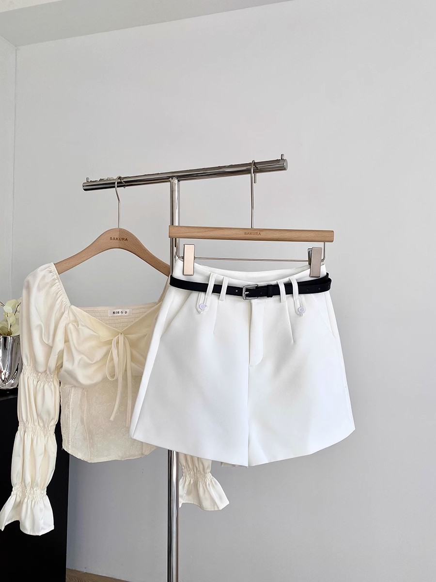 2025년 여름 신상 한국식 쁘띠 캐주얼 정장 반바지, 여성스럽고 활용도가 높은 하이웨이스트 슬리밍 와이드 팬츠스토어 가기