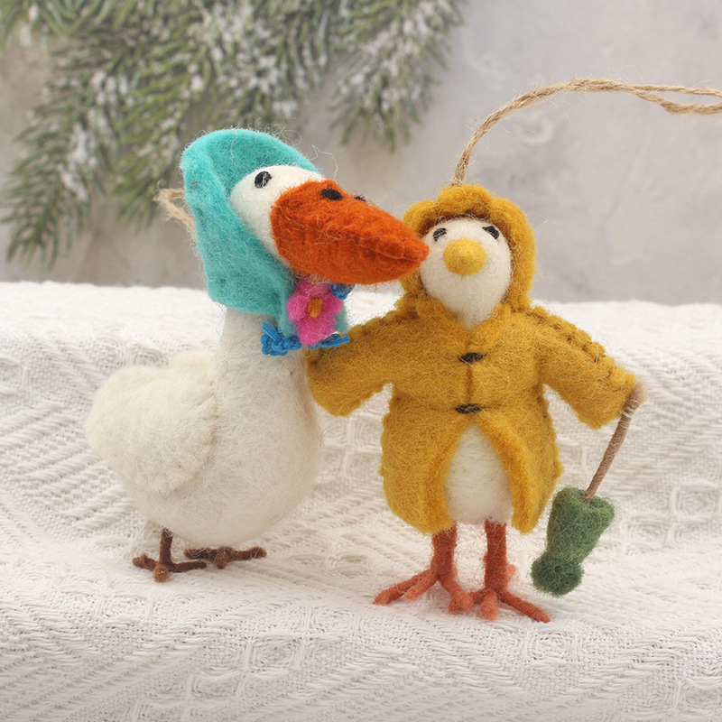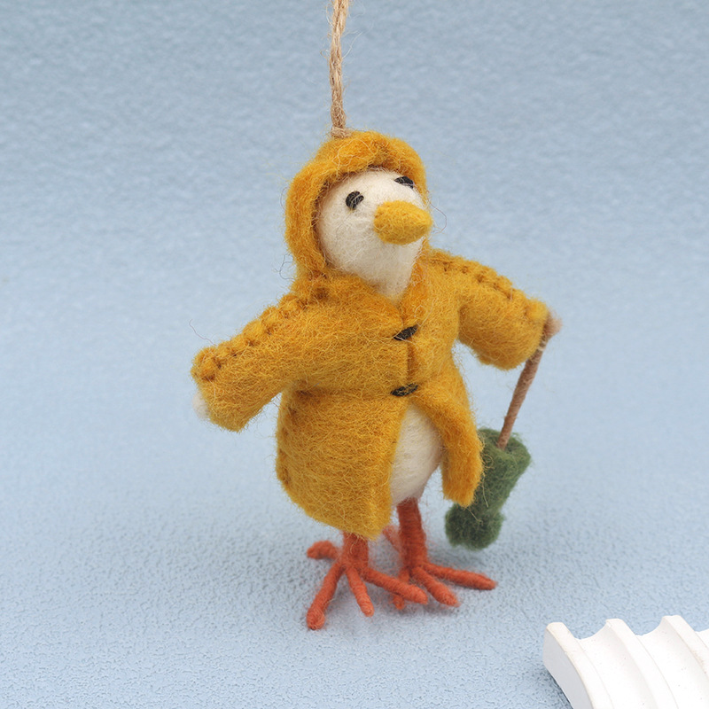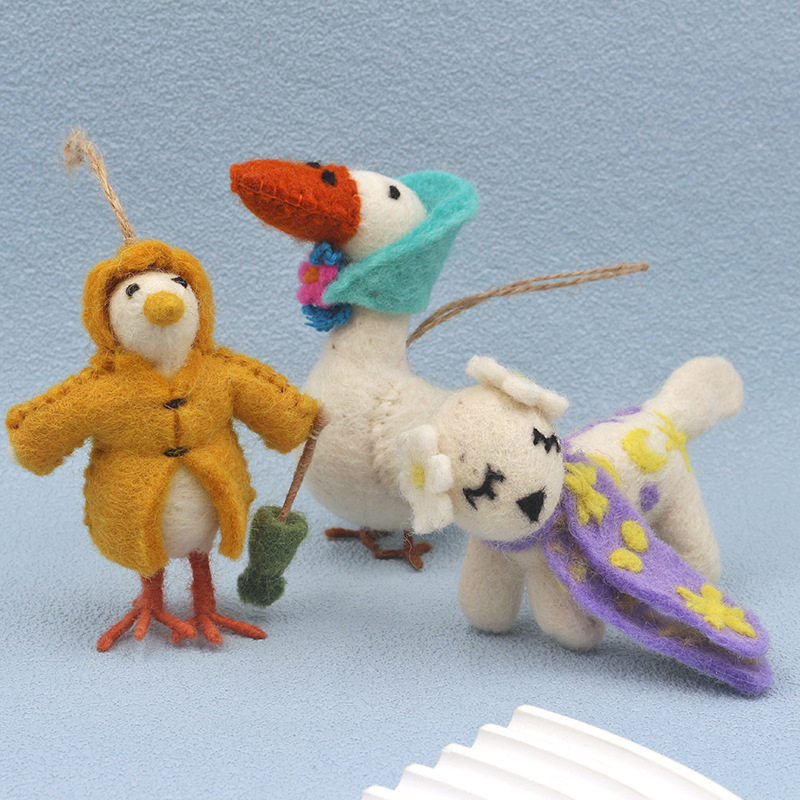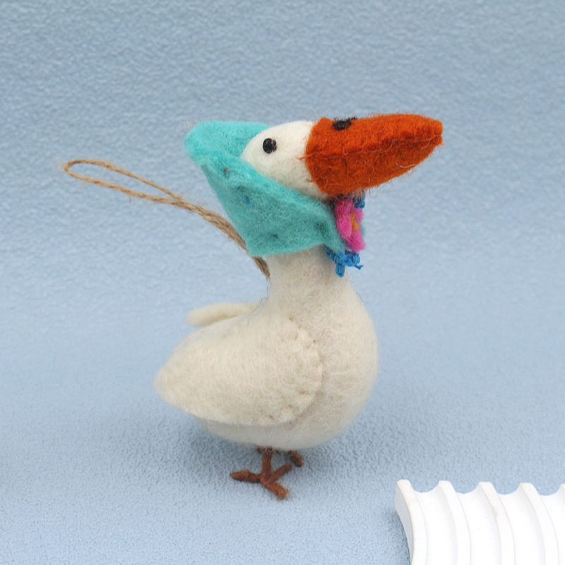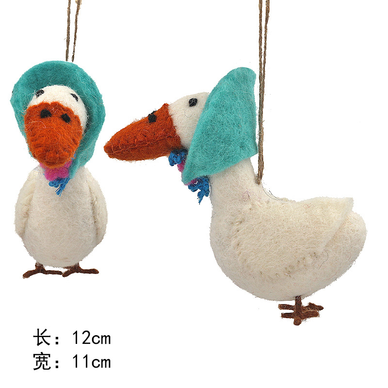 만화 블루 터번 거위 작은 노란색 오리 네팔 양모 펠트 펜던트 귀여운 작은 꽃 개 가방 인형 펜던트 선물