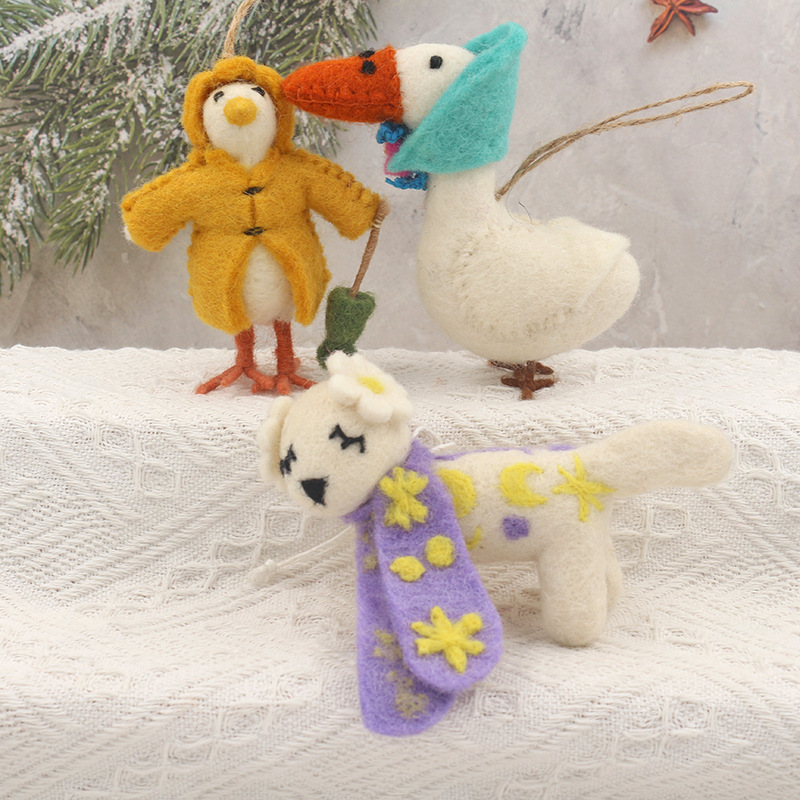 만화 블루 터번 거위 작은 노란색 오리 네팔 양모 펠트 펜던트 귀여운 작은 꽃 개 가방 인형 펜던트 선물스토어 가기