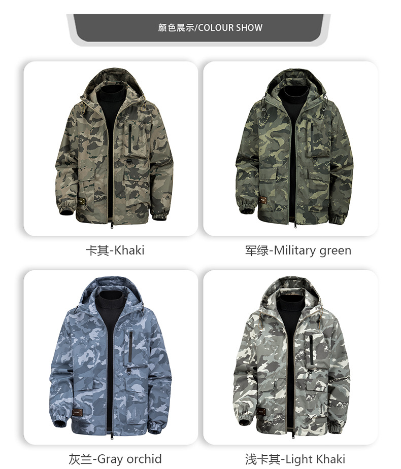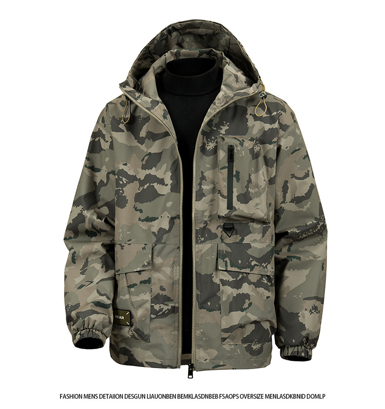 국경 간 도매 2025 새로운 가을, 겨울 남성 후드 위장 재킷 세련된 방수 및 따뜻한 재킷