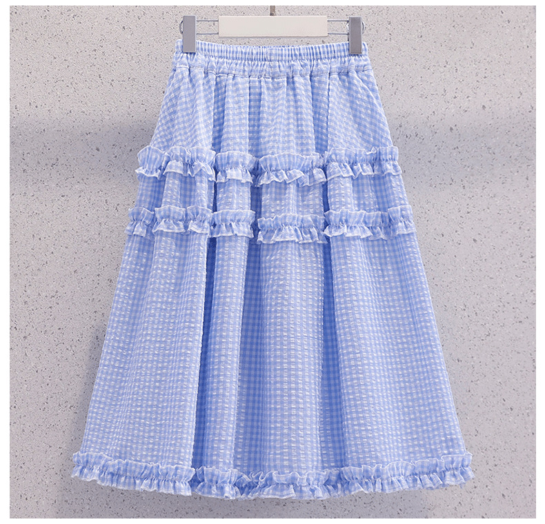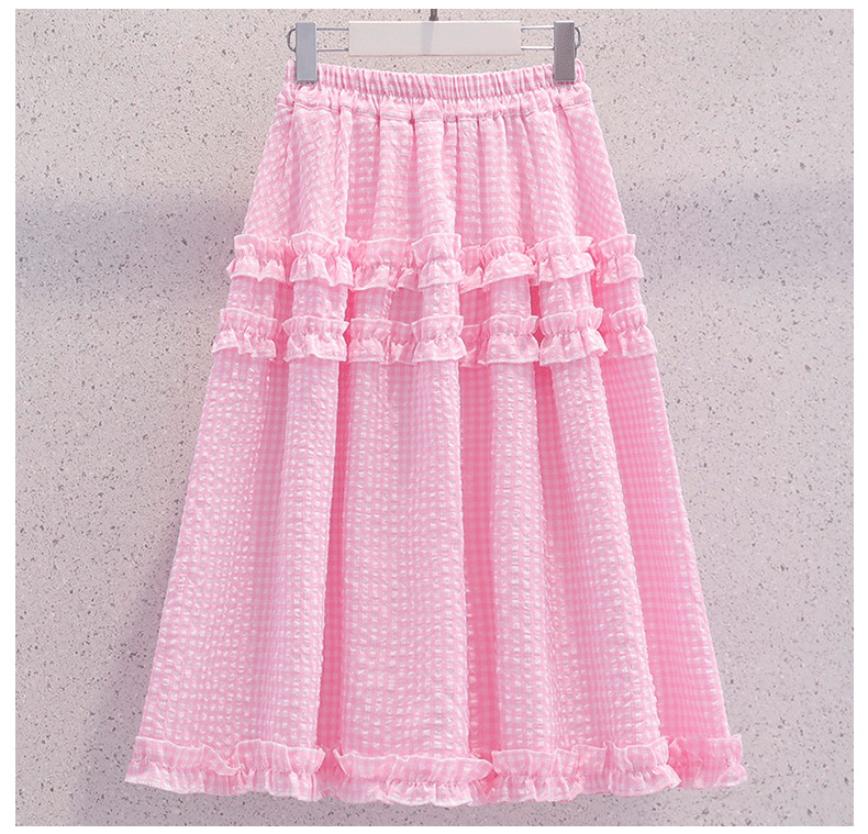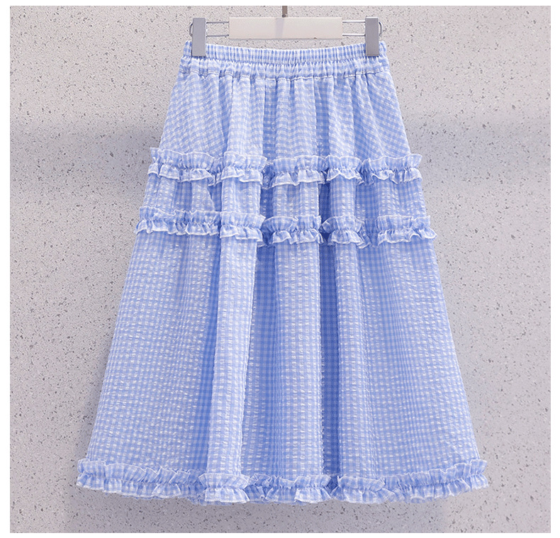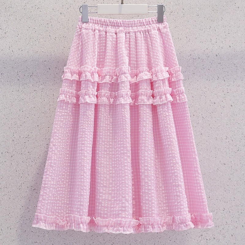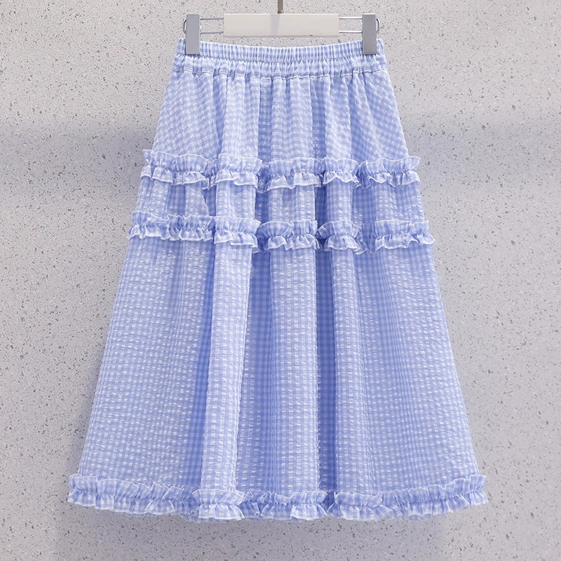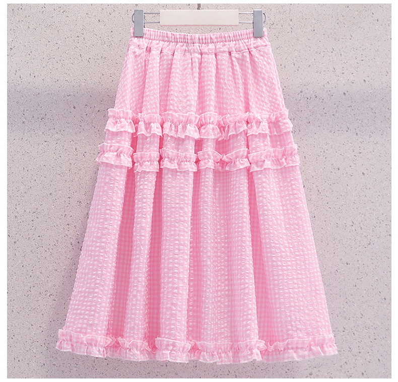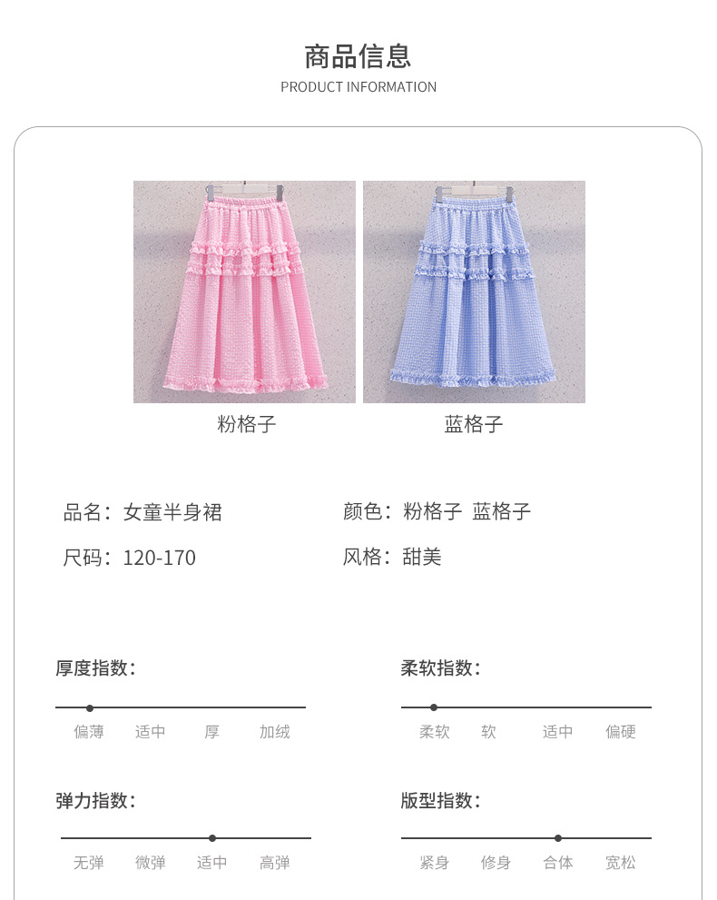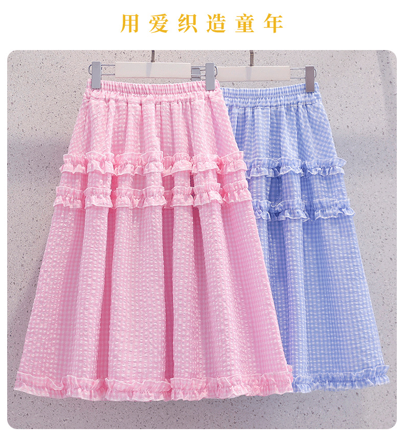 여아 격자 무늬 스커트 여름 새 스타일 어린 소녀 달콤하고 패셔너블하며 다재다능한 중대형 어린이 레이스 중간 길이 스커트스토어 가기