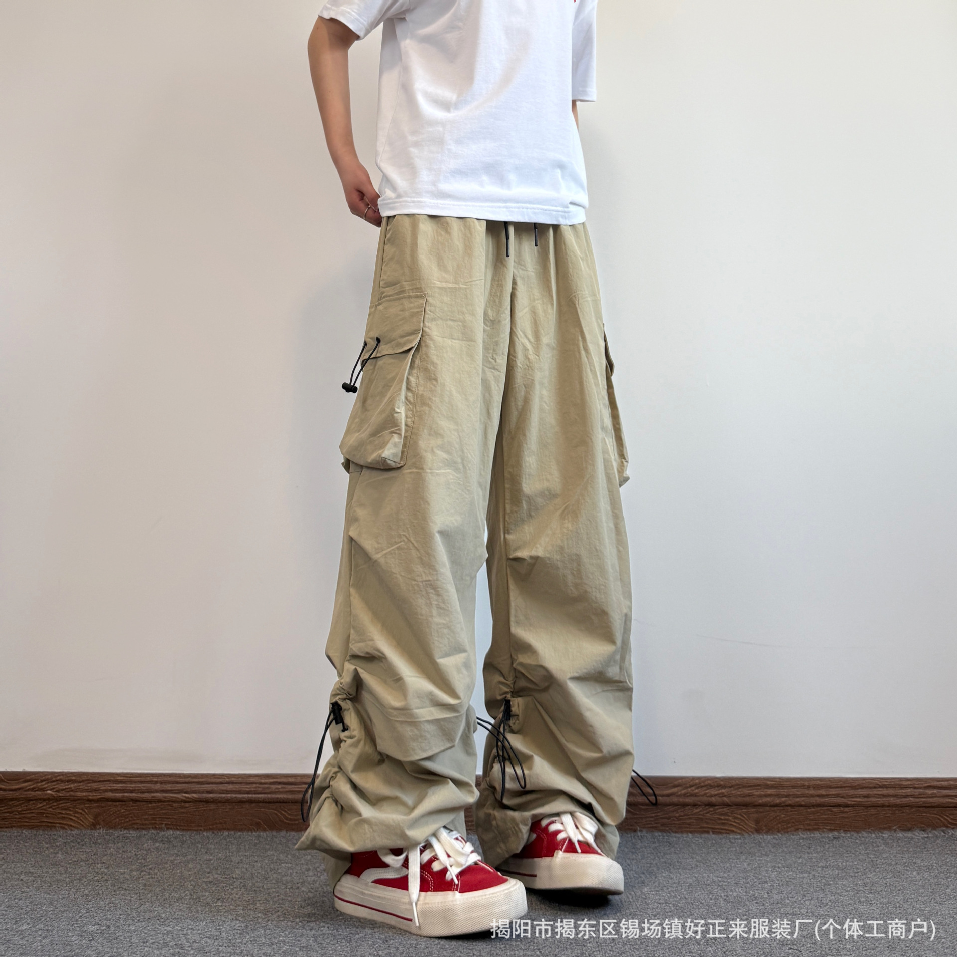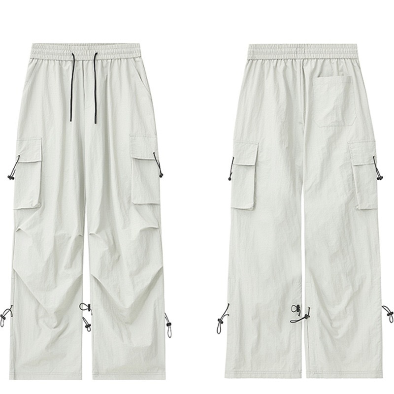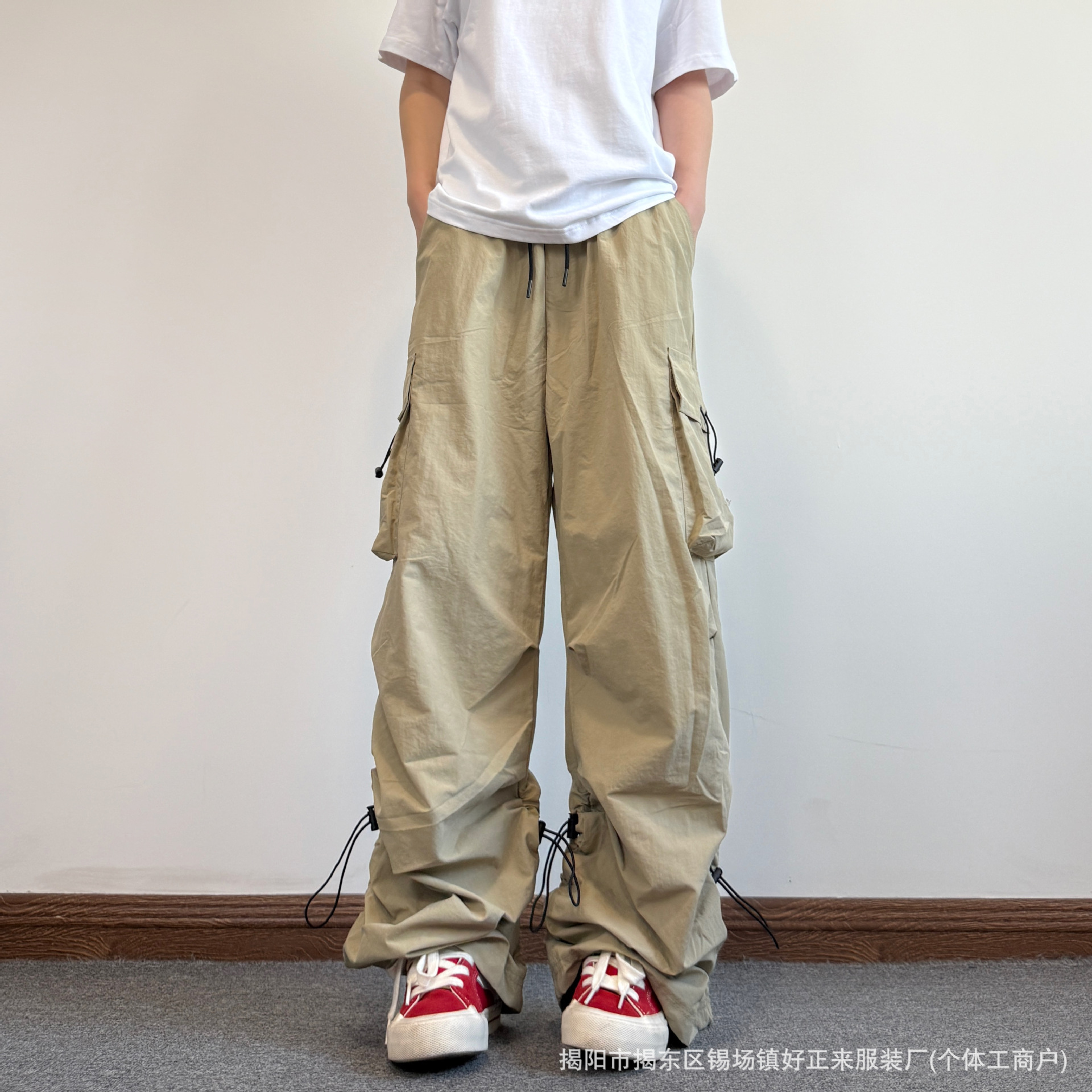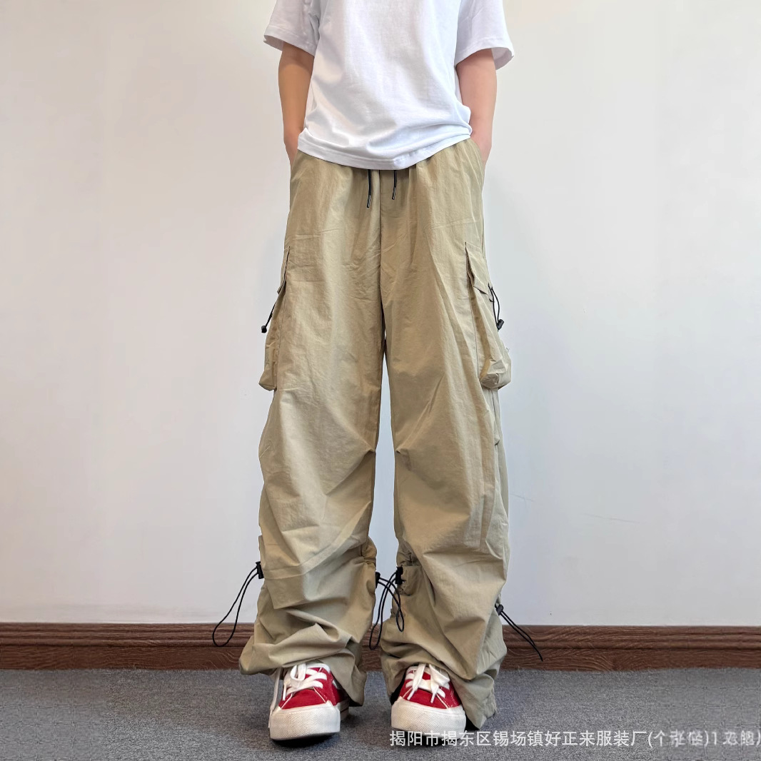 남성용 아웃도어 멀티 포켓 속건성 낙하산 바지, 여름용 얇은 아이스 실크 어썰트 팬츠, 미국 트렌디 브랜드 와이드 팬츠