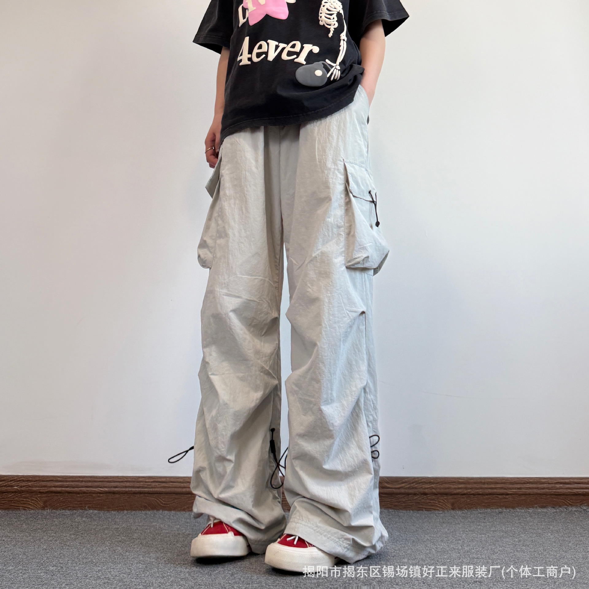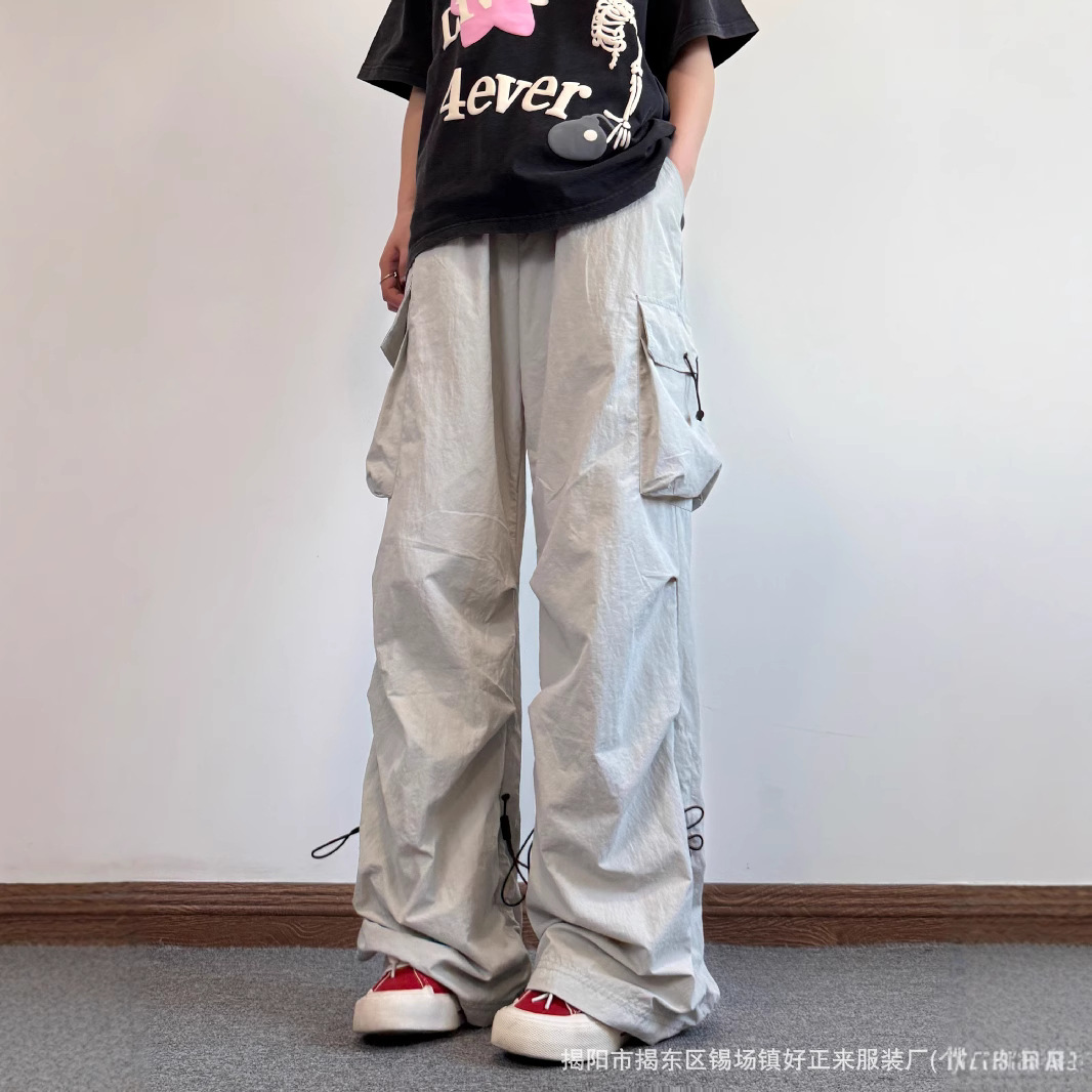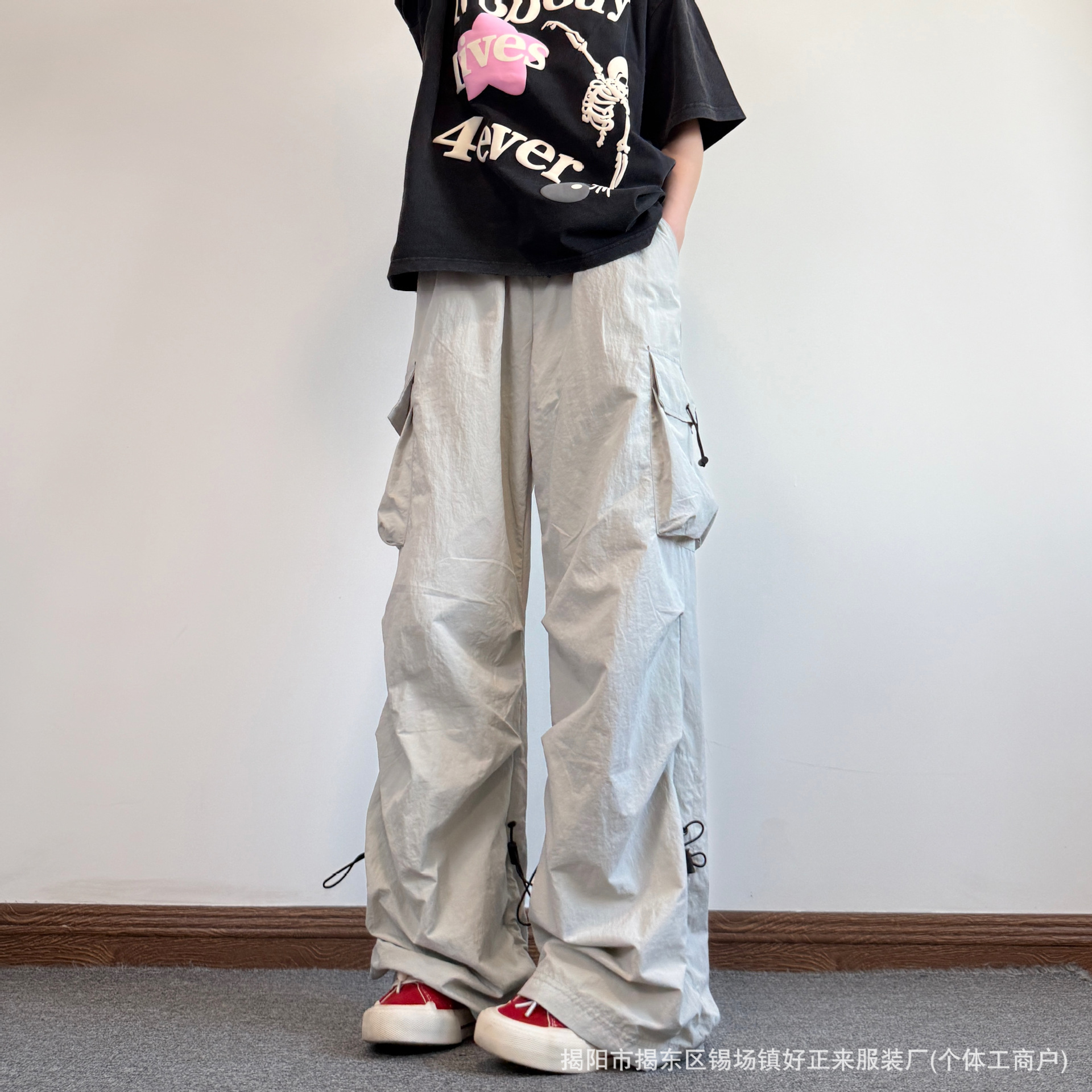 남성용 아웃도어 멀티 포켓 속건성 낙하산 바지, 여름용 얇은 아이스 실크 어썰트 팬츠, 미국 트렌디 브랜드 와이드 팬츠