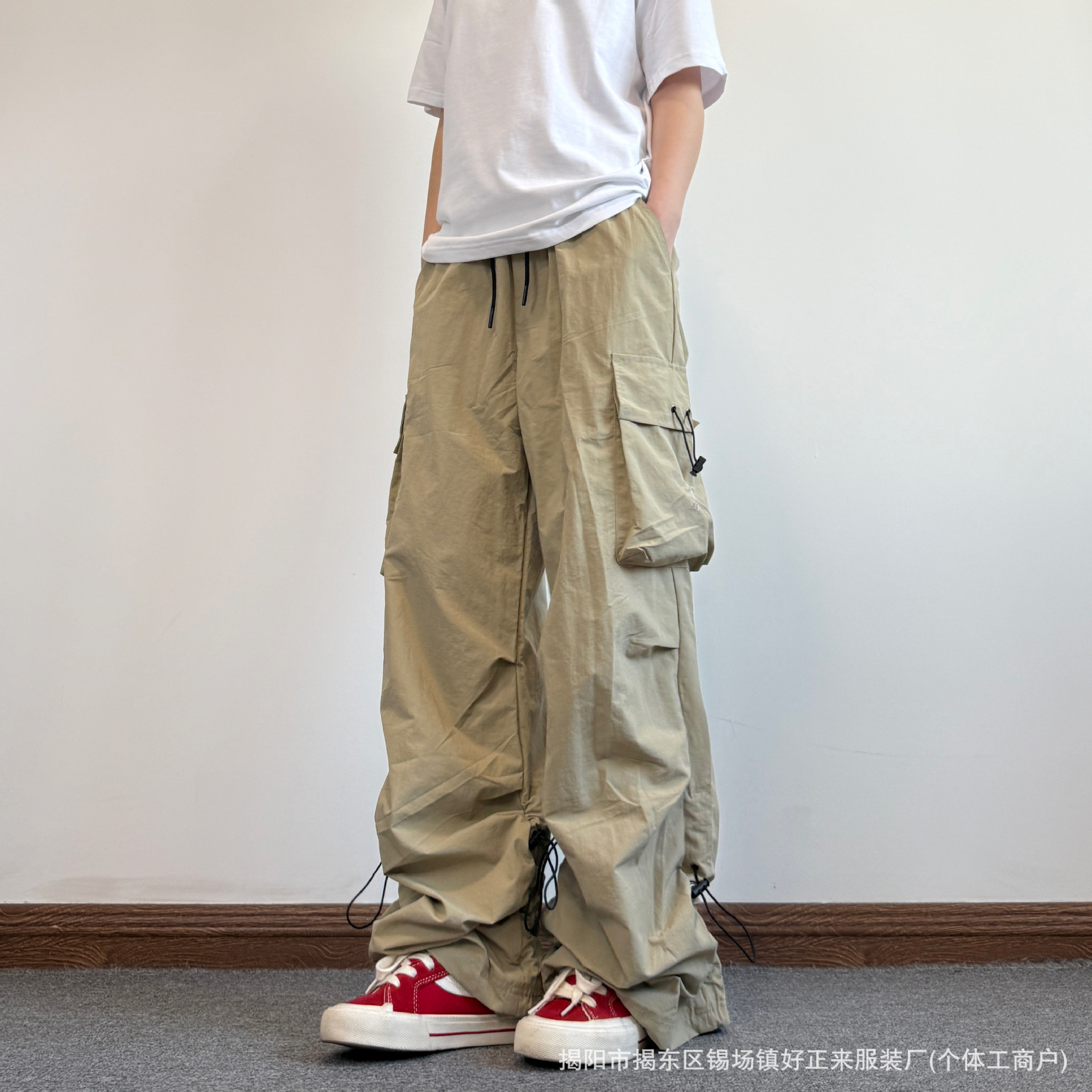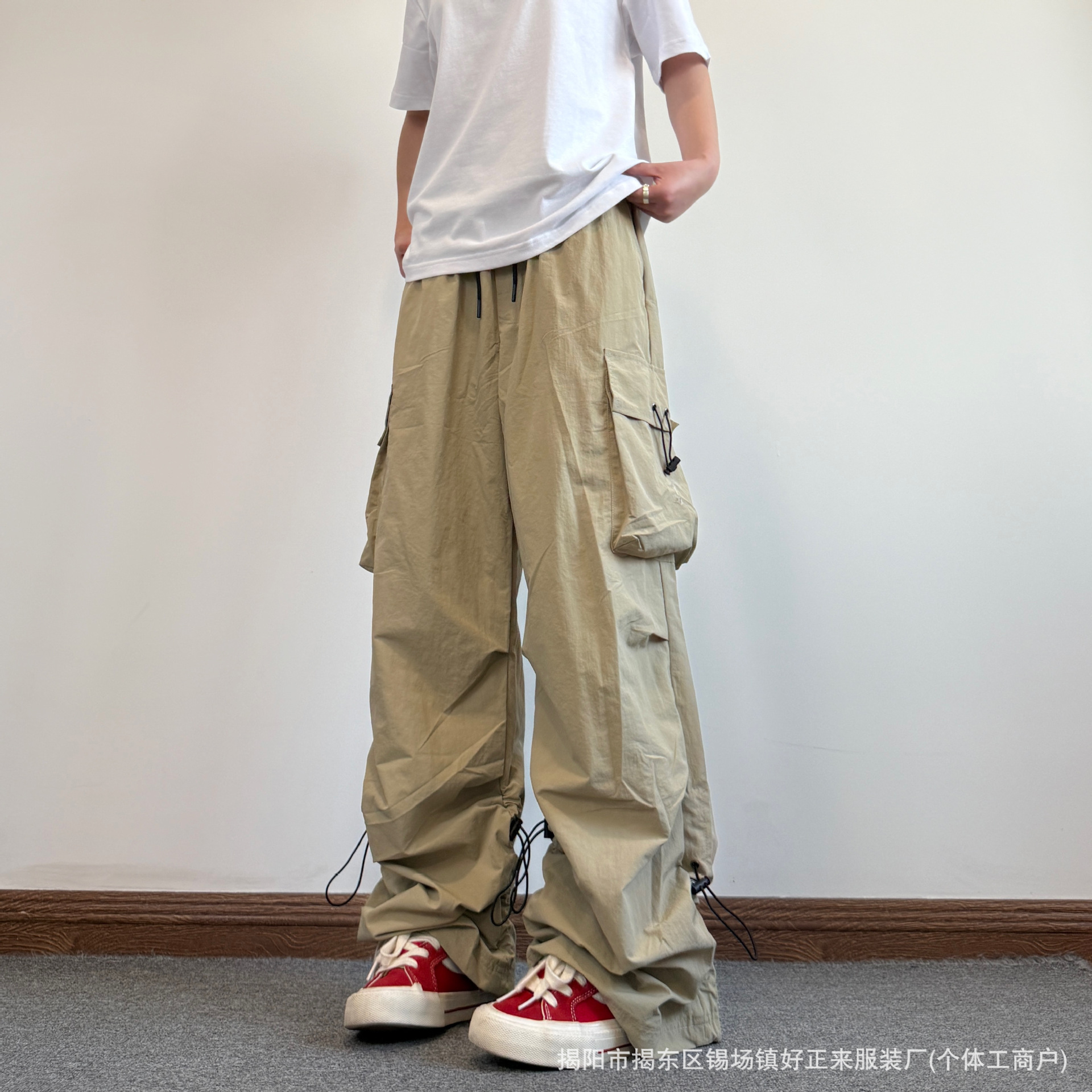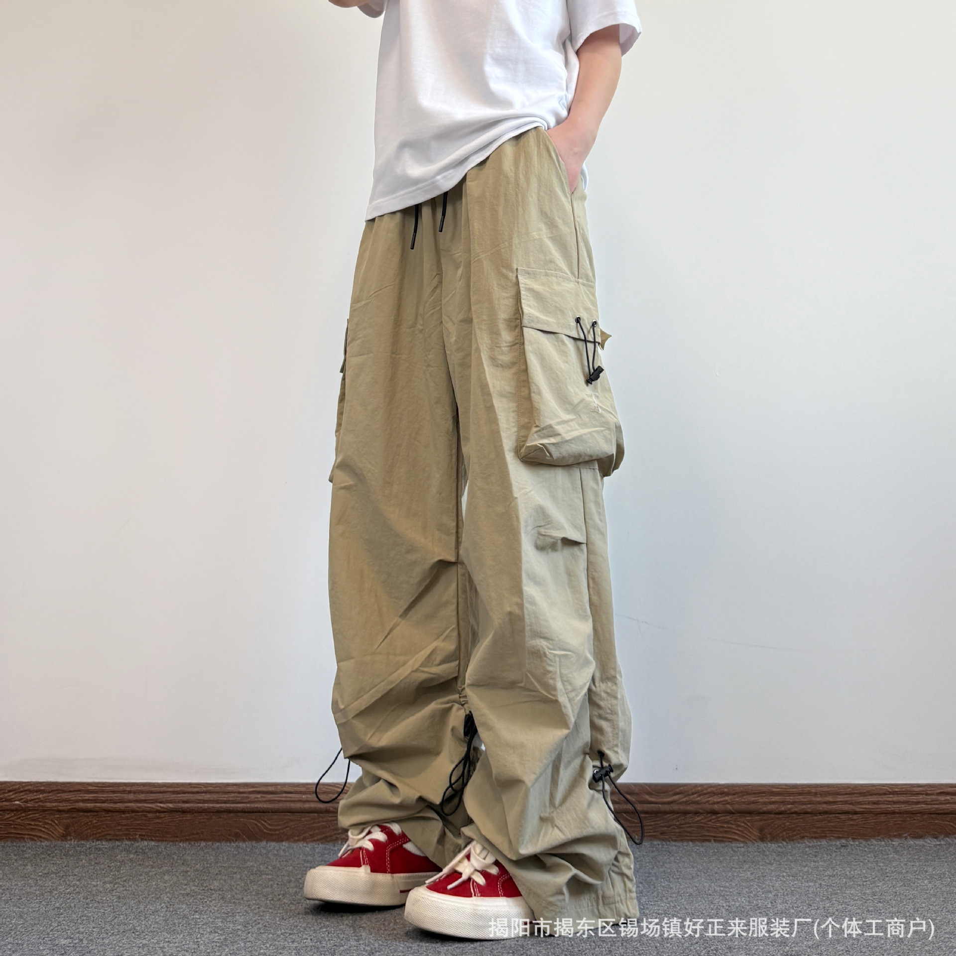 남성용 아웃도어 멀티 포켓 속건성 낙하산 바지, 여름용 얇은 아이스 실크 어썰트 팬츠, 미국 트렌디 브랜드 와이드 팬츠스토어 가기