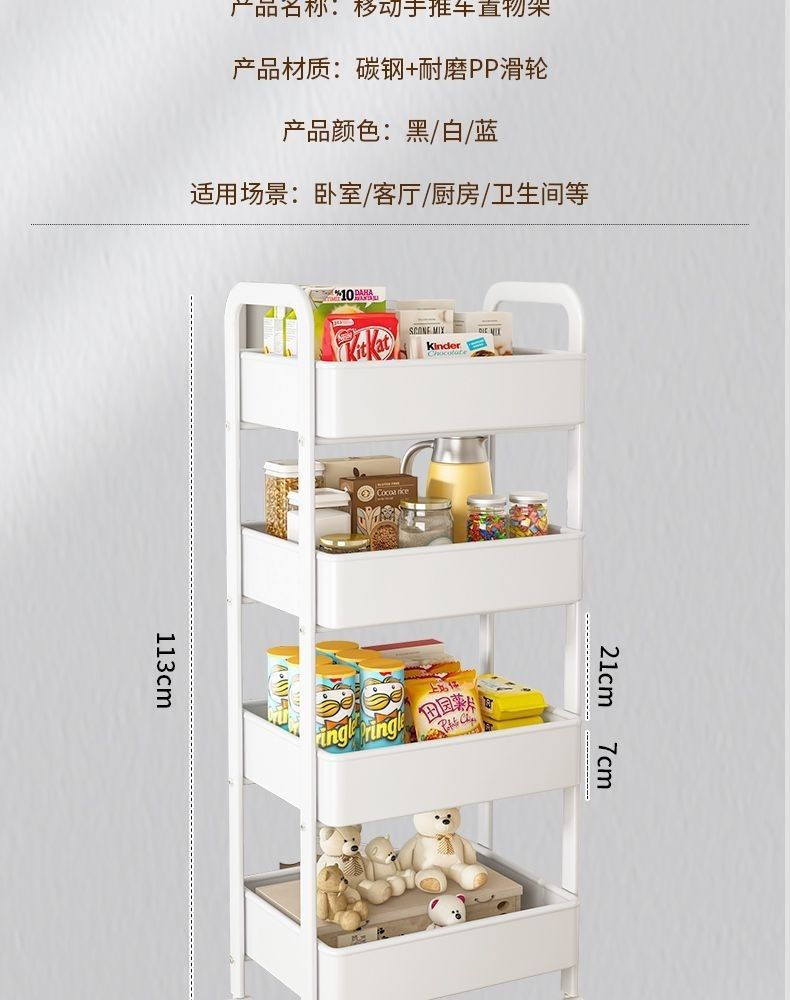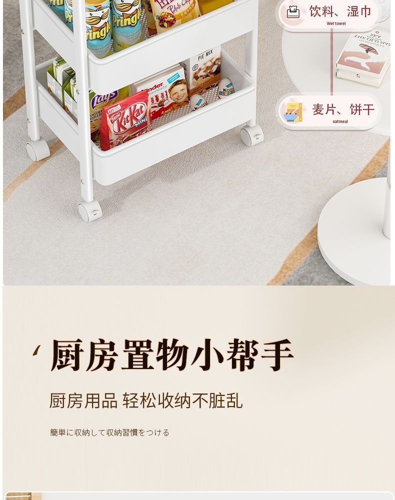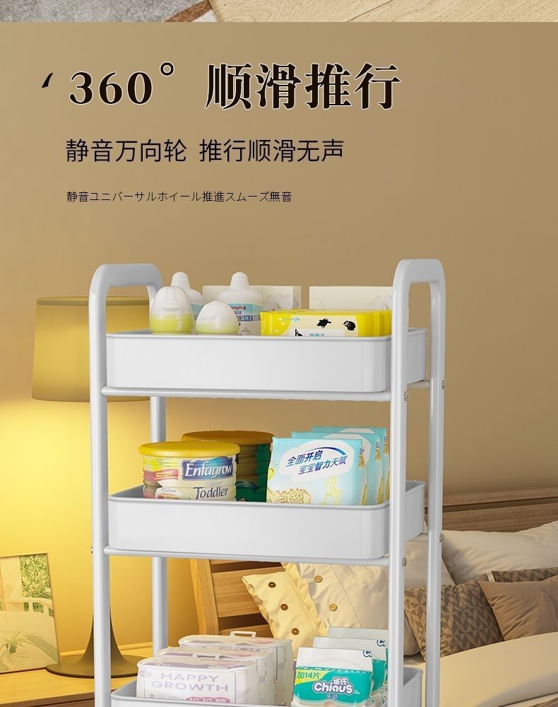 트롤리 보관 랙 바닥에서 천장까지 주방 욕실 모바일 스낵 욕실 다층 침실 머리맡 보관 랙스토어 가기