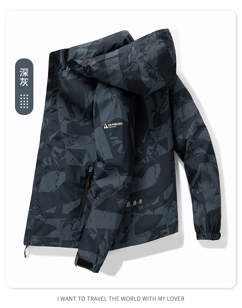 남성용 재킷, 봄, 가을 신작 위장 스포츠 남성용 탑, 탈착식 후드 트렌디 브랜드 재킷 남성용스토어 가기