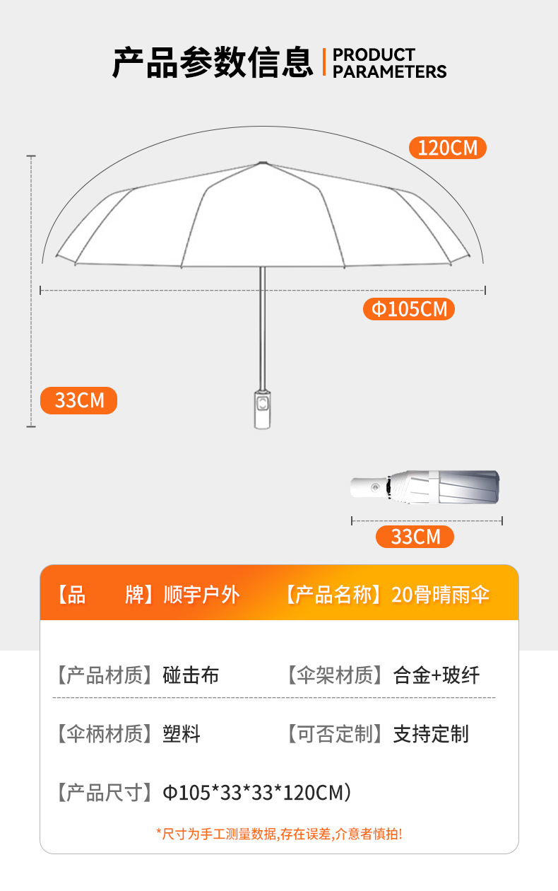 20본 자동 우산, 두꺼운 블랙코팅, 자외선 차단, 햇빛 가리개, 인스 스타일, 학생용, 자외선 차단, 비/햇빛 겸용 우산, UPF50+스토어 가기