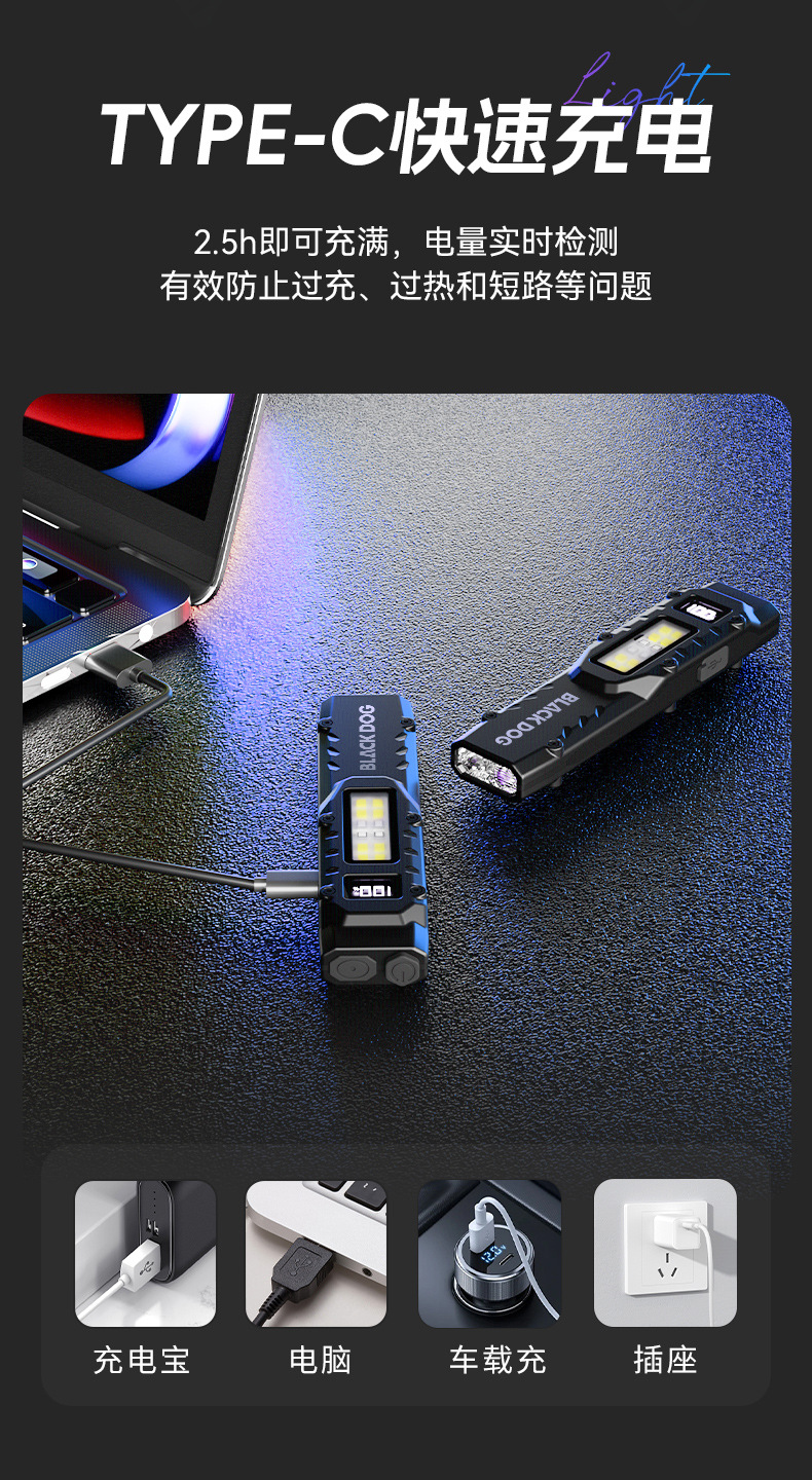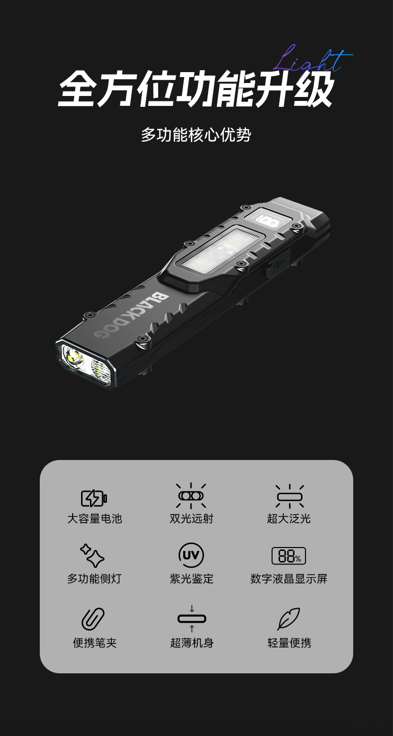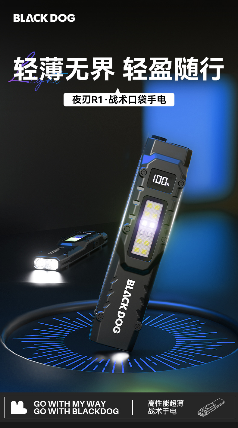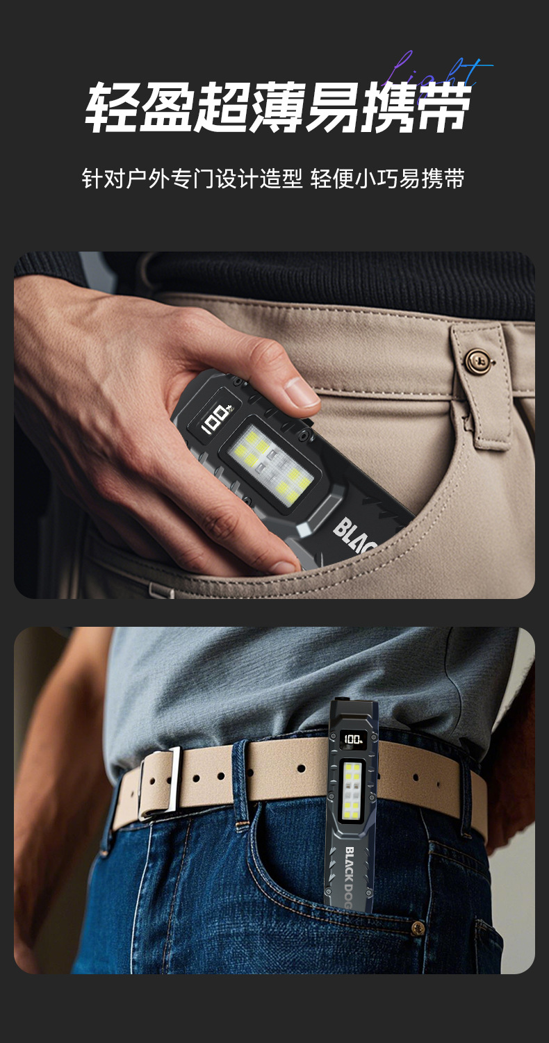 Blackdog 야외 새로운 휴대용 비상 조명 초박형 전술 포켓 손전등 밝은 손전등