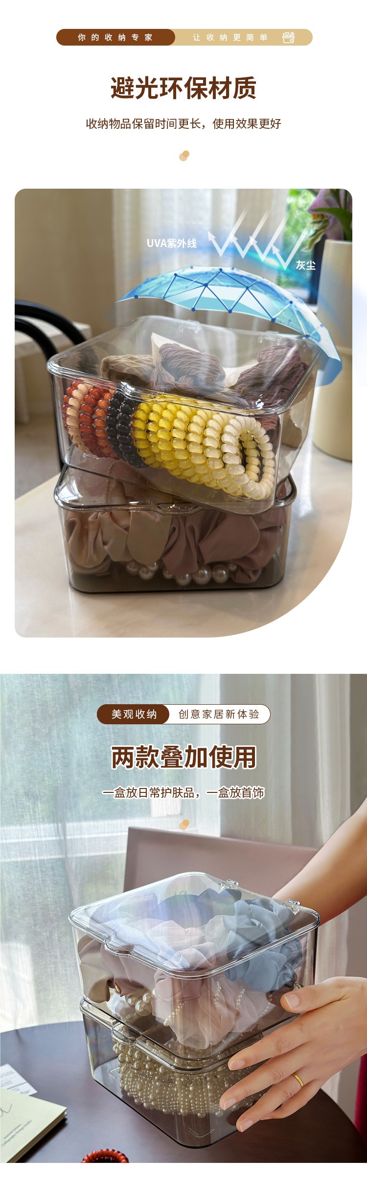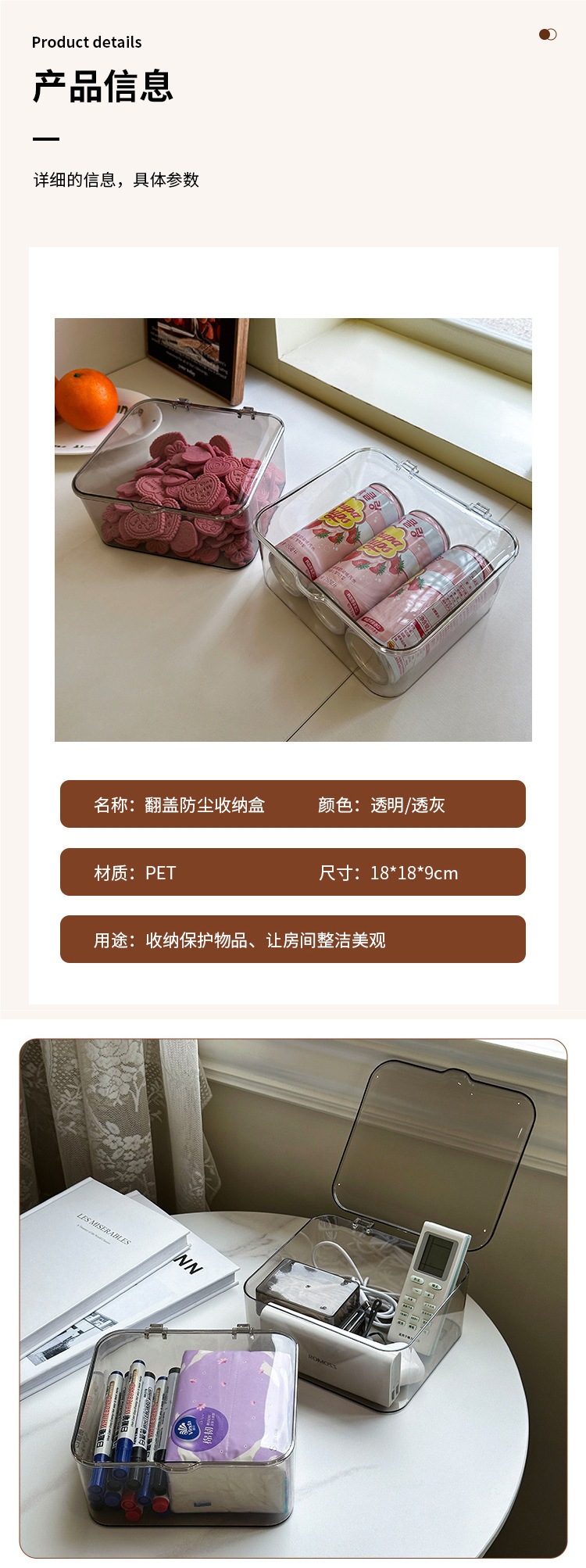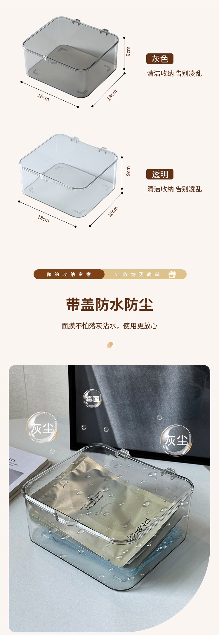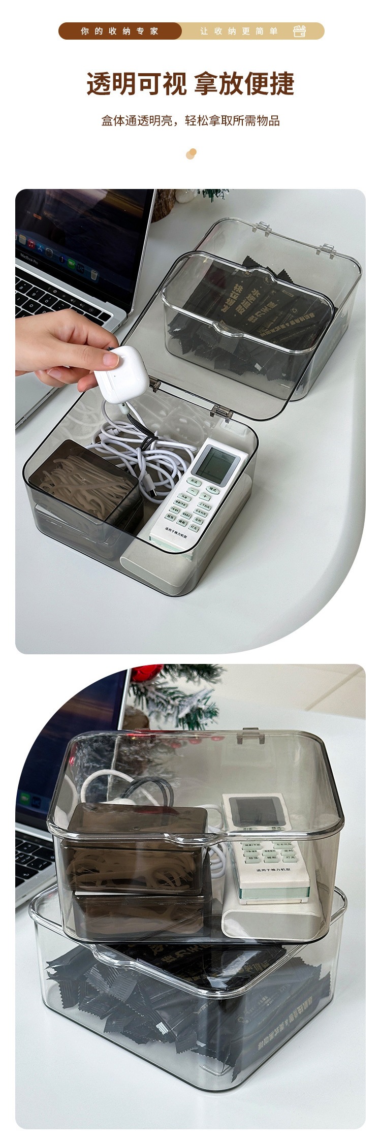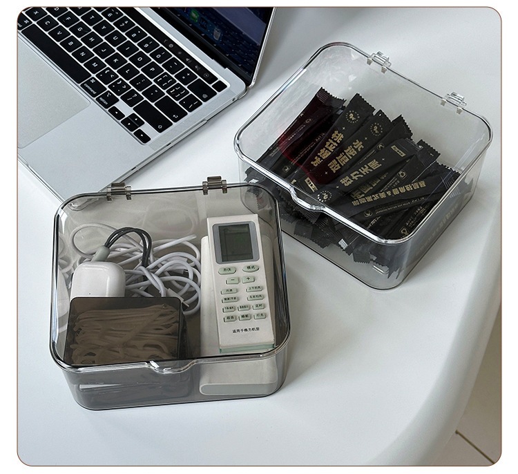 데스크탑 보관함 아크릴 투명 잡화 보관함 뚜껑이 있는 사무실 책상 방진 침실 정리 상자