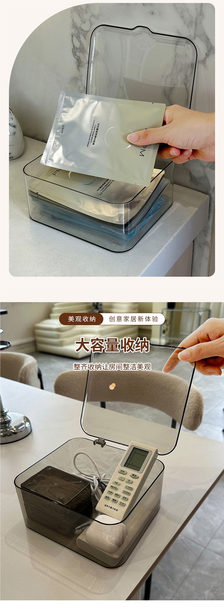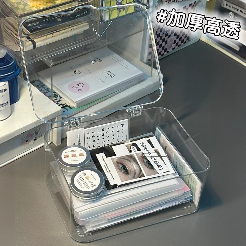 데스크탑 보관함 아크릴 투명 잡화 보관함 뚜껑이 있는 사무실 책상 방진 침실 정리 상자스토어 가기