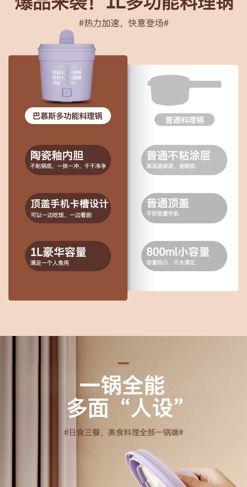 다기능 전기 밥솥 기숙사 학생 인스턴트 국수 냄비 가정용 올인원 소형 전기 냄비 전기 냄비 소형 전기 냄비스토어 가기