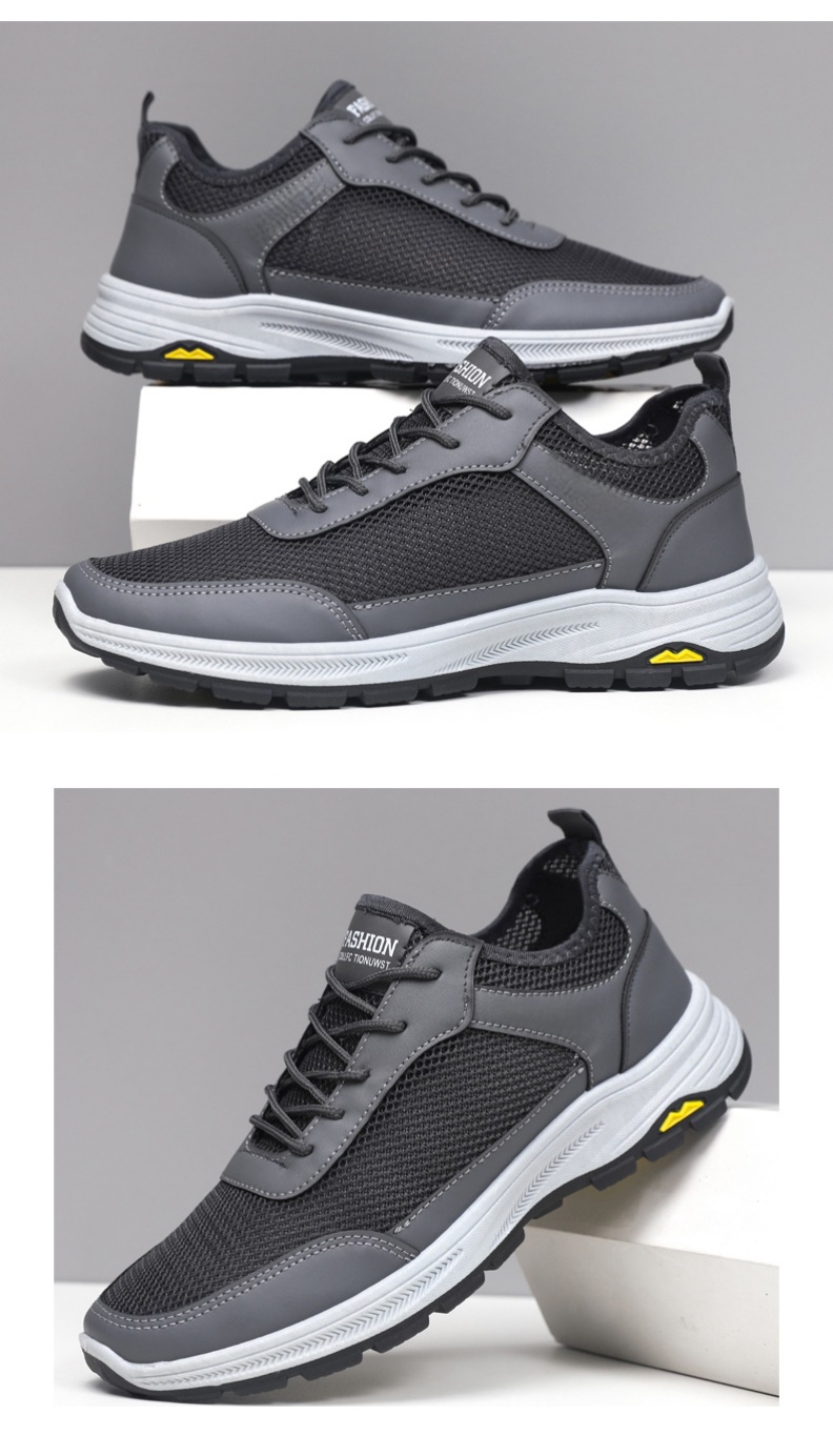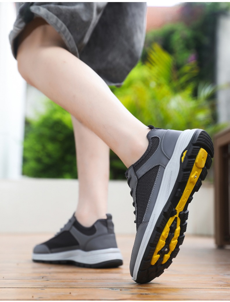 여름 새로운 메쉬 통기성 캐주얼 스포츠 신발 부드러운 단독 레이스 업 중공 로우 탑 하이킹 야외 와타리 남성 메쉬 신발