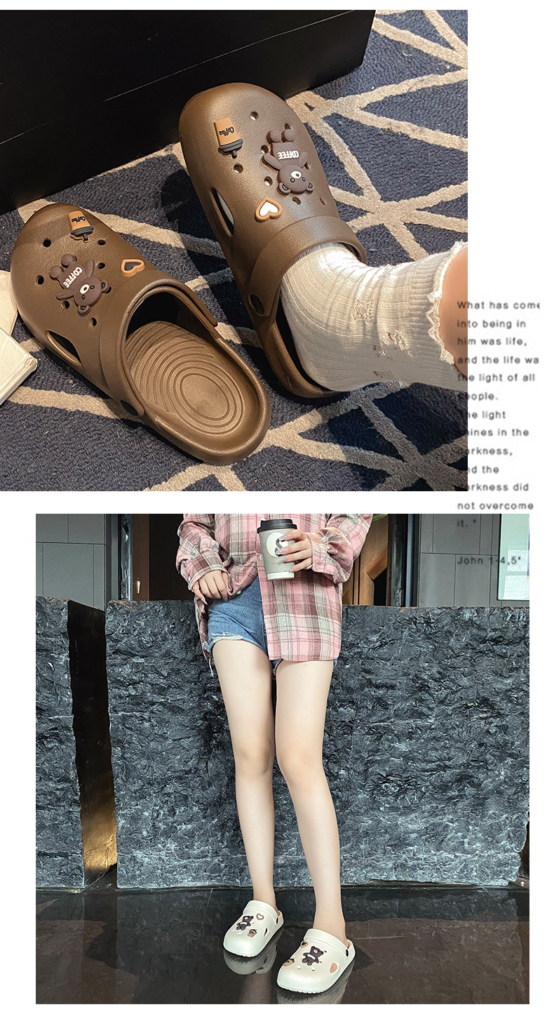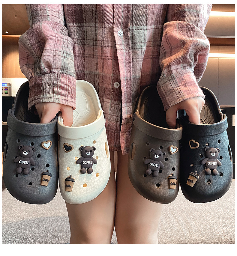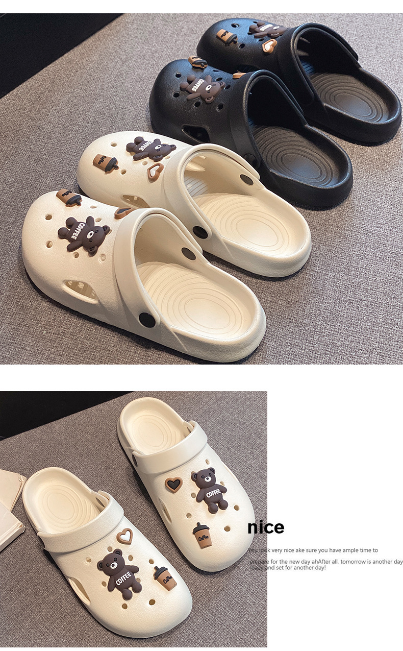 여성용 여름용 홈 슬리퍼, 미끄럼 방지, 부드러운 밑창, 가볍고 커플용, 외출 가능, 커피색 곰돌이 샌들스토어 가기