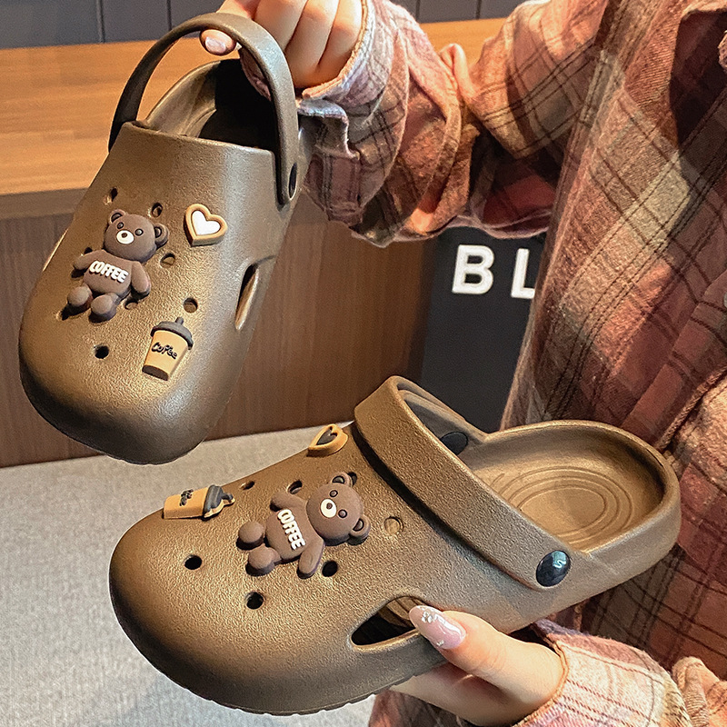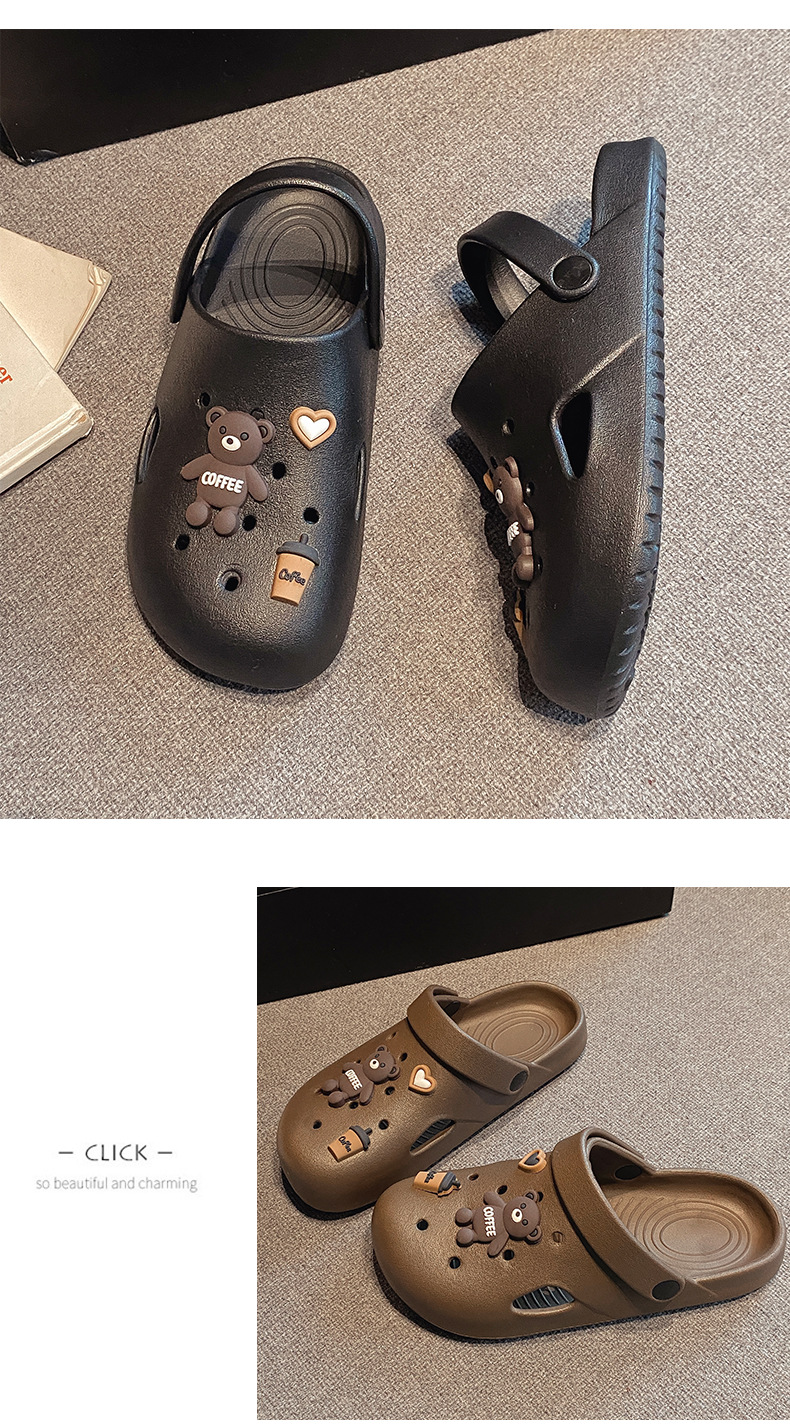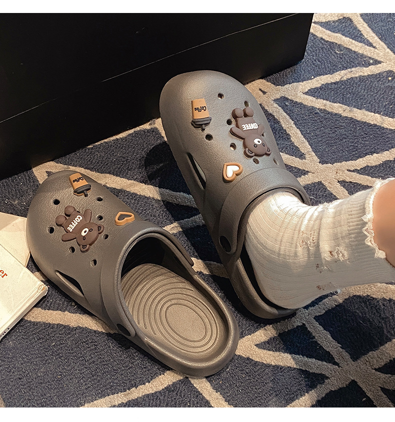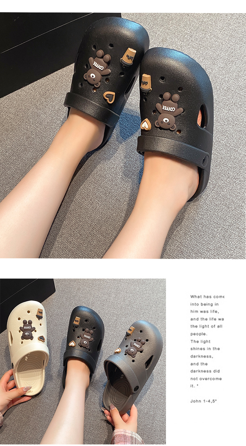 여성용 여름용 홈 슬리퍼, 미끄럼 방지, 부드러운 밑창, 가볍고 커플용, 외출 가능, 커피색 곰돌이 샌들스토어 가기