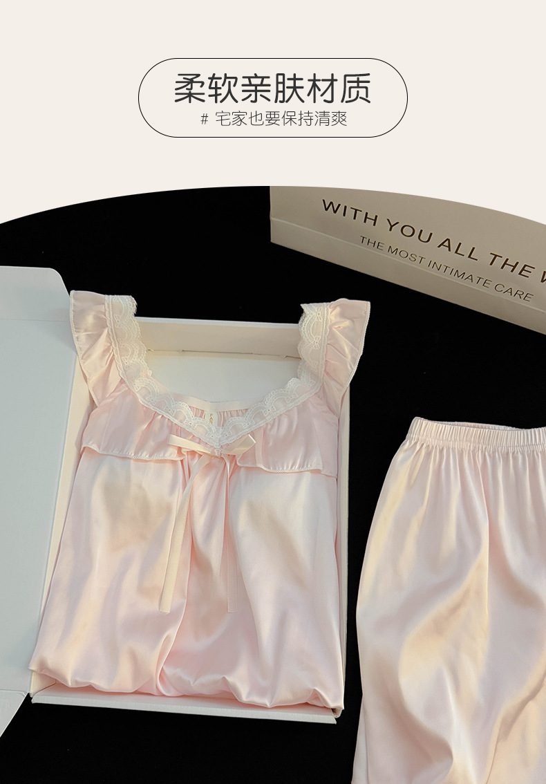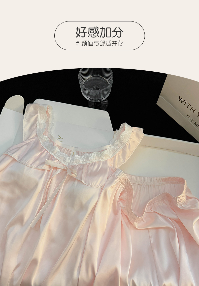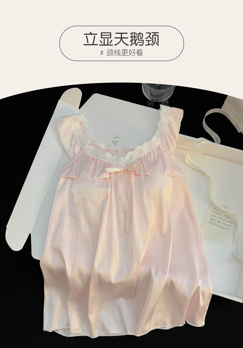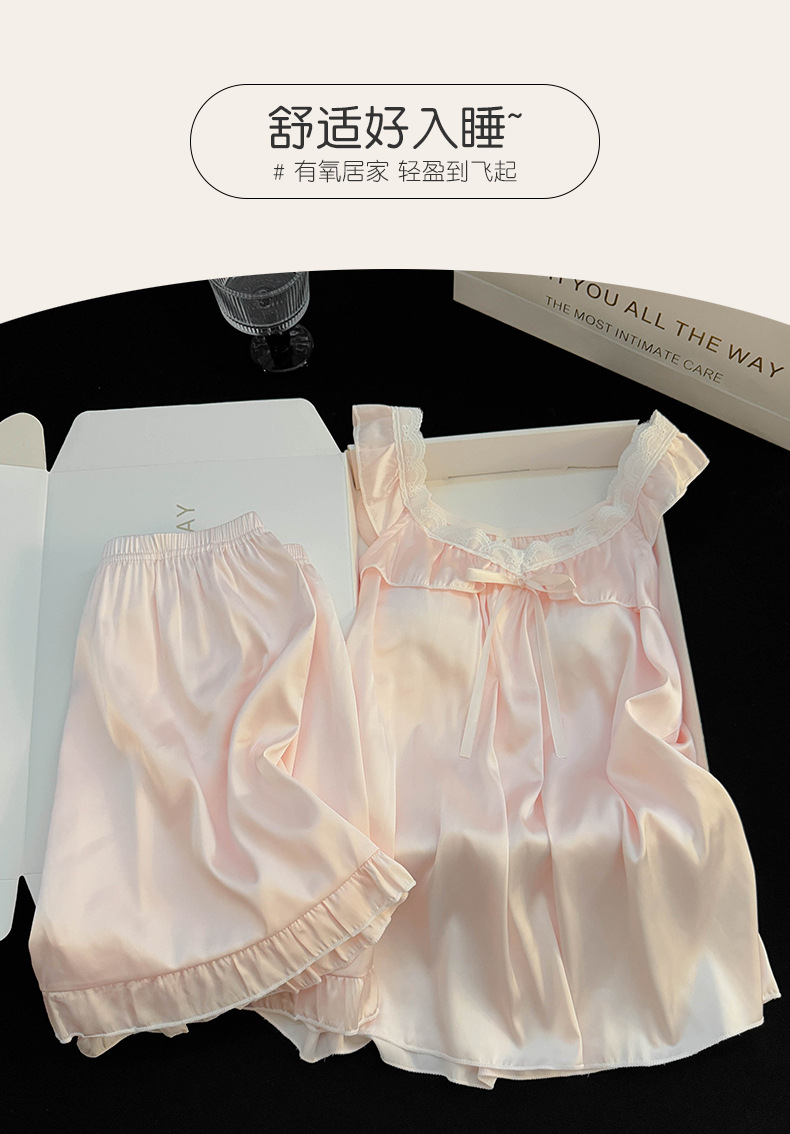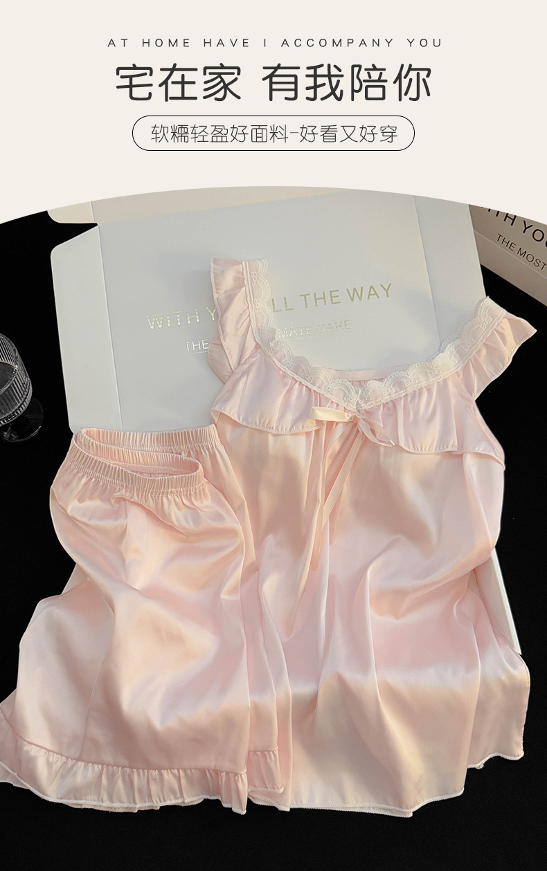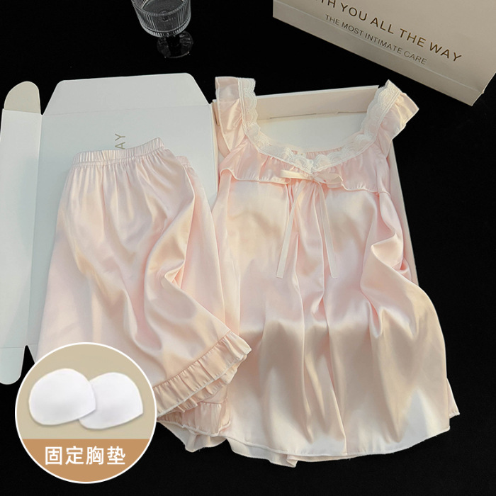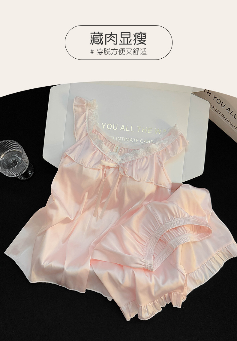 2025 여름 국경 간 순수한 욕망 스타일 여성 서스펜더 반바지 얼음 실크 잠옷 가슴 패드가있는 스노우 슈트 대외 무역 도매