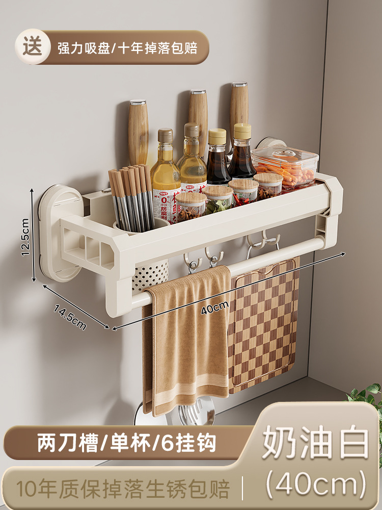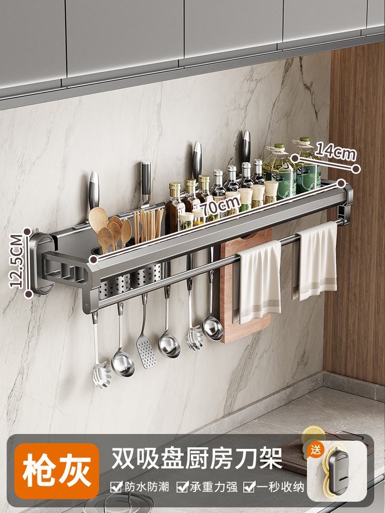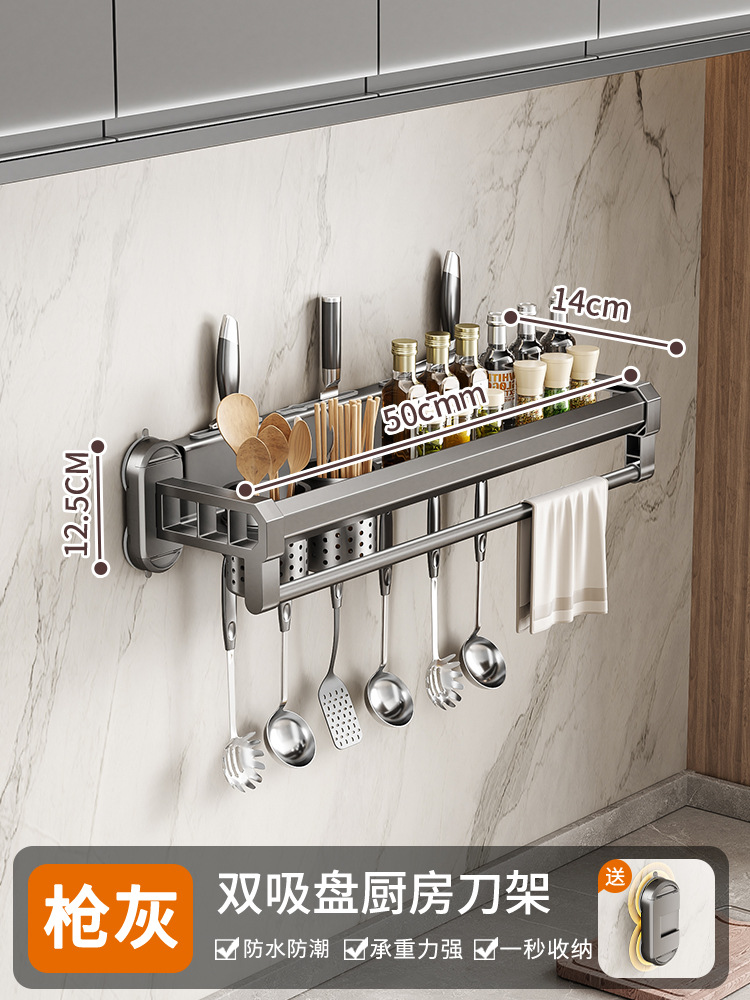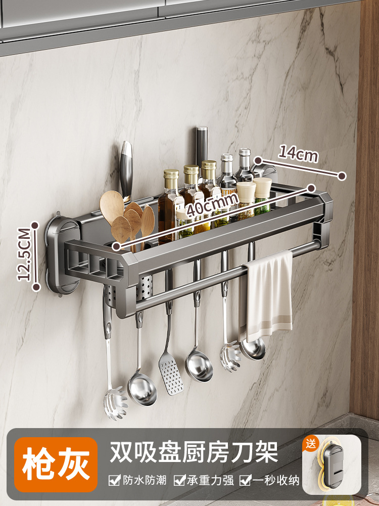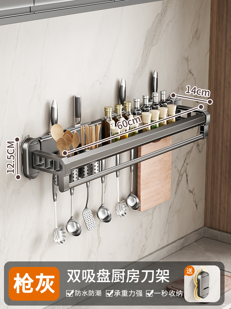구멍이 없는 흡입 컵 주방 보관함, 가정용 벽걸이형 칼 홀더, 젓가락통, 일체형 다기능 조미료 보관함