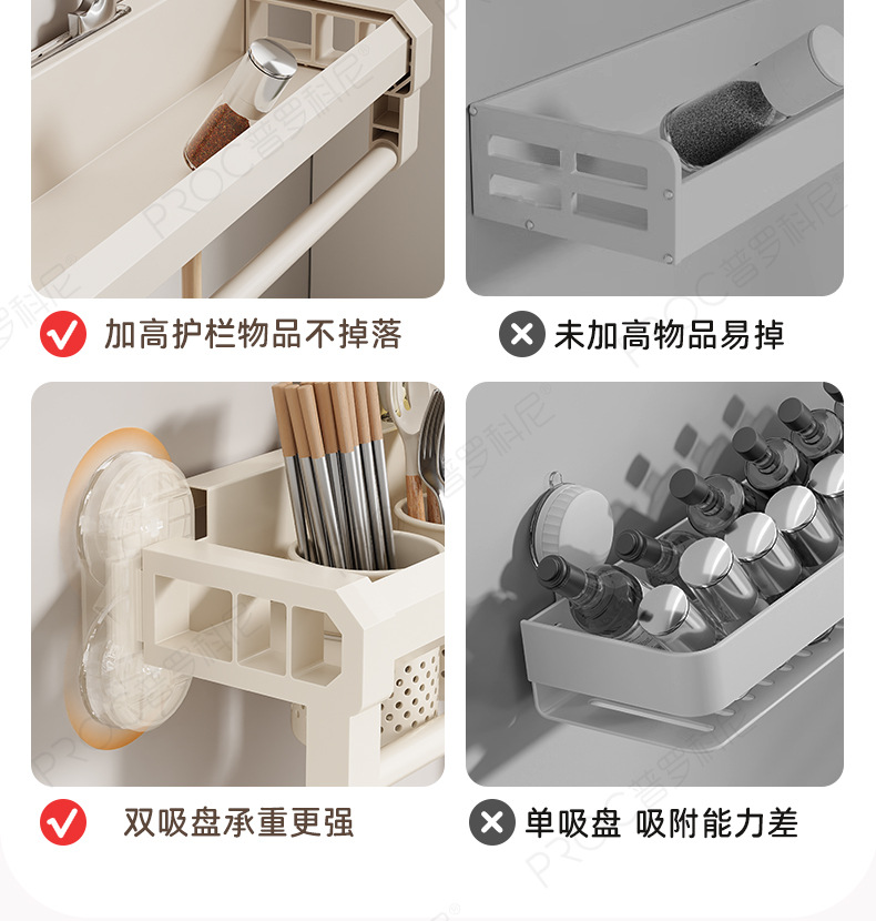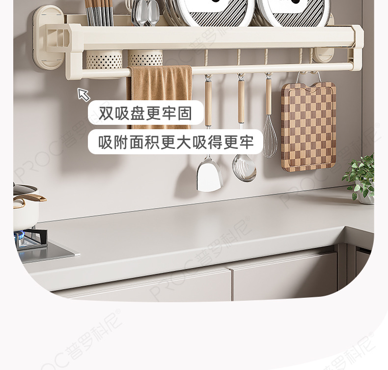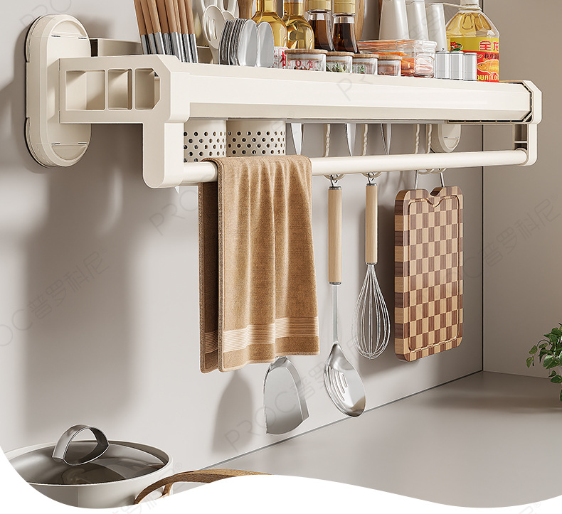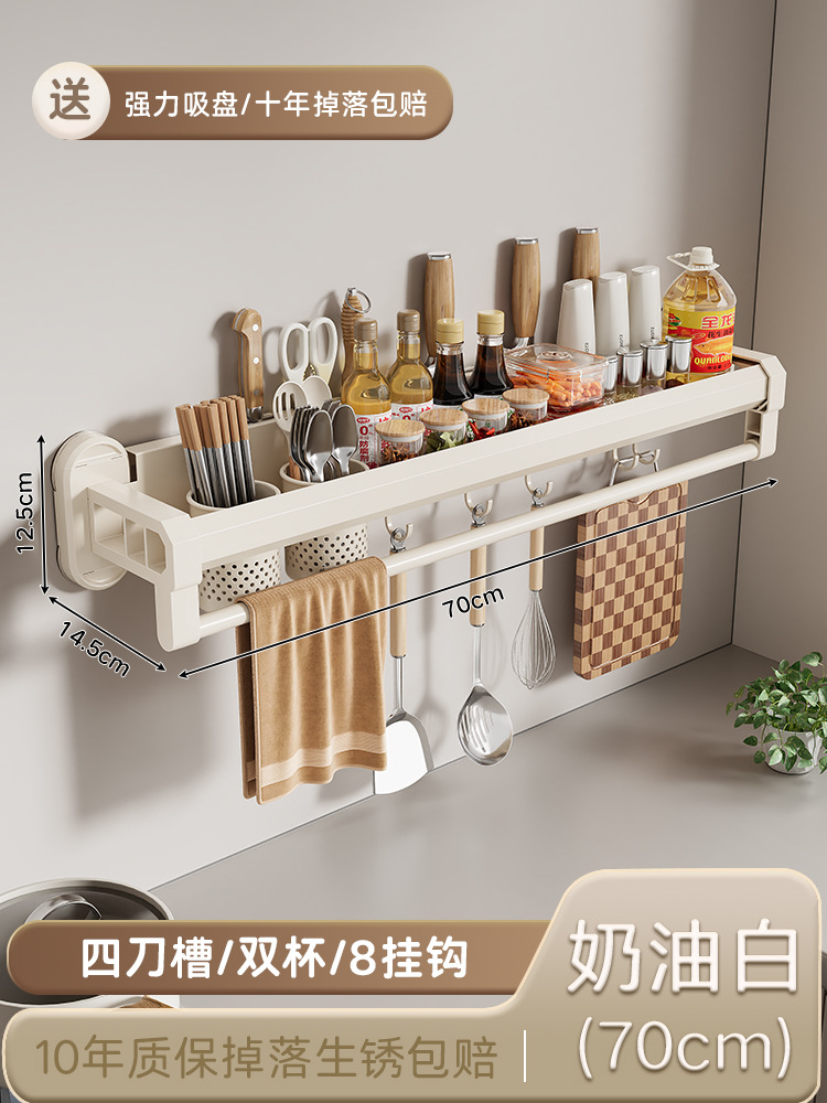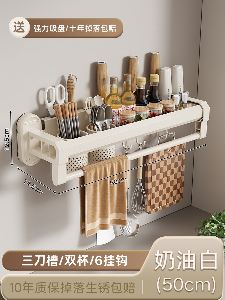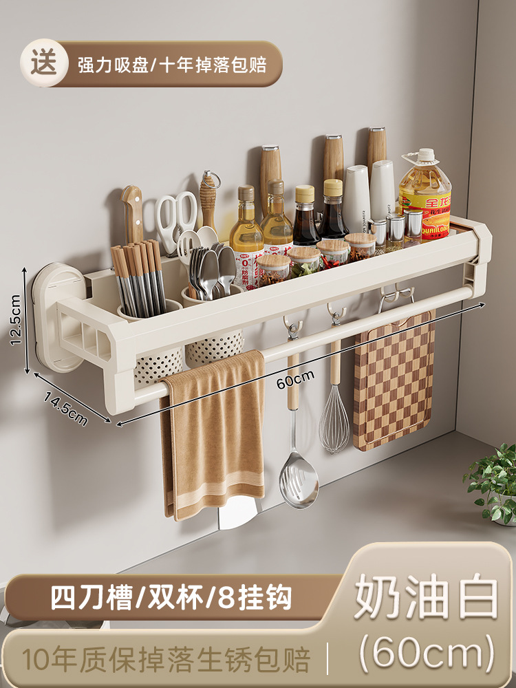 구멍이 없는 흡입 컵 주방 보관함, 가정용 벽걸이형 칼 홀더, 젓가락통, 일체형 다기능 조미료 보관함