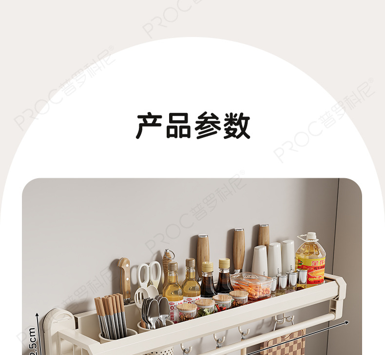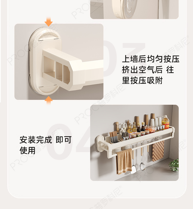 구멍이 없는 흡입 컵 주방 보관함, 가정용 벽걸이형 칼 홀더, 젓가락통, 일체형 다기능 조미료 보관함스토어 가기