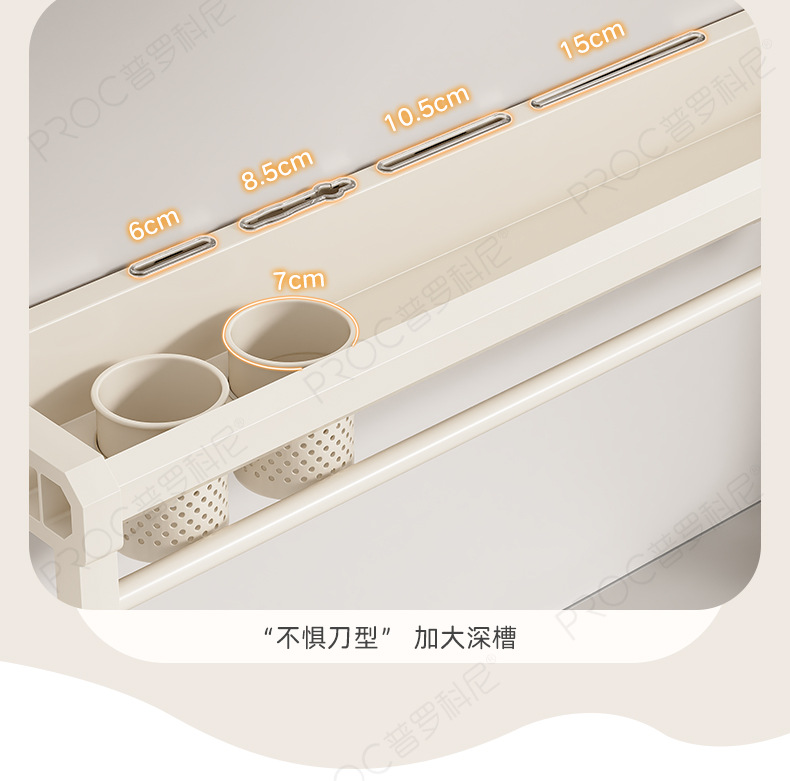 • [밀크 화이트 모델] 60CM 더블 컵, 칼 슬롯 4개, 후크 8개 - 흡착판 다기능 칼 홀더
