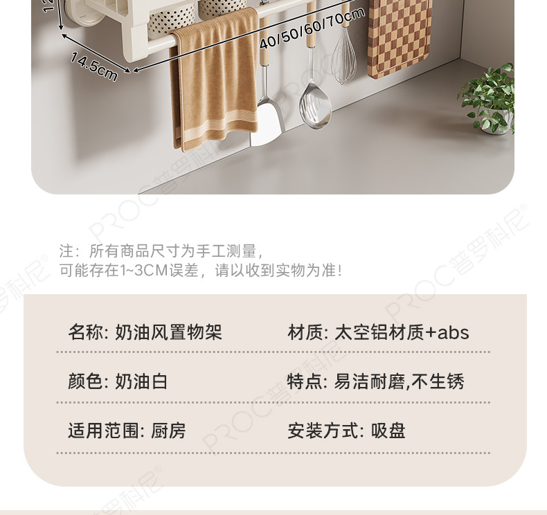 • [밀크화이트 모델] 70CM 더블컵, 슬롯 4개, 후크 8개 - 흡착컵 다기능 칼홀더