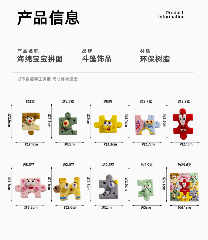 크리 에이 티브 스폰지 밥 플랫 퍼즐 diy 수지 공예 장식 휴대 전화 케이스 머리핀 작은 액세서리 작은 장식품