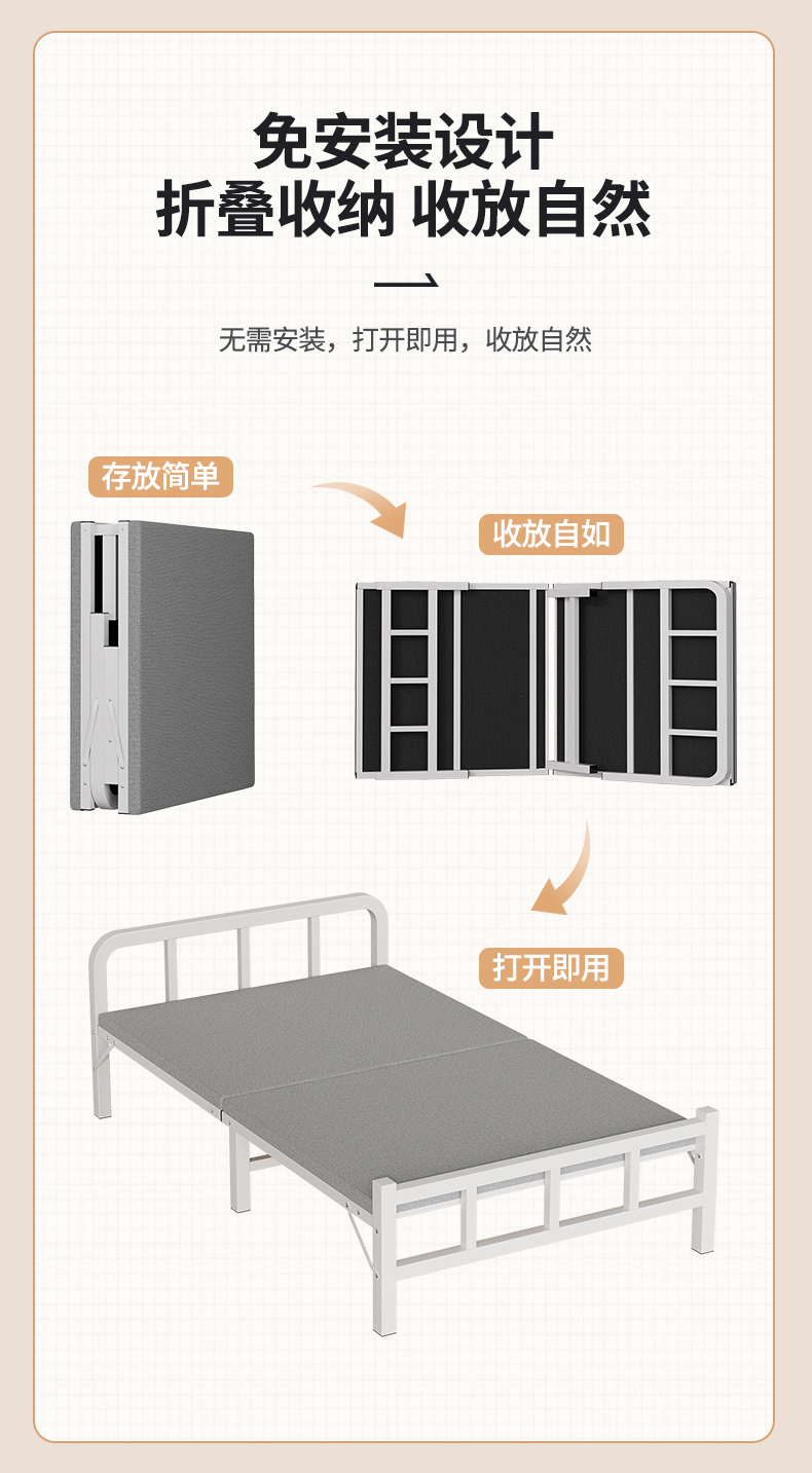 # 접이식 침대 가정용 싱글 침대 성인 사무실 점심 시간 침대 1.2m 하드 보드 침대 추가 침대 휴대용 간단한 Tieqing스토어 가기