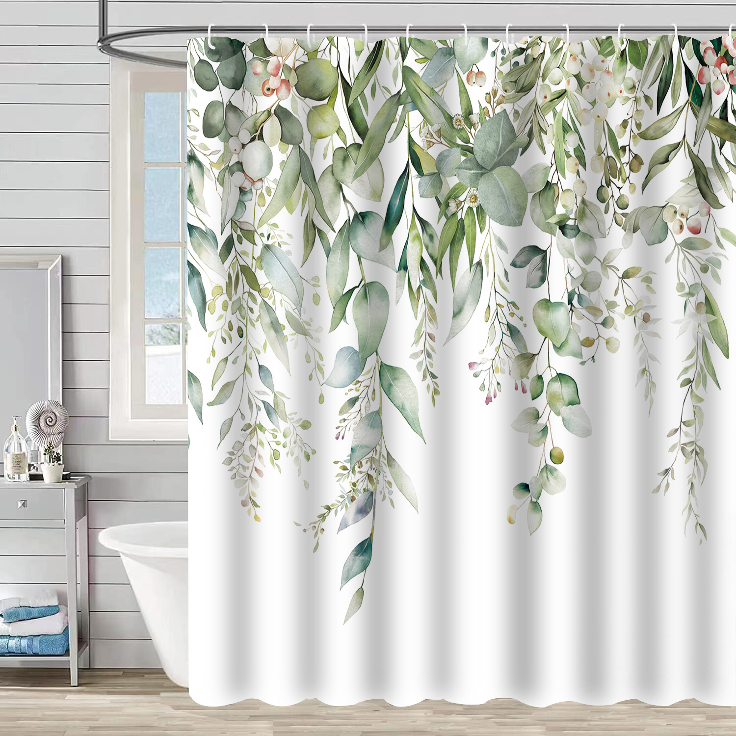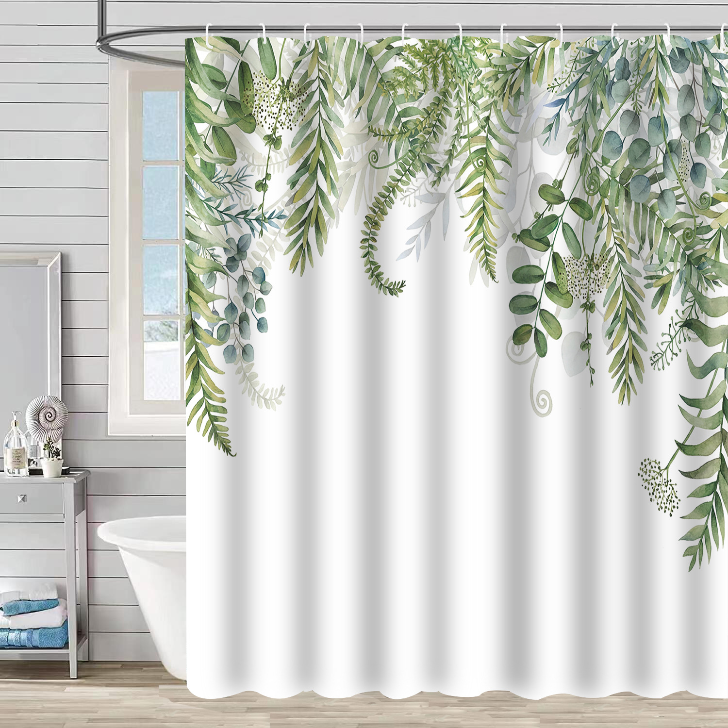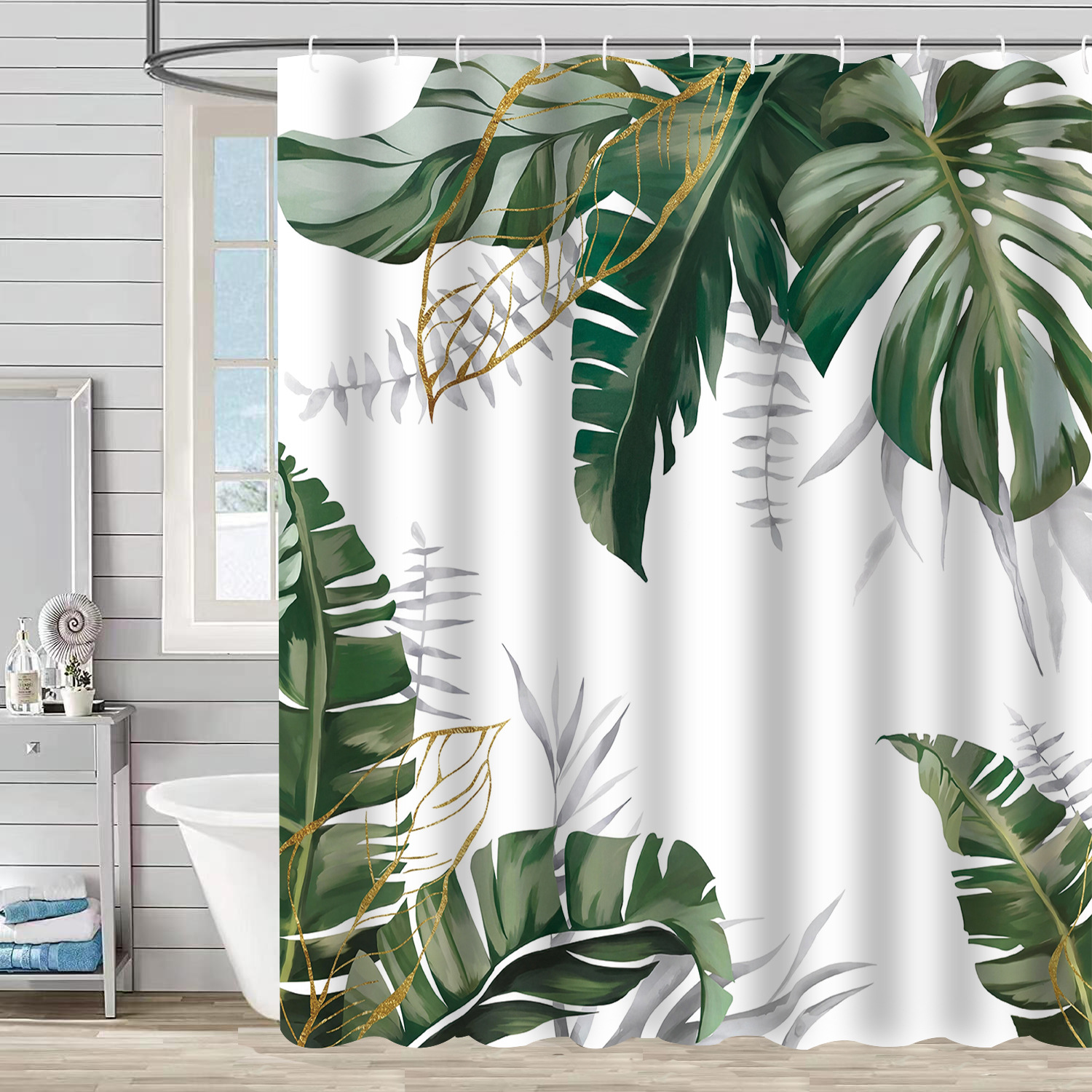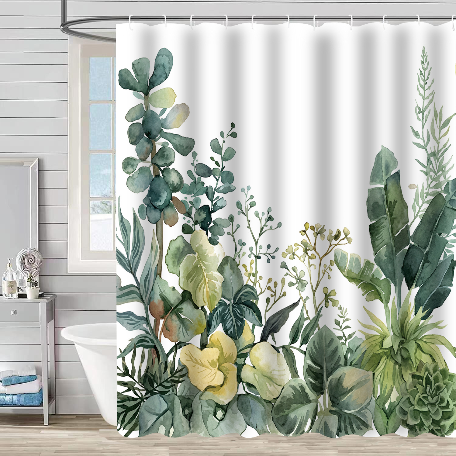 아마존 꽃과 녹색 식물 잎 목욕 커튼 방수 및 곰팡이 방지 디지털 프린트 숲 목욕 커튼 칸막이