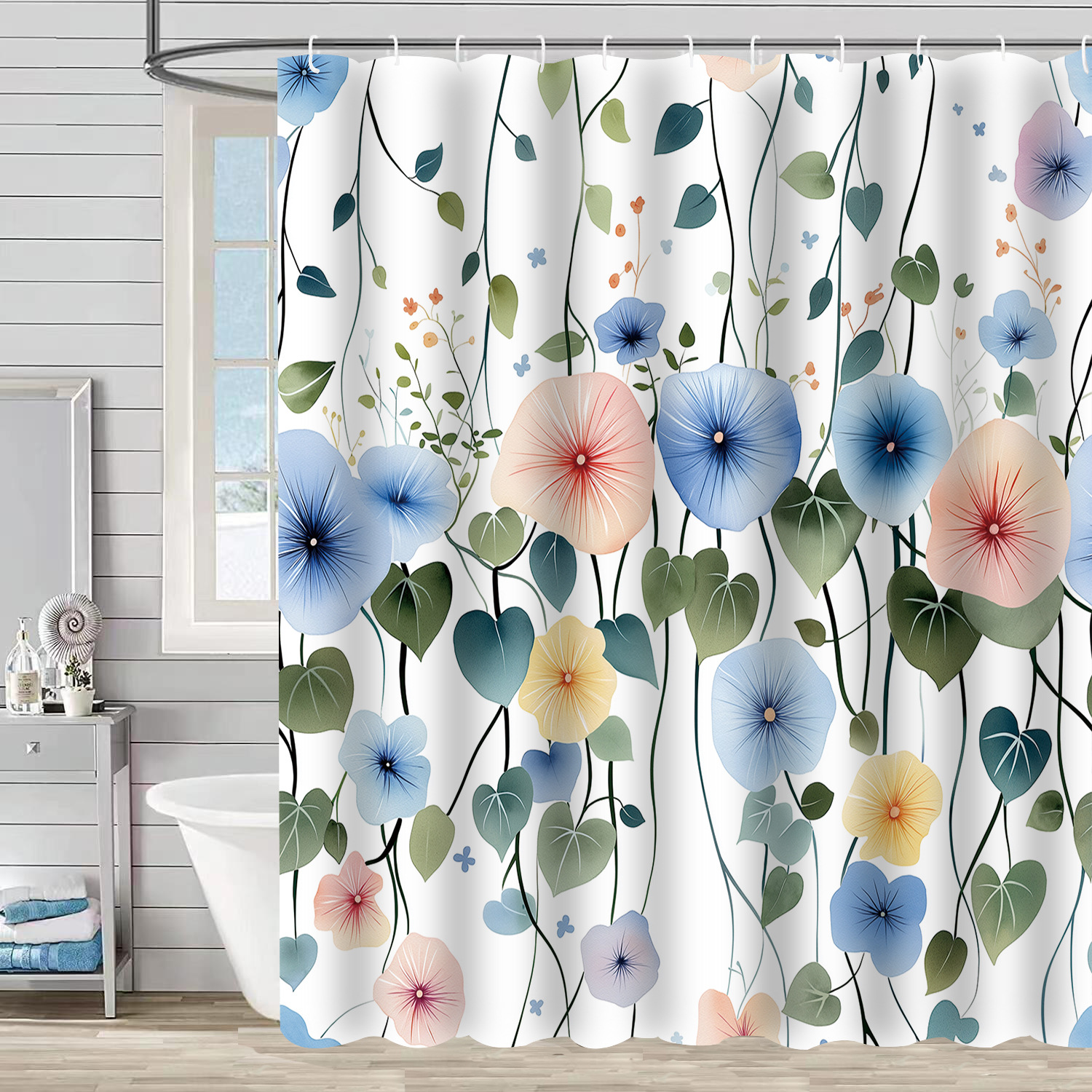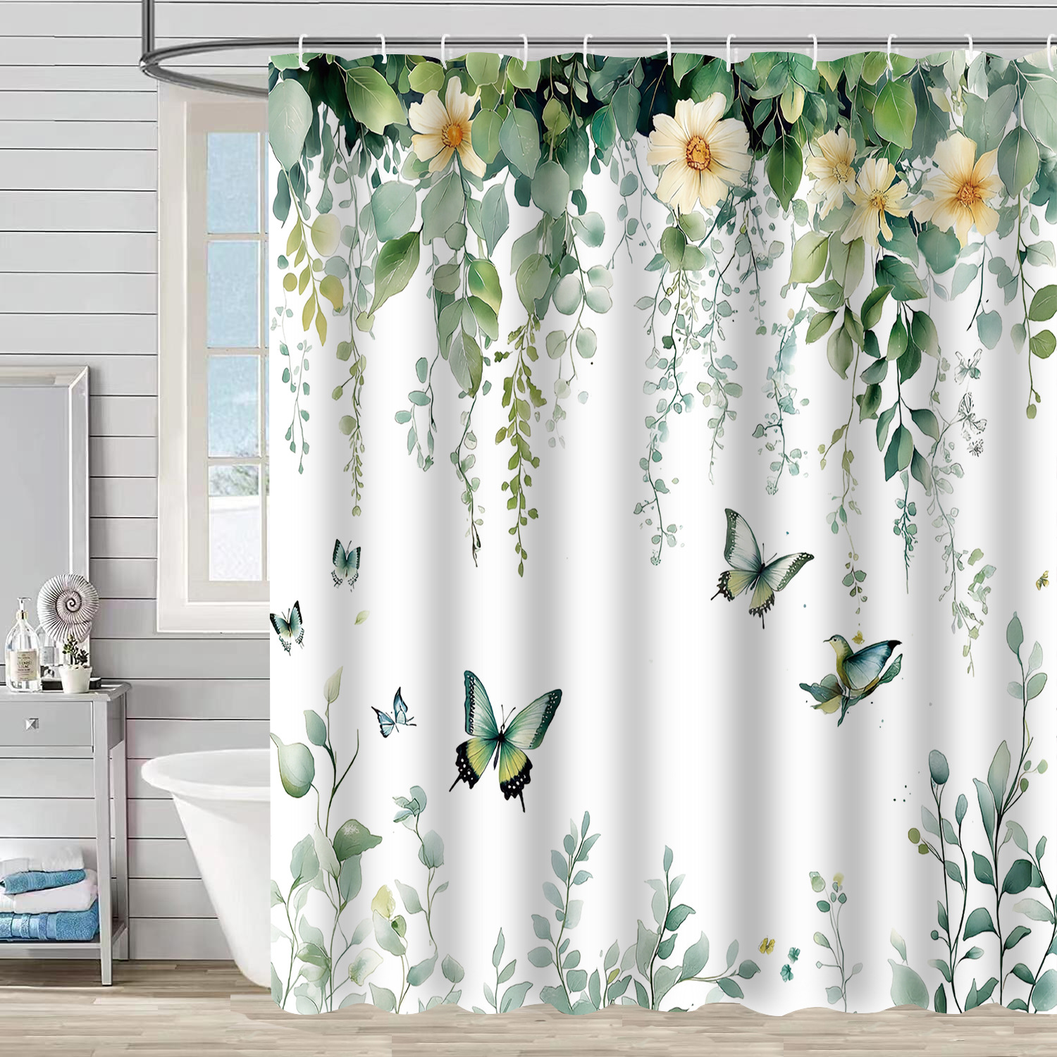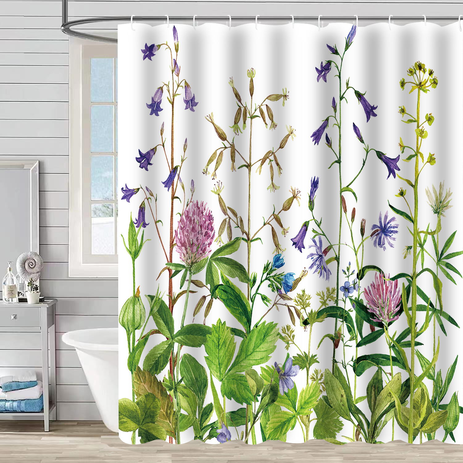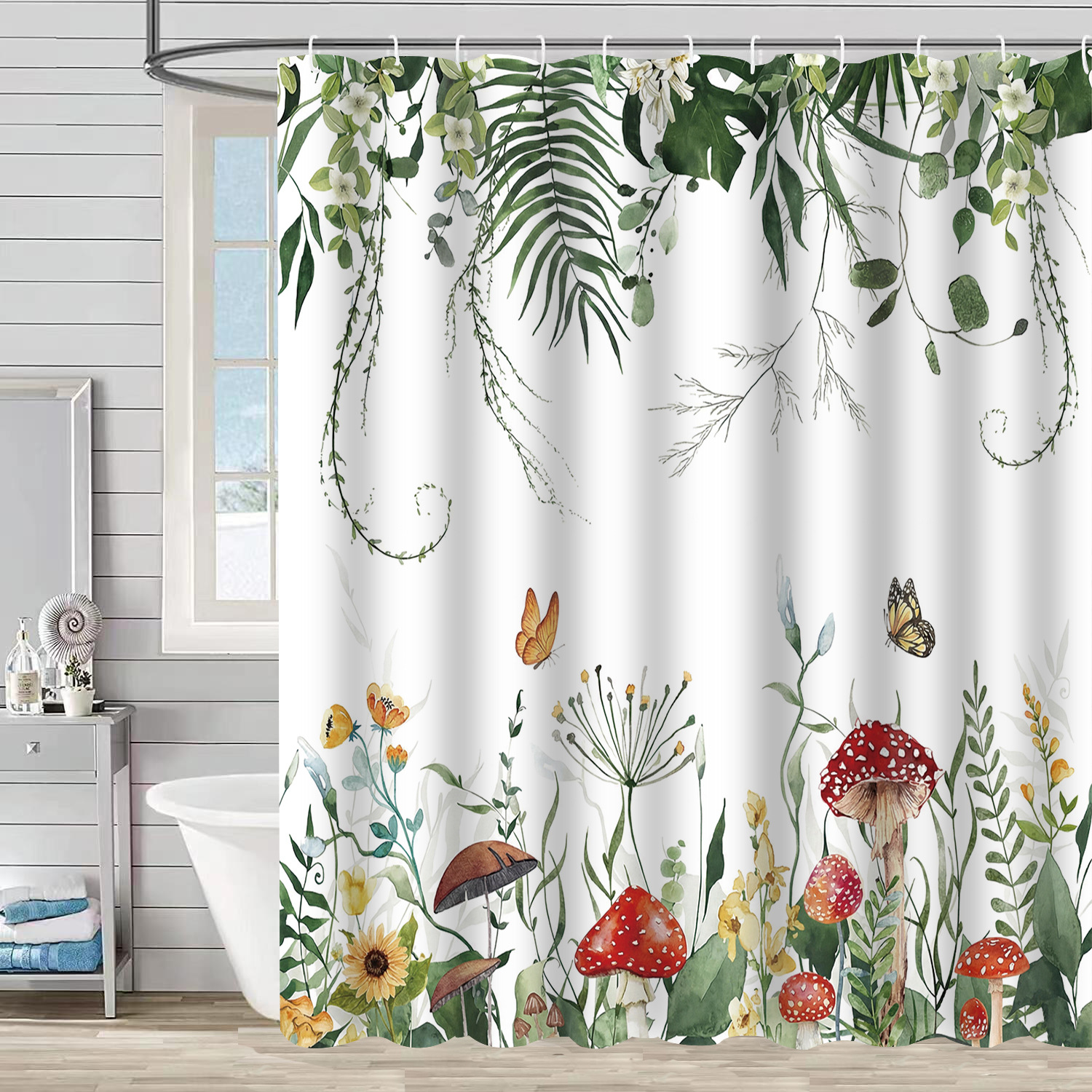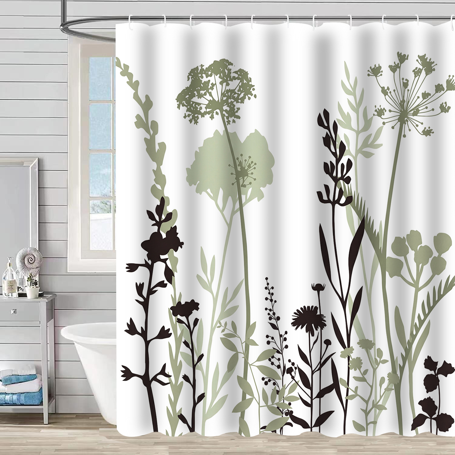 아마존 꽃과 녹색 식물 잎 목욕 커튼 방수 및 곰팡이 방지 디지털 프린트 숲 목욕 커튼 칸막이