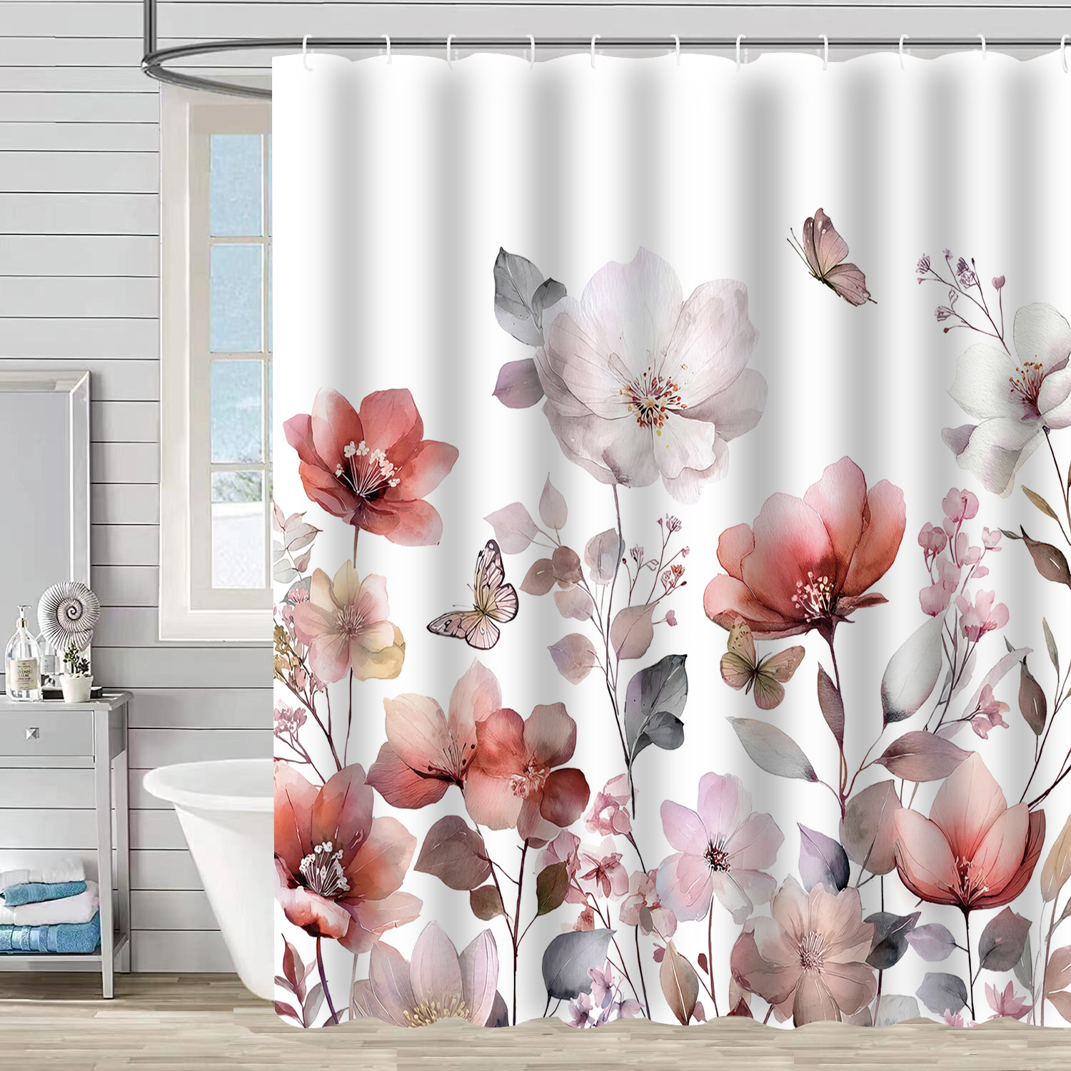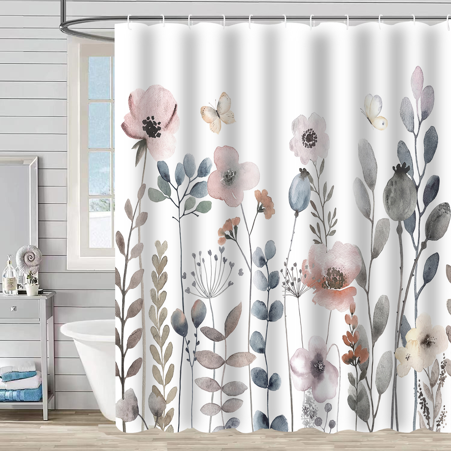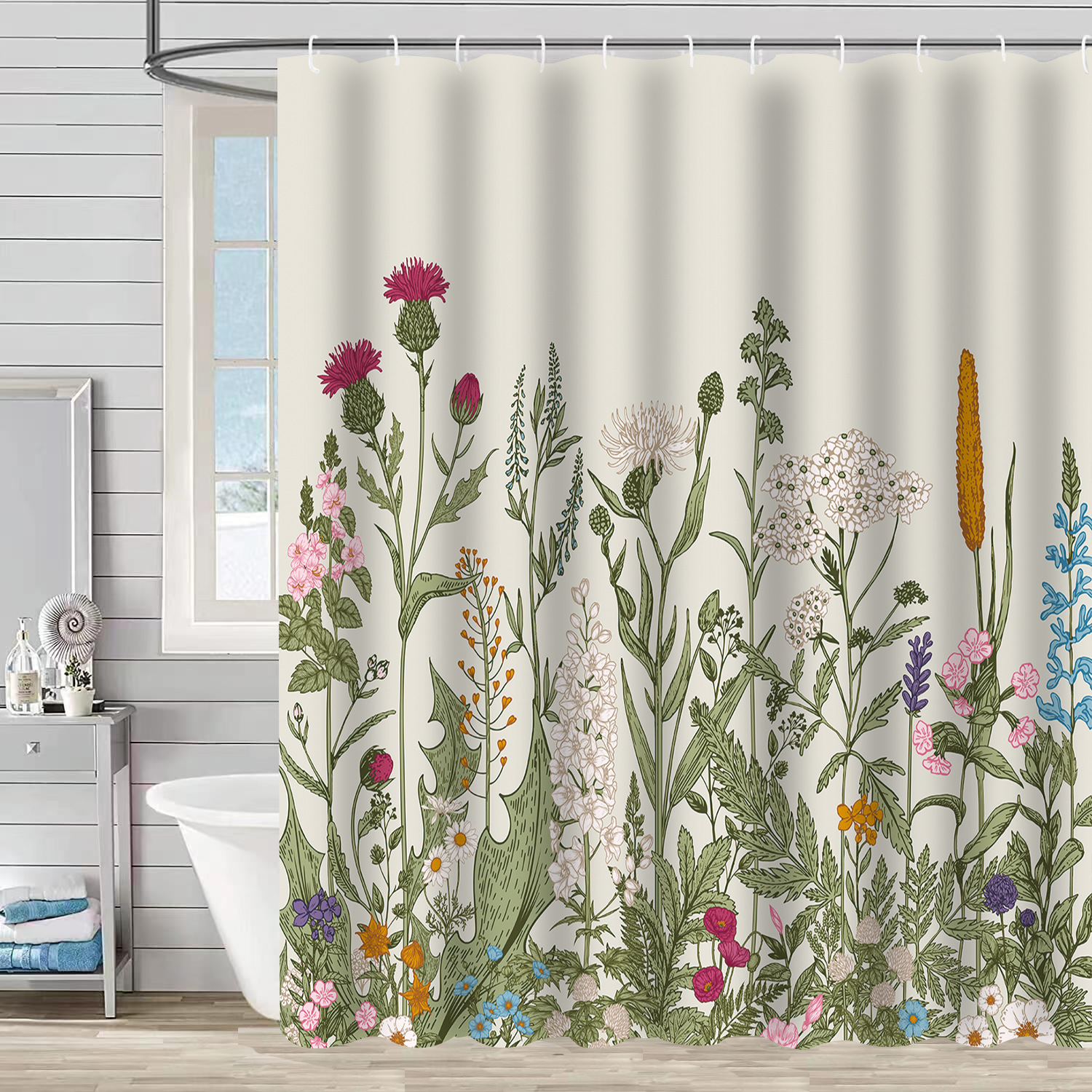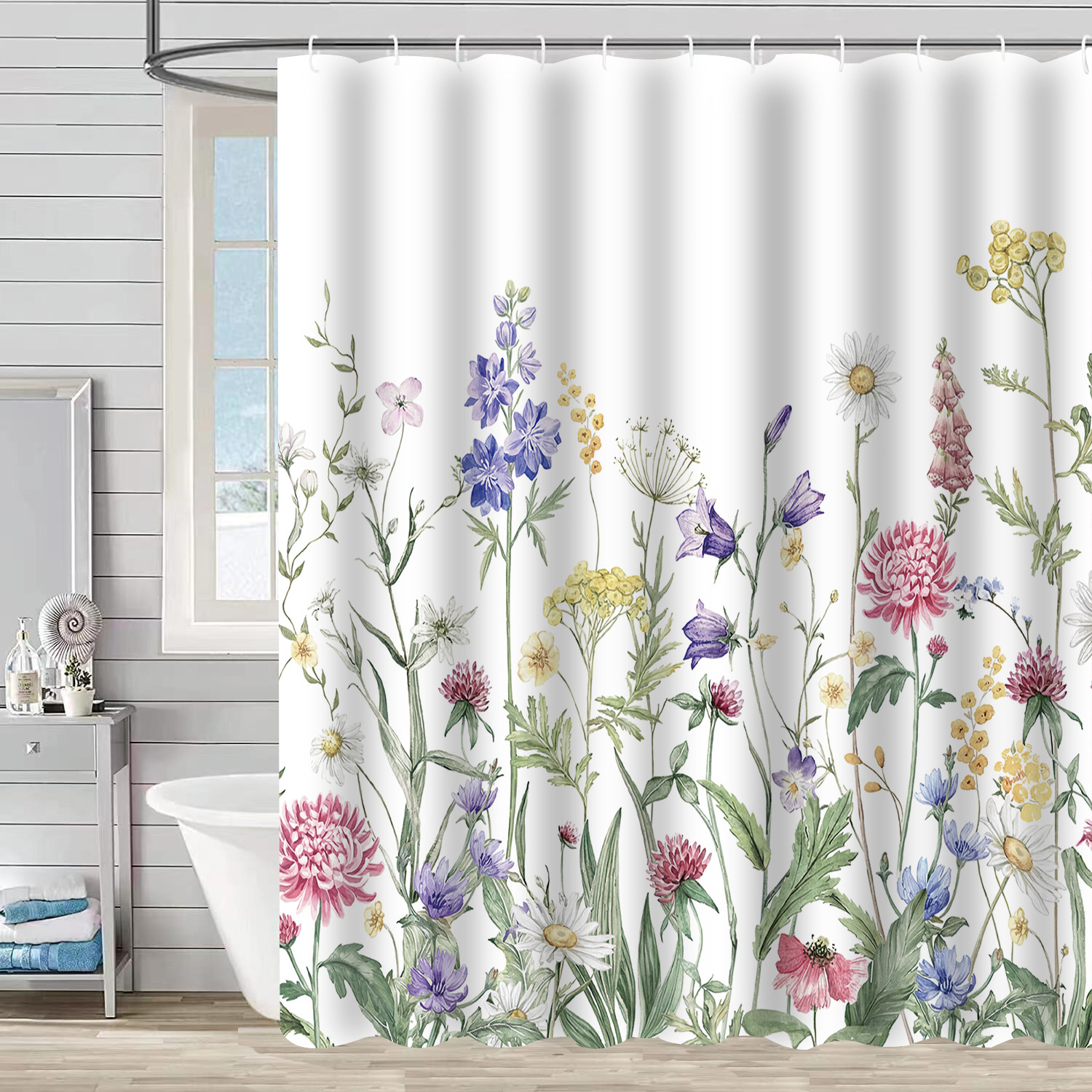 아마존 꽃과 녹색 식물 잎 목욕 커튼 방수 및 곰팡이 방지 디지털 프린트 숲 목욕 커튼 칸막이