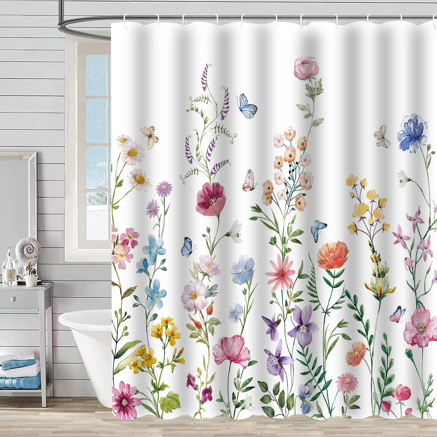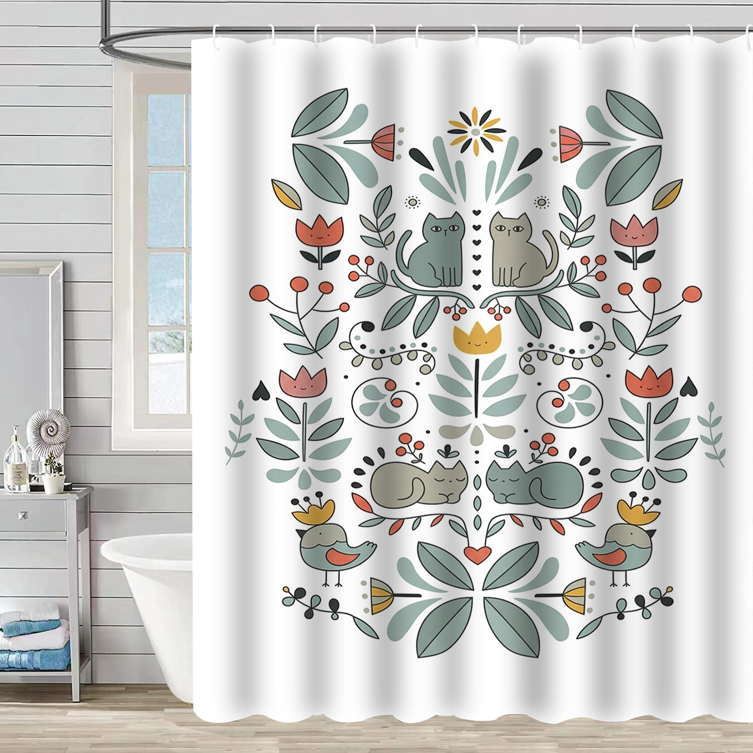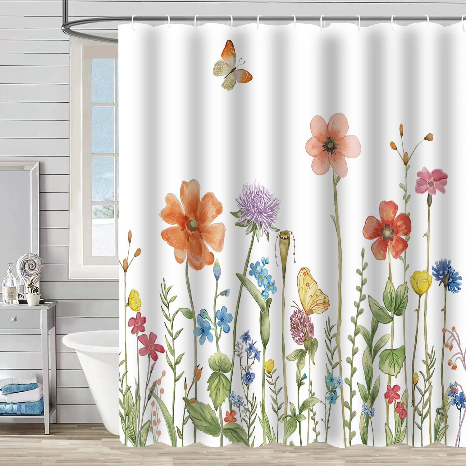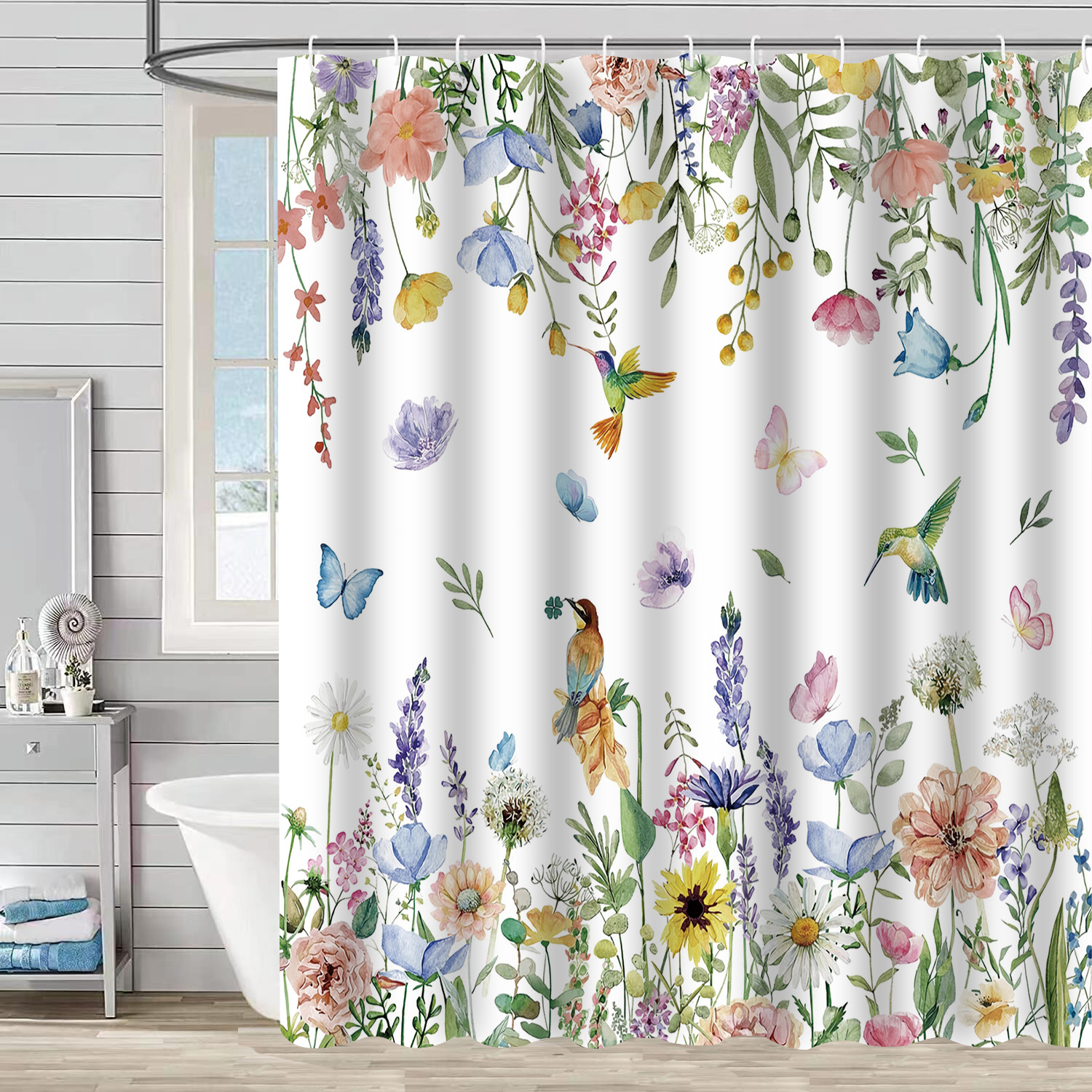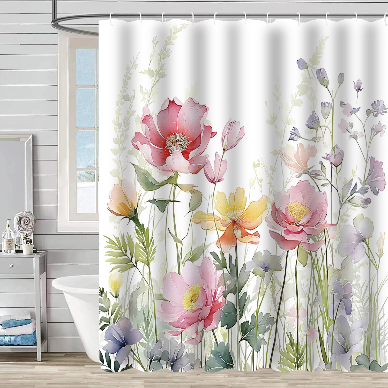아마존 꽃과 녹색 식물 잎 목욕 커튼 방수 및 곰팡이 방지 디지털 프린트 숲 목욕 커튼 칸막이