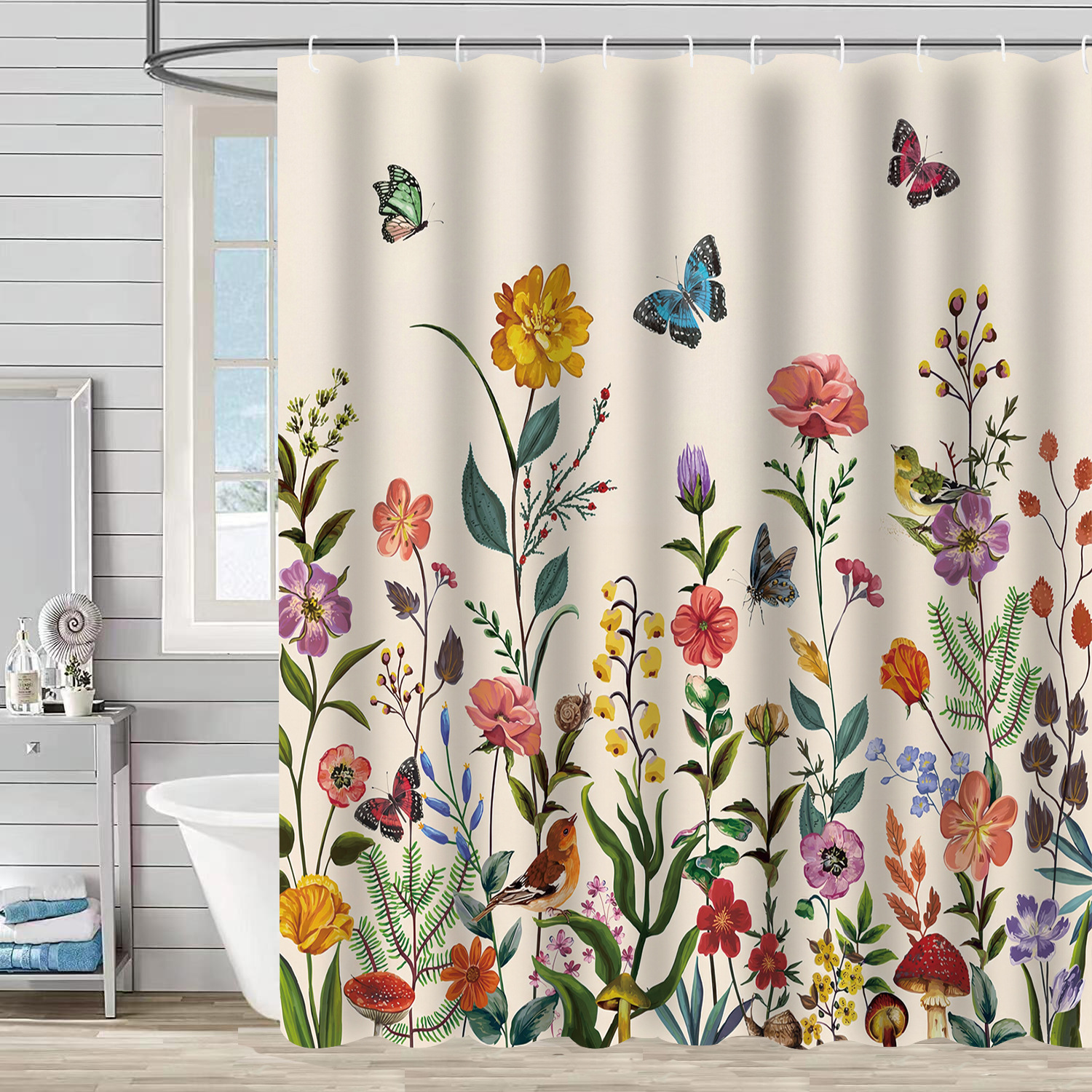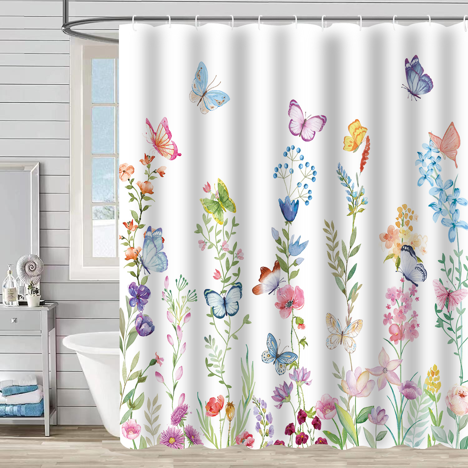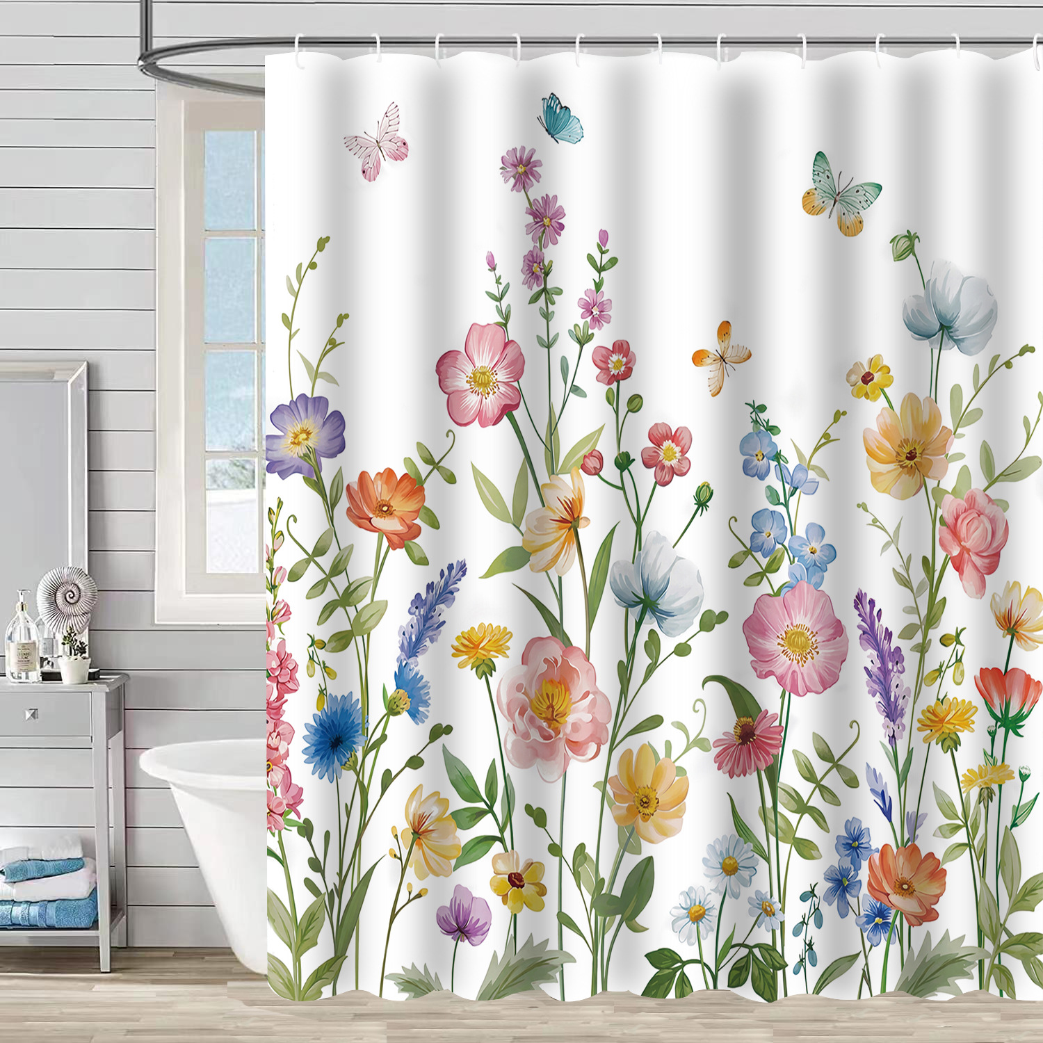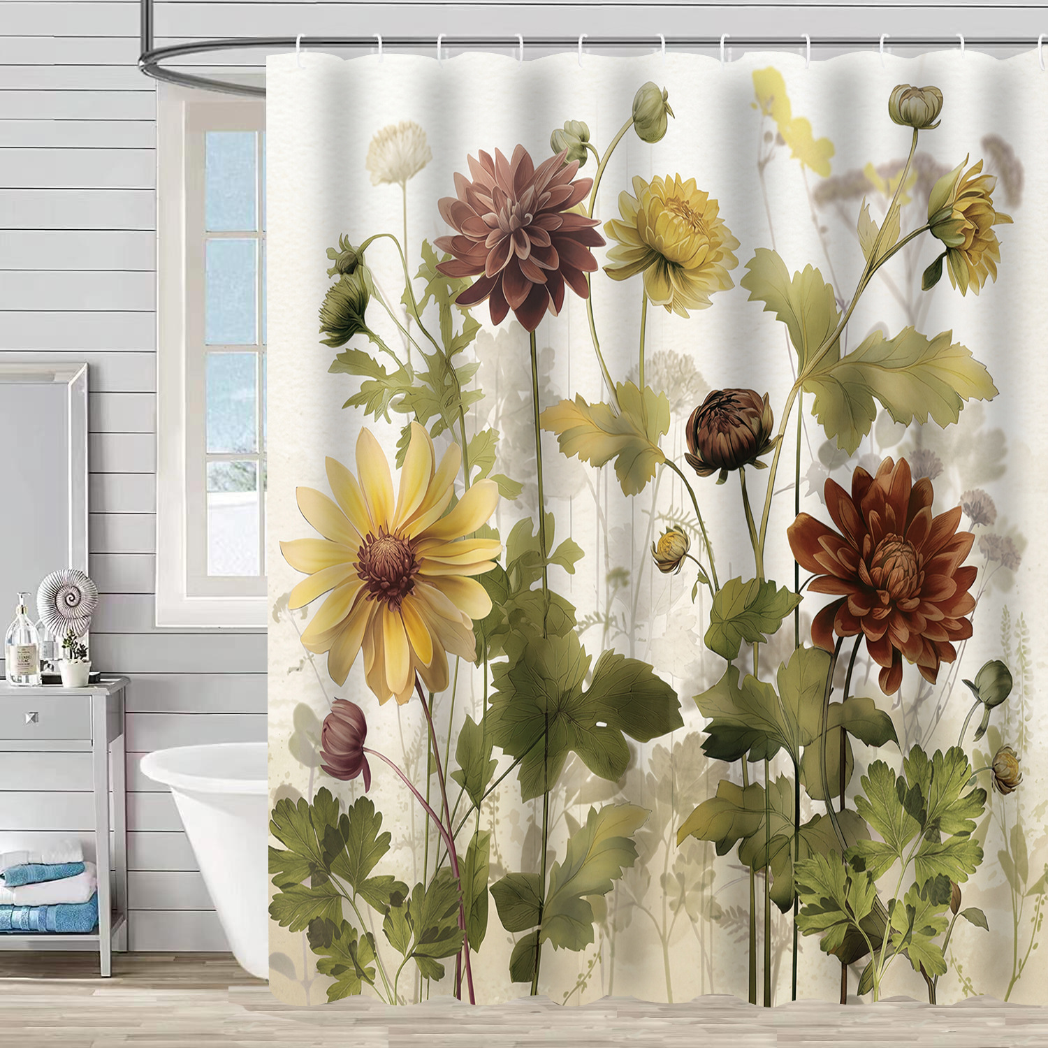 아마존 꽃과 녹색 식물 잎 목욕 커튼 방수 및 곰팡이 방지 디지털 프린트 숲 목욕 커튼 칸막이