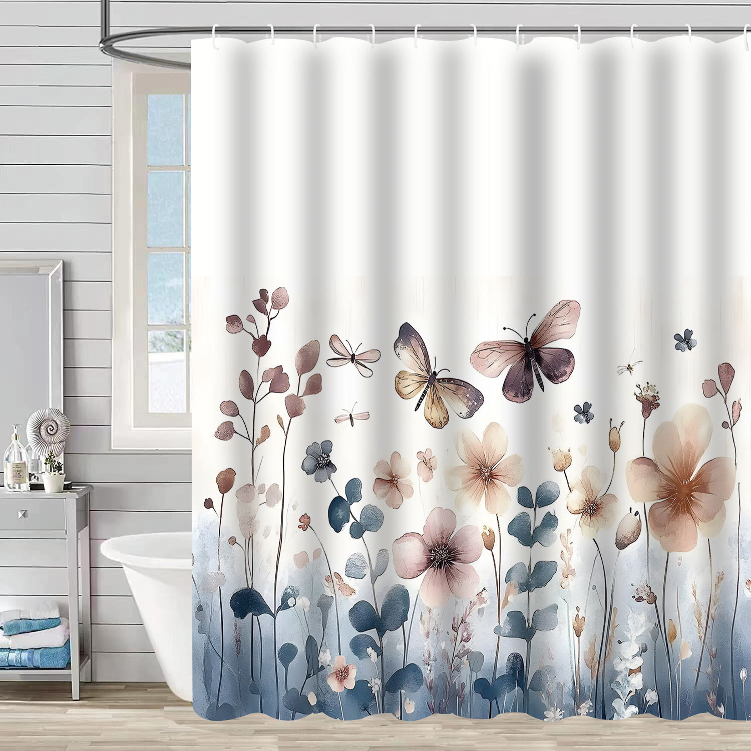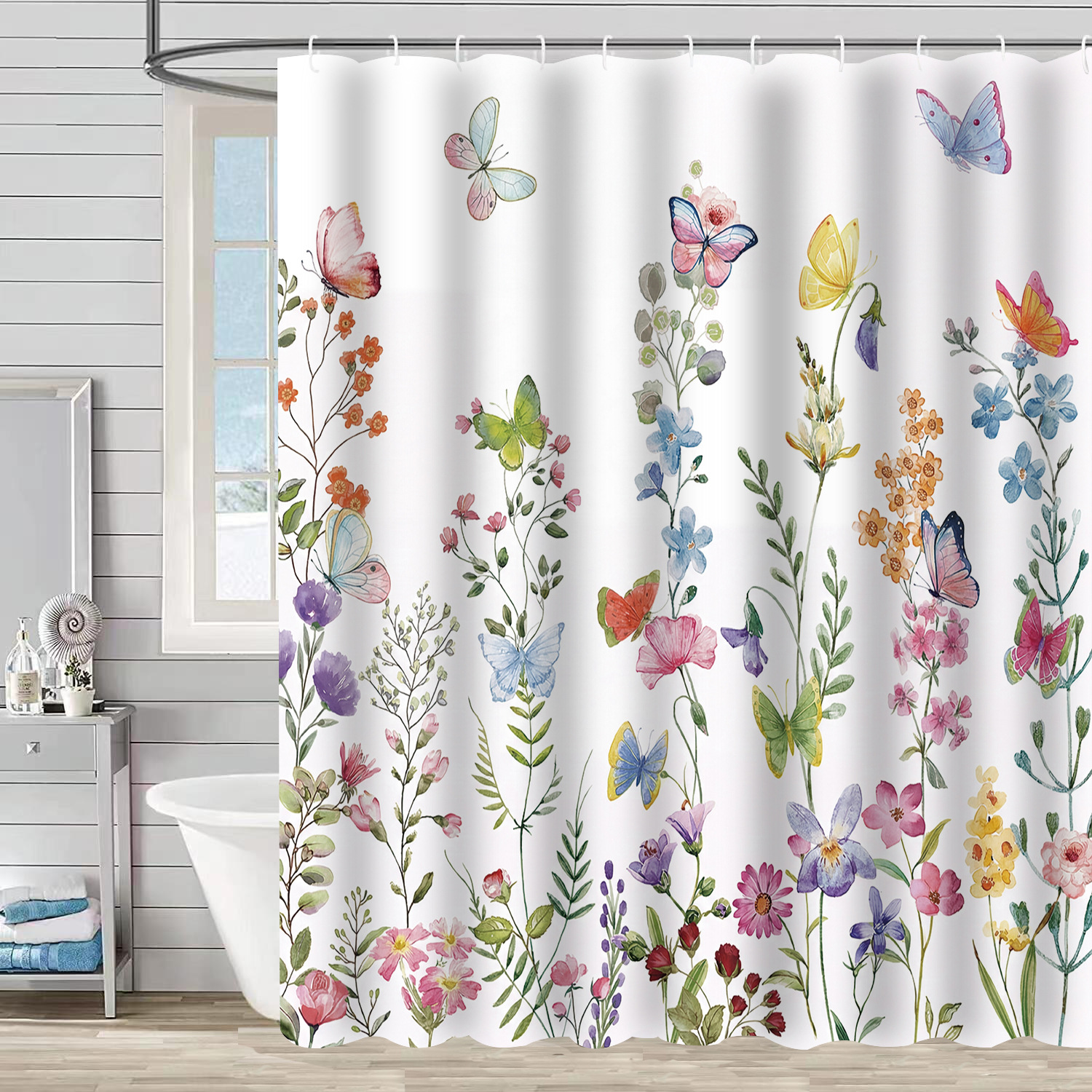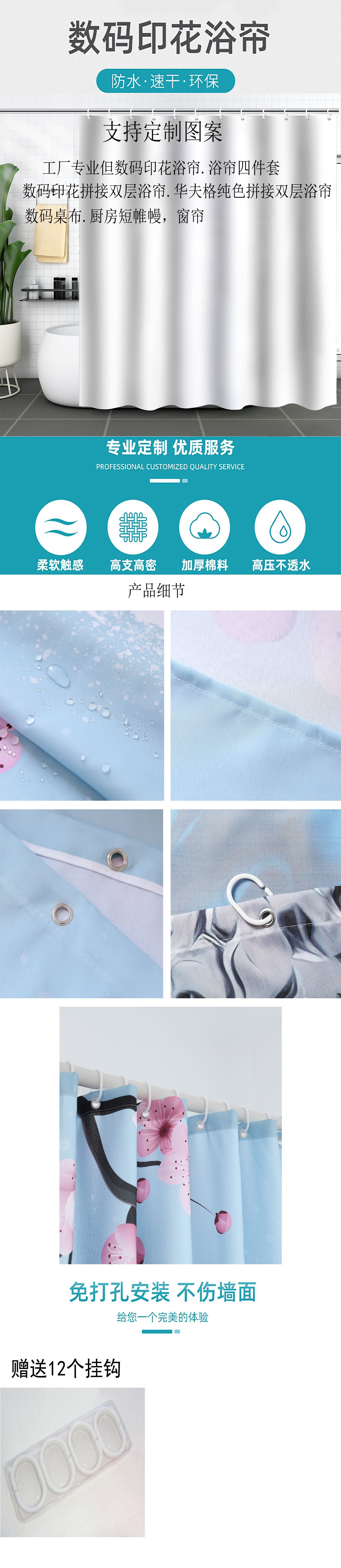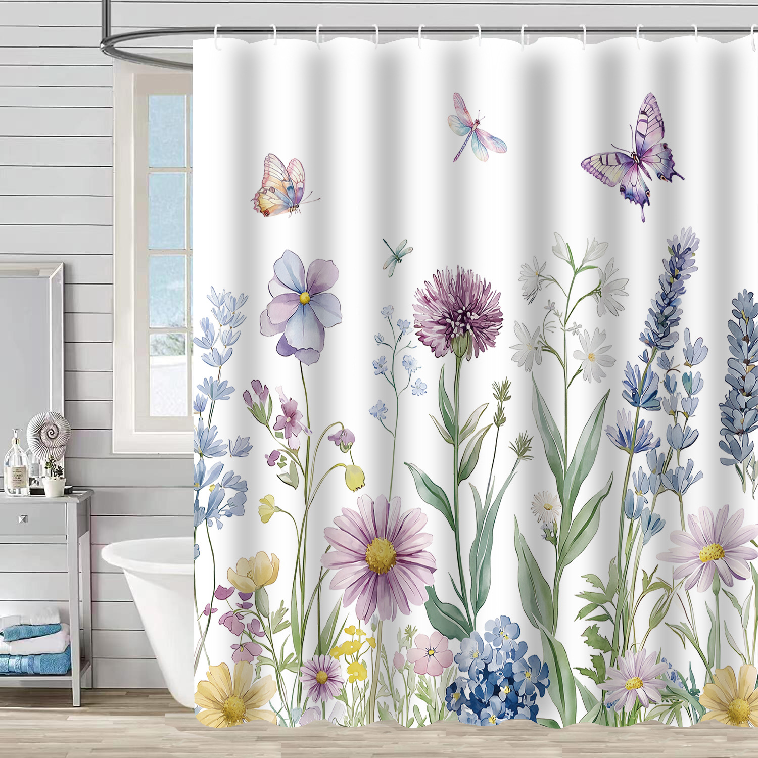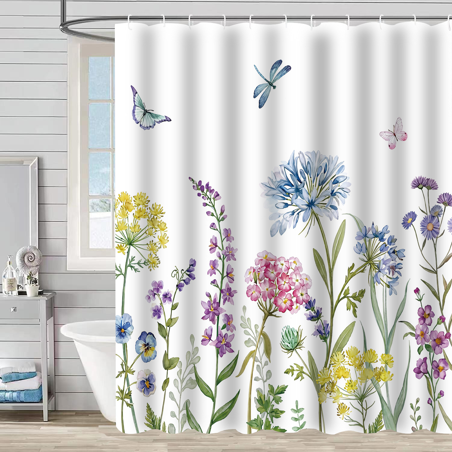 아마존 꽃과 녹색 식물 잎 목욕 커튼 방수 및 곰팡이 방지 디지털 프린트 숲 목욕 커튼 칸막이
