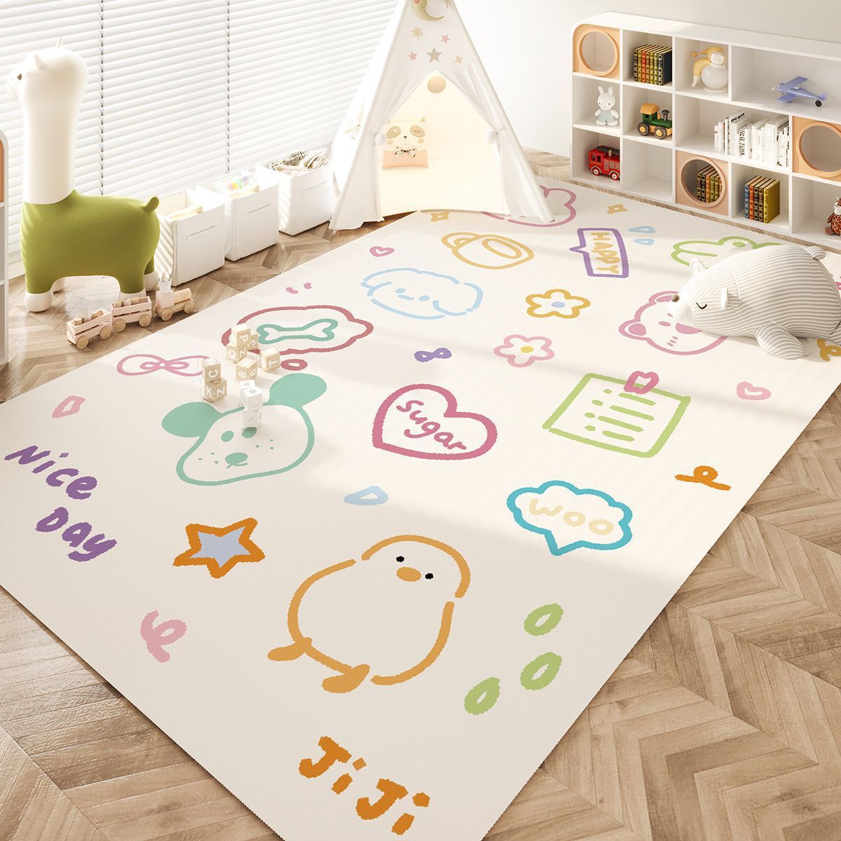 만화 귀여운 거실 바닥 매트 방수 닦아낼 수있는 빨 수있는 크롤링 매트 크롤링 매트 PVC 원터치 클린 매트