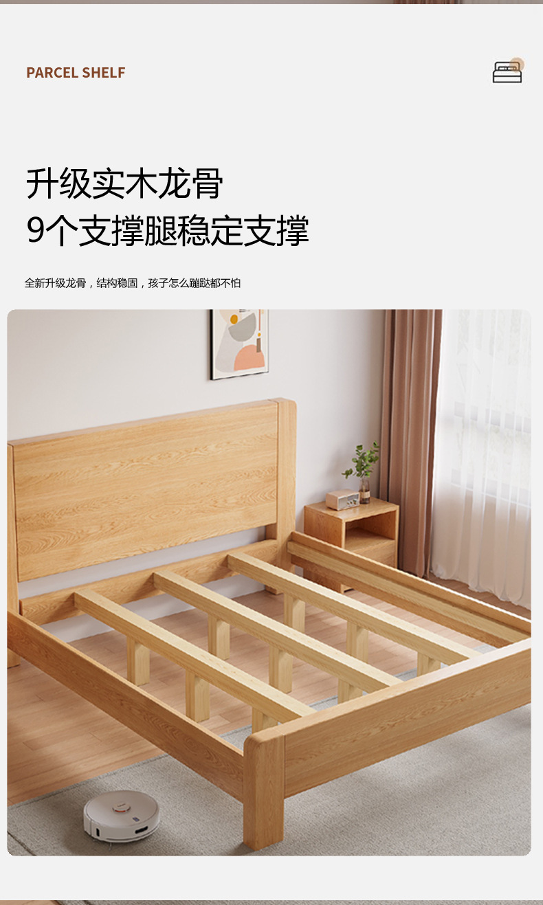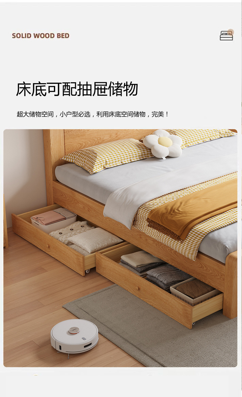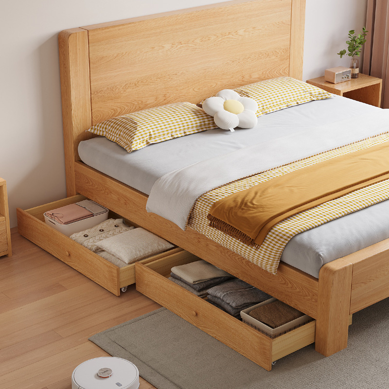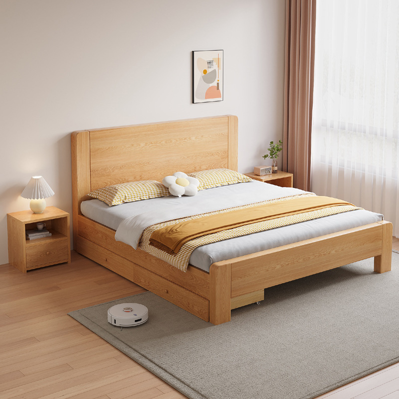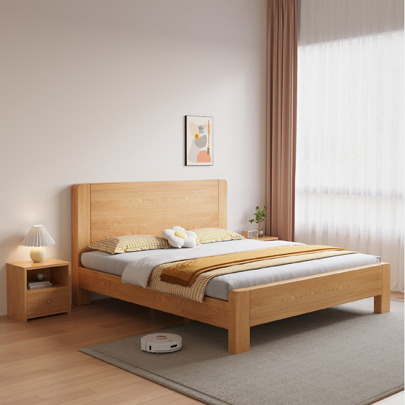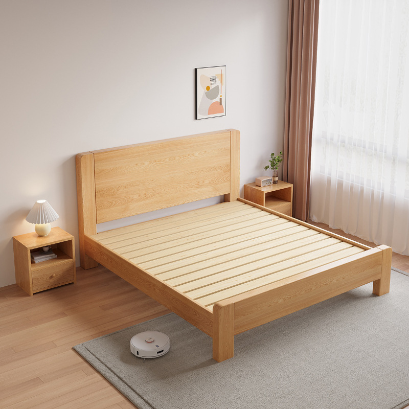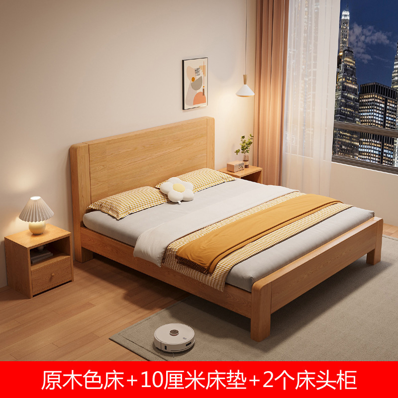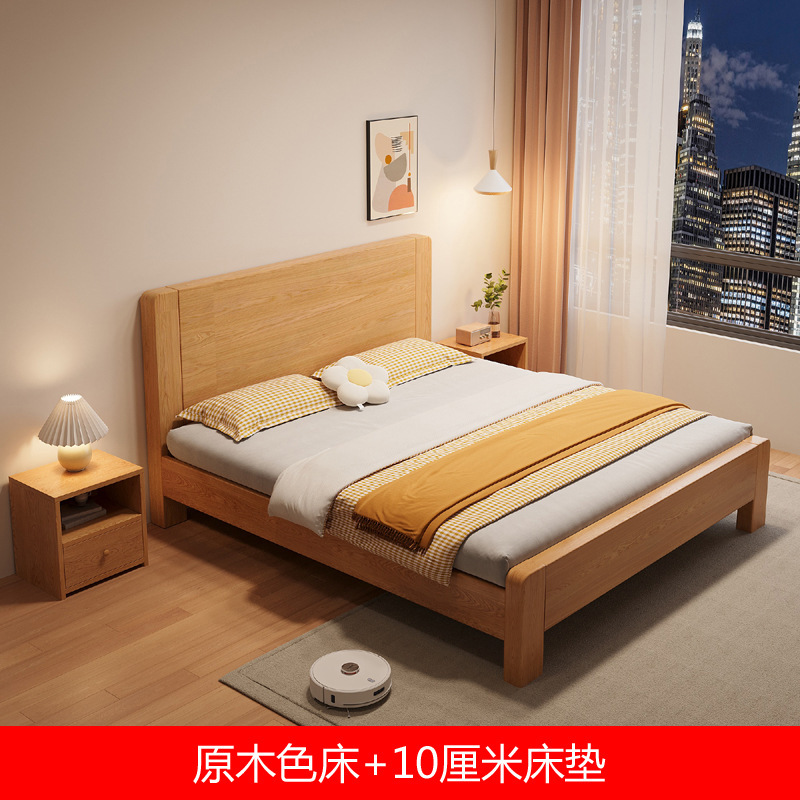 새로운 대형 침대, 원목 색상, 1.8m 더블 침대, 임대 주택용, 1.5m 소형 가정용, 경제적인 싱글 침대