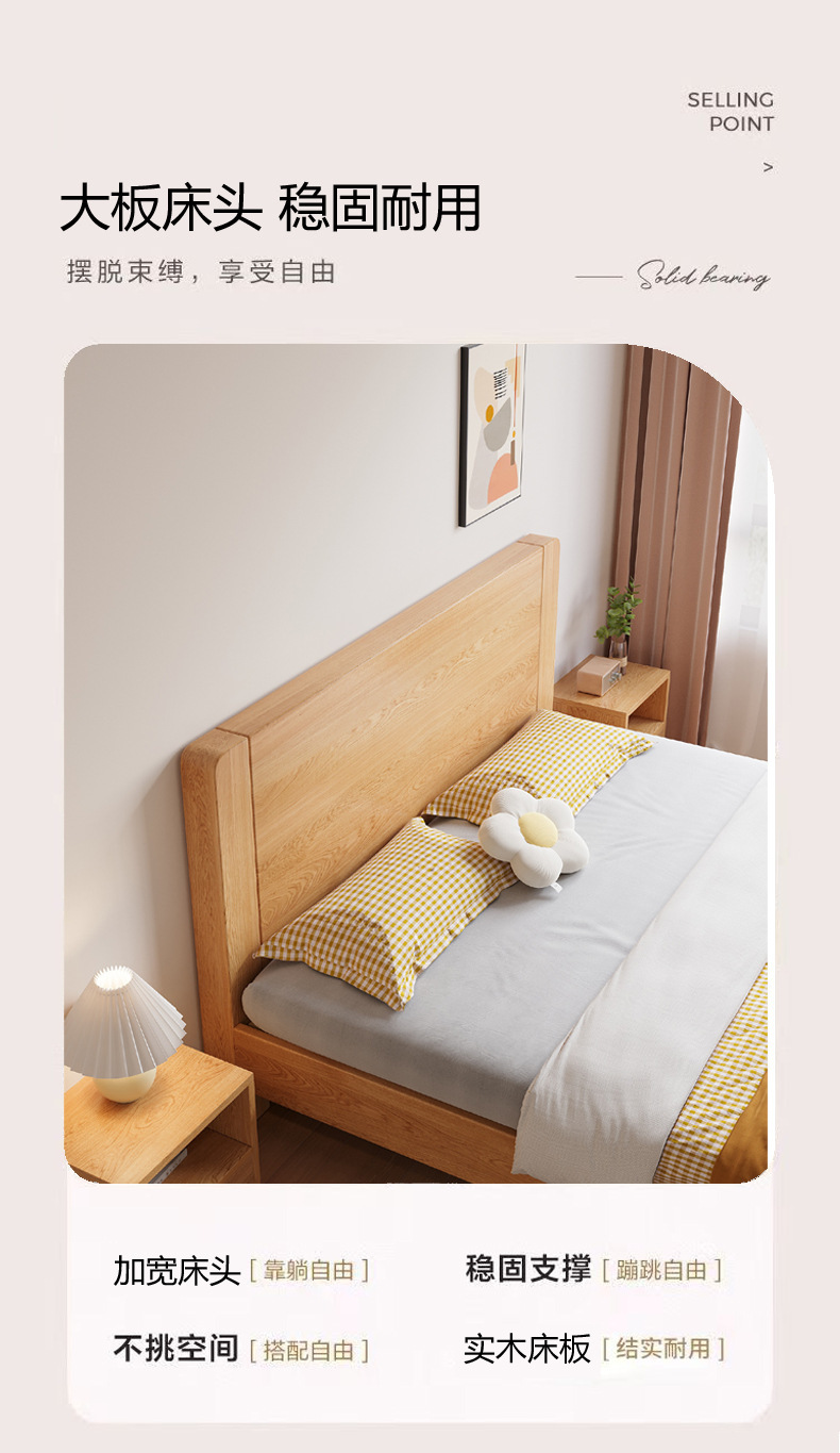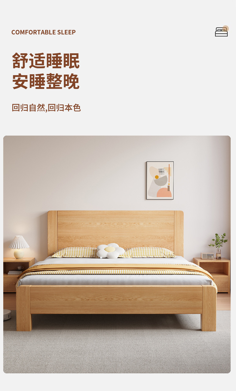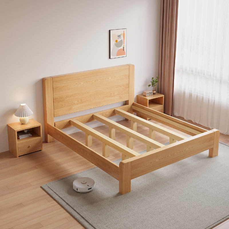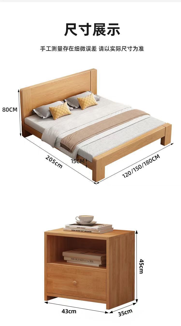 새로운 대형 침대, 원목 색상, 1.8m 더블 침대, 임대 주택용, 1.5m 소형 가정용, 경제적인 싱글 침대스토어 가기