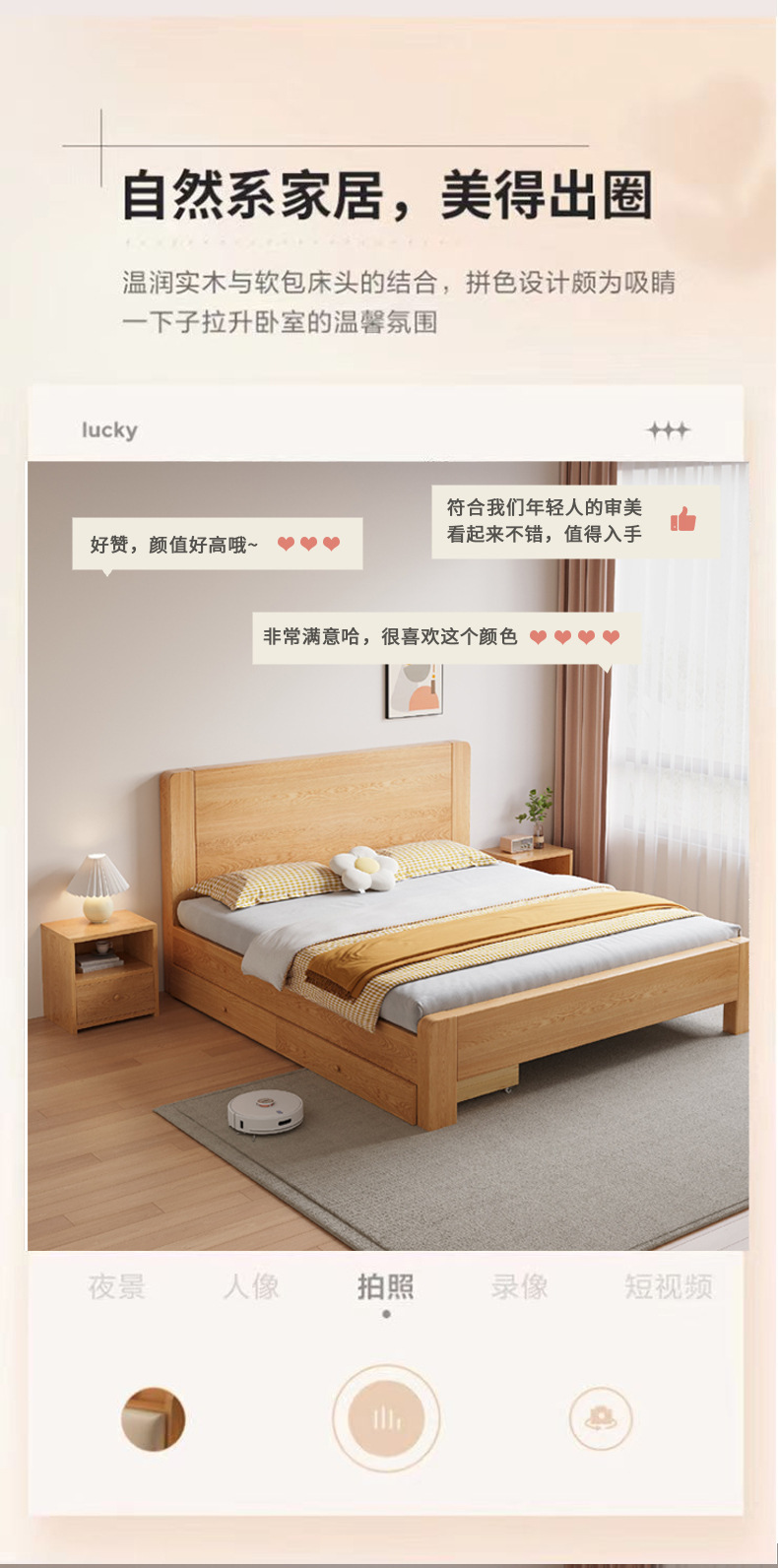 • 대형 나무 침대 + 침대 아래 대형 서랍 2개