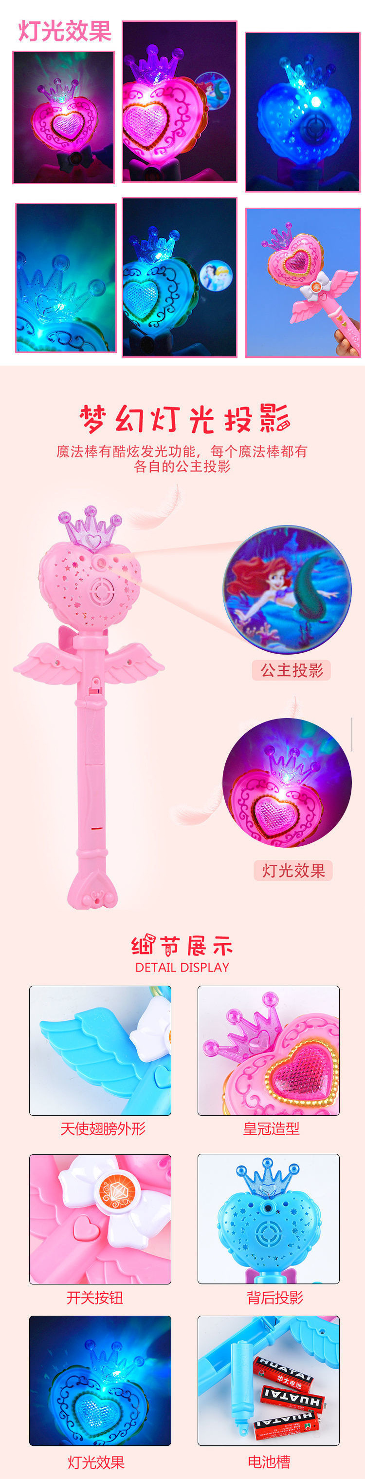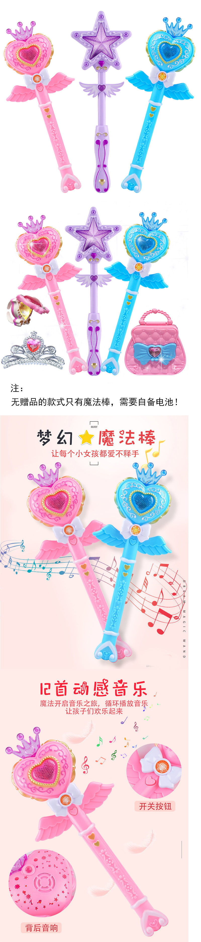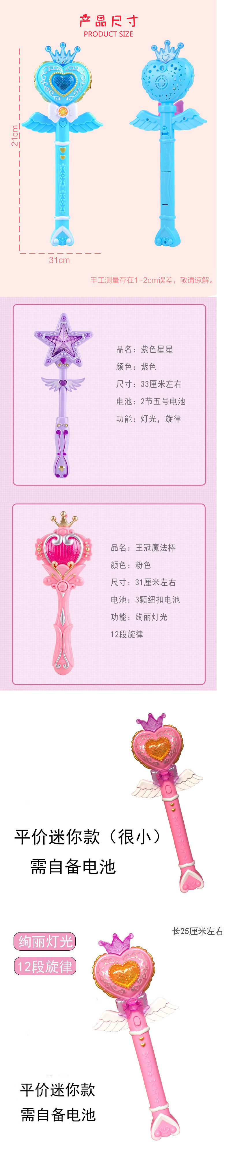 • 핑크색 - 마술봉 왕관 전체 플라스틱 포장(스크린 프로젝션 포함)