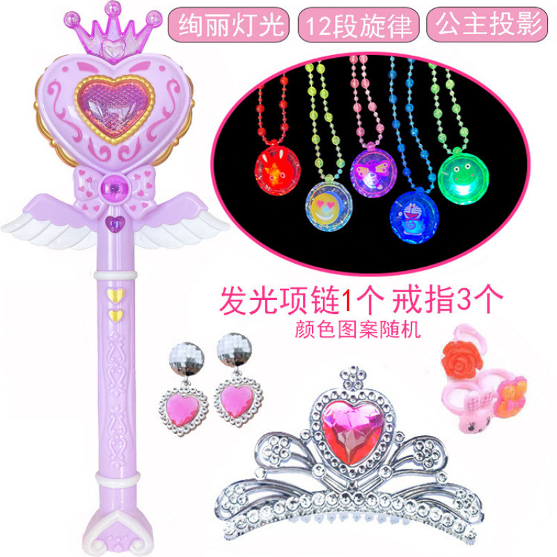 • 라지 러브 스크린 프로젝션 파우더 + 야광 목걸이 + 크라운 귀걸이 및 반지