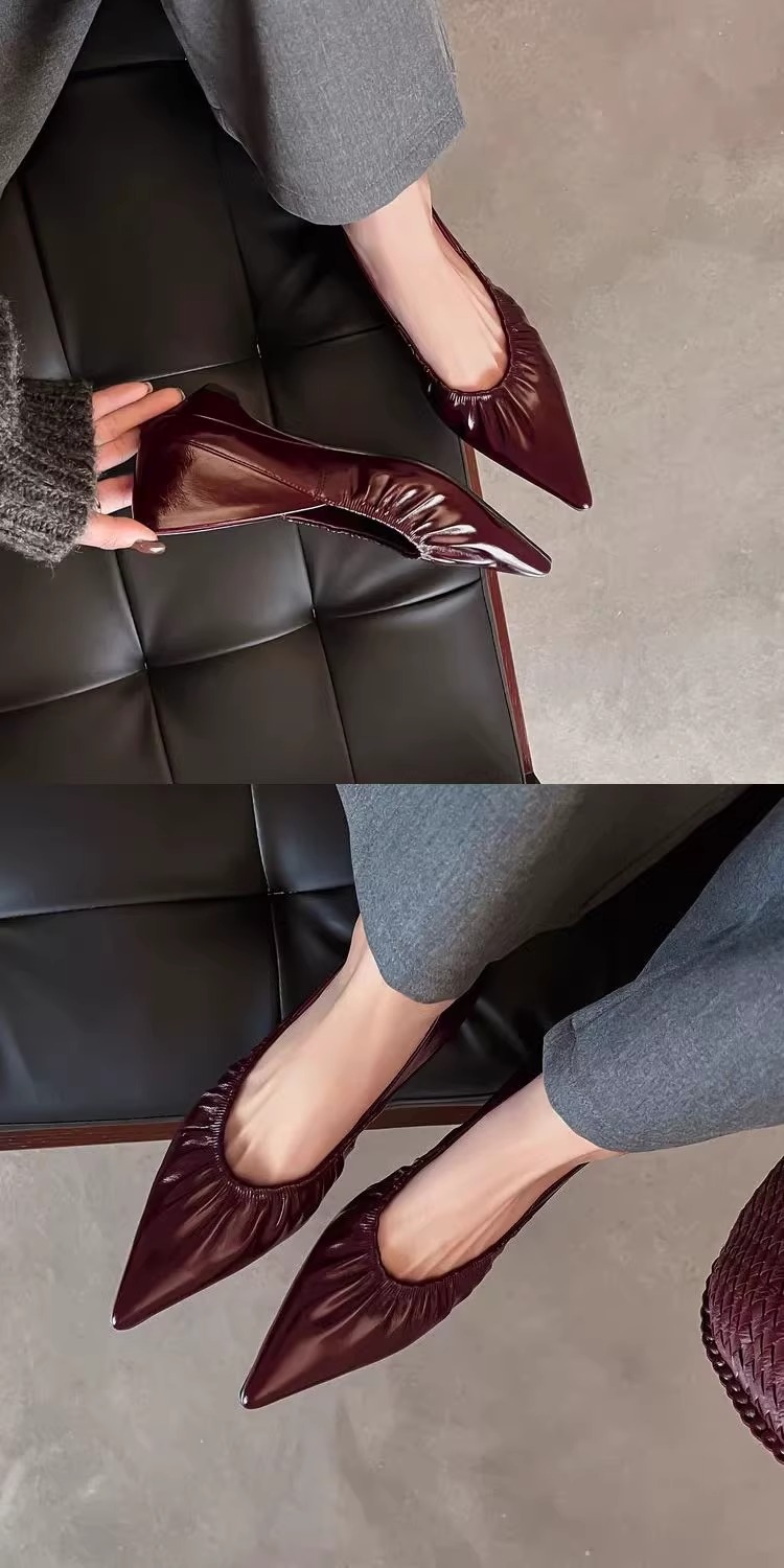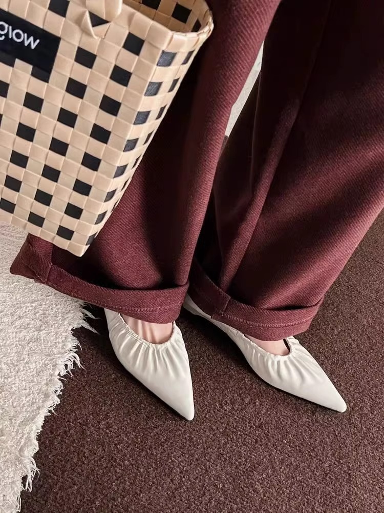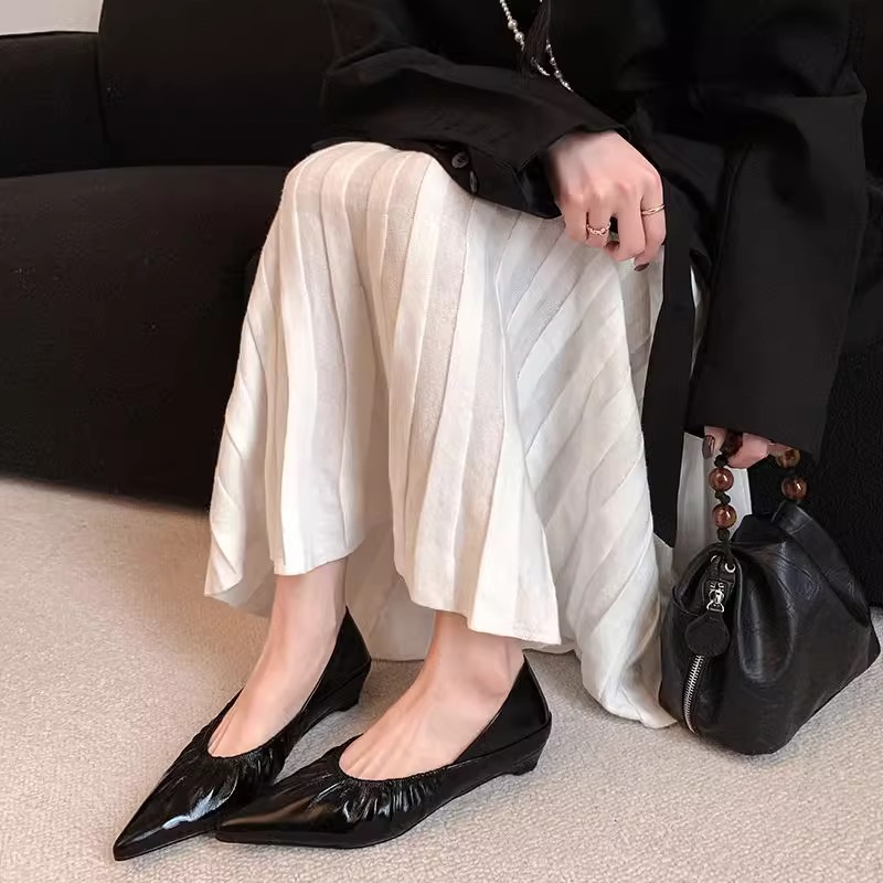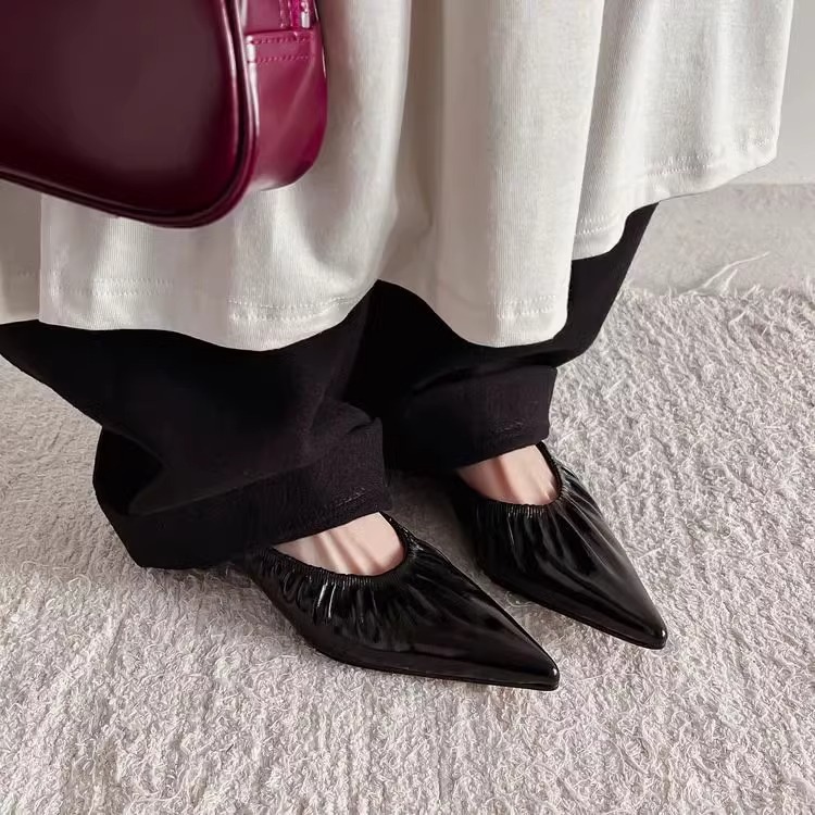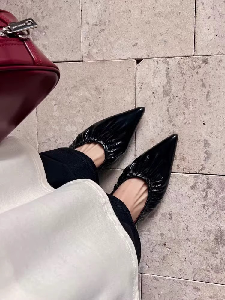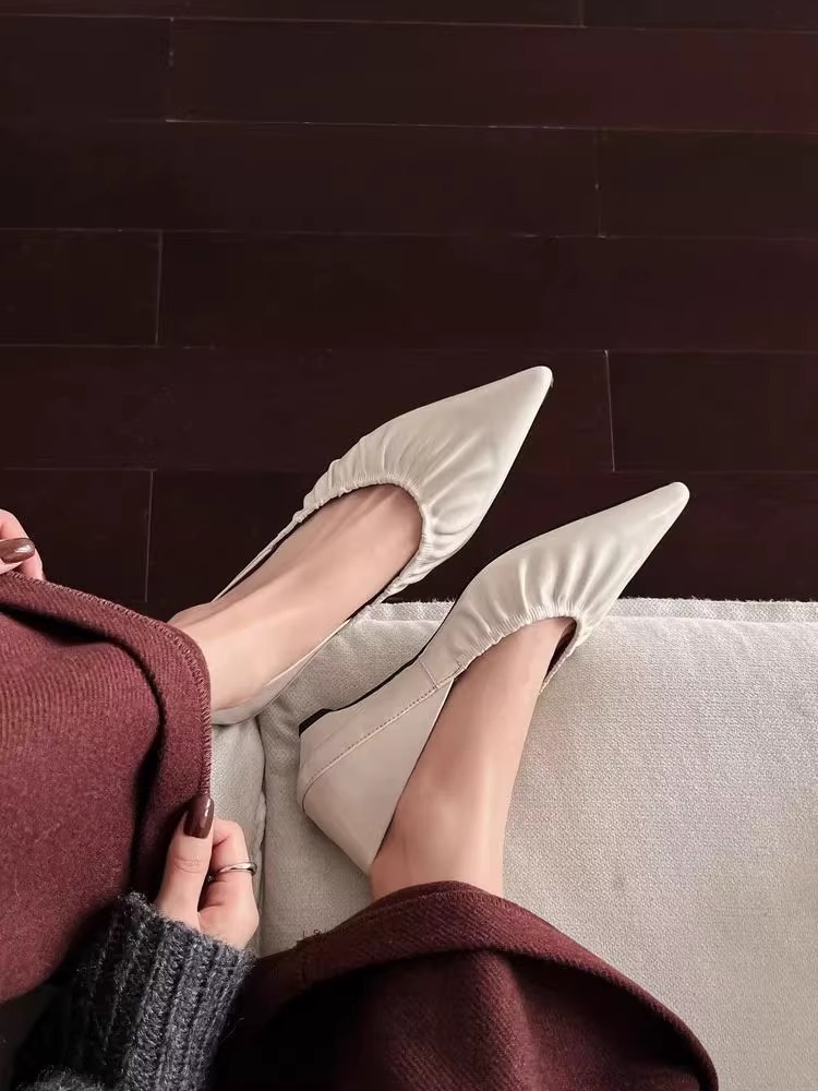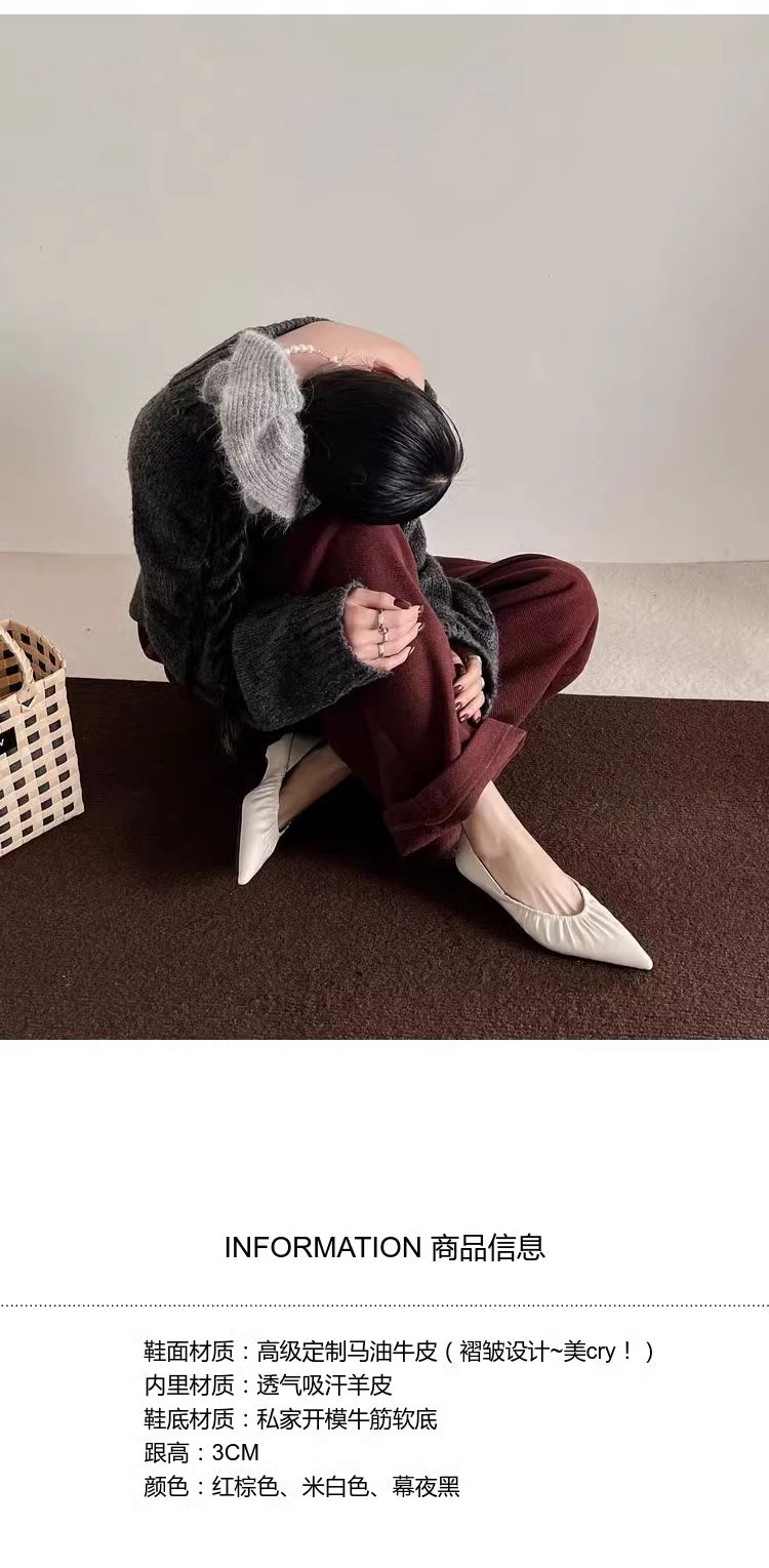 재고 있음 ~ 양가죽 버전 2025 봄 여름 섹시한 뾰족한 주름 부드러운 신발 얕은 입 통근 저녁 바람 작은 가죽 신발스토어 가기