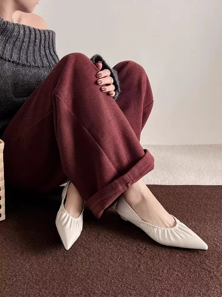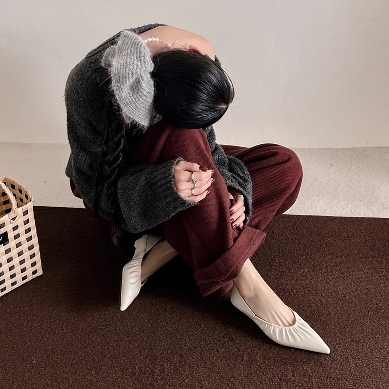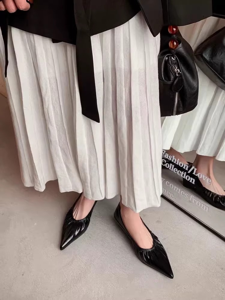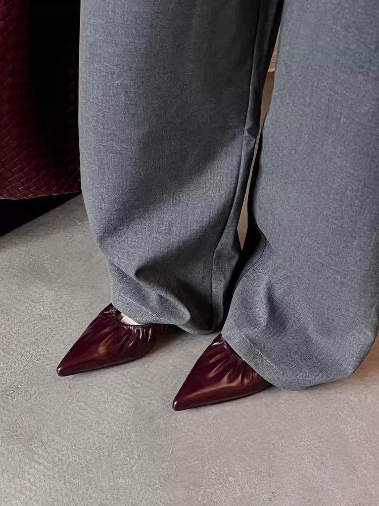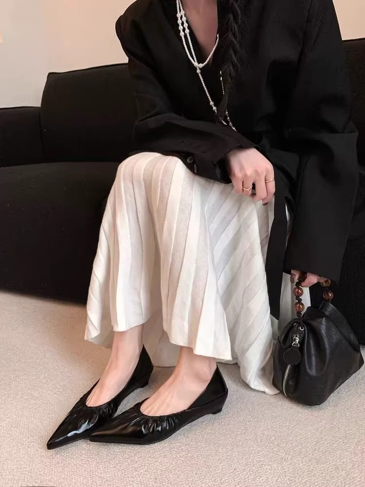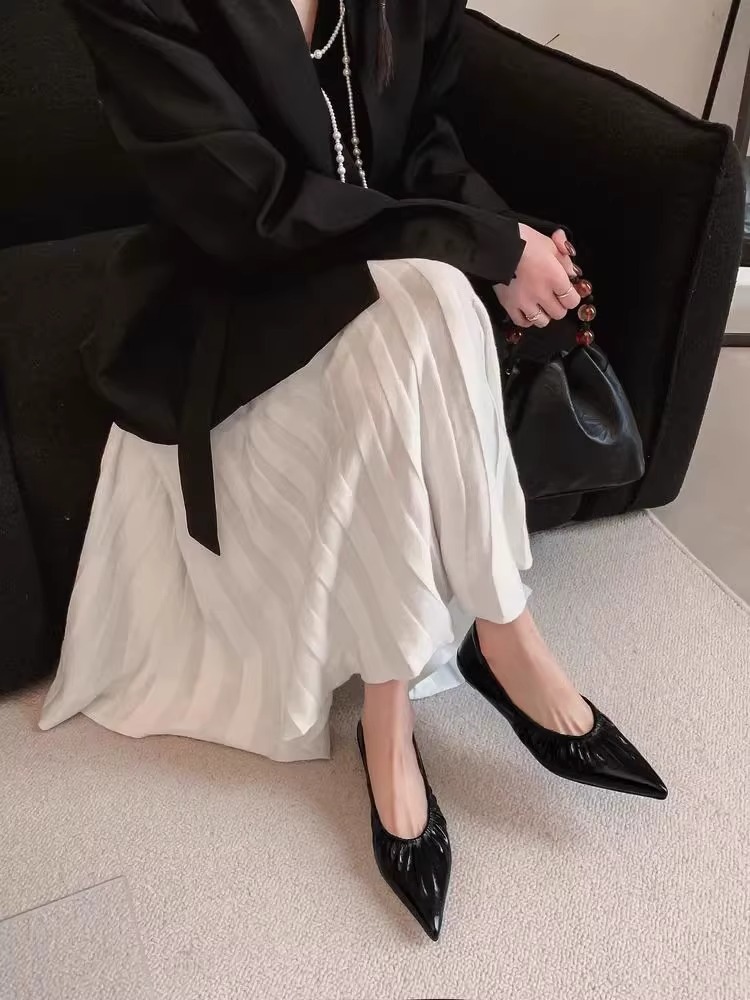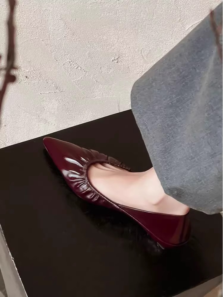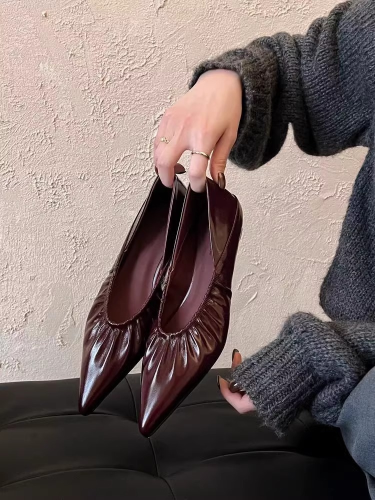 재고 있음 ~ 양가죽 버전 2025 봄 여름 섹시한 뾰족한 주름 부드러운 신발 얕은 입 통근 저녁 바람 작은 가죽 신발스토어 가기