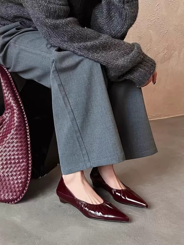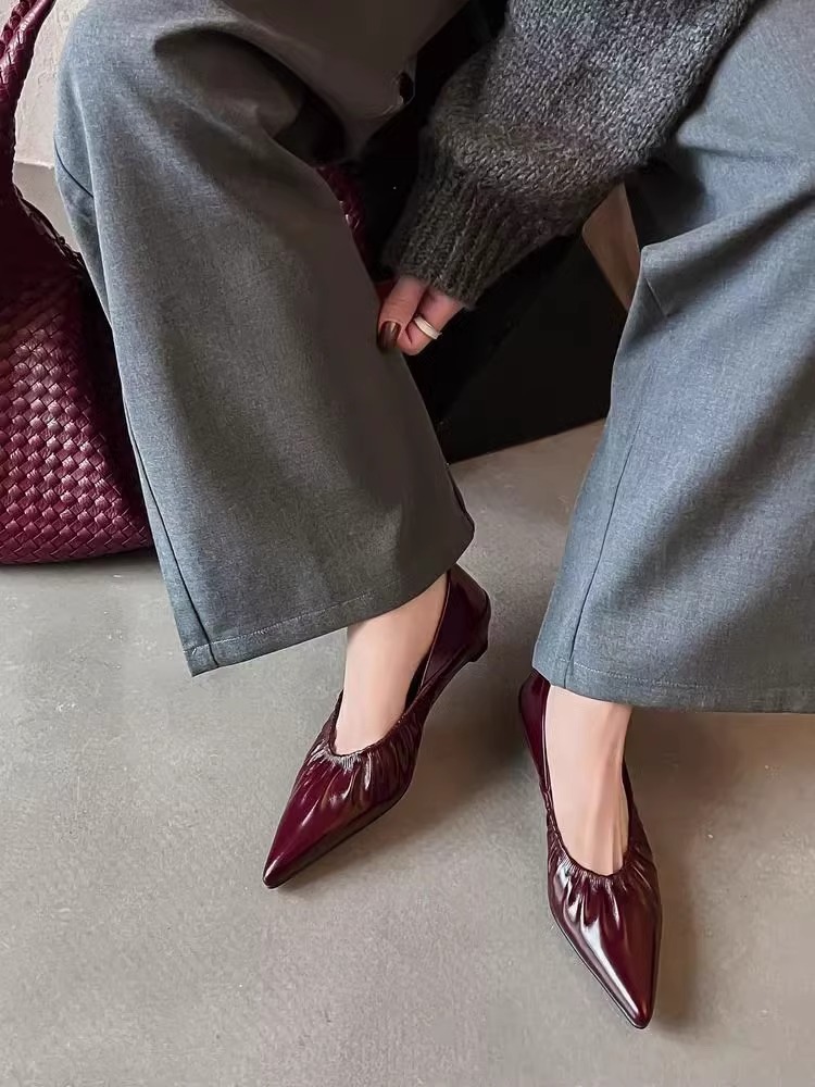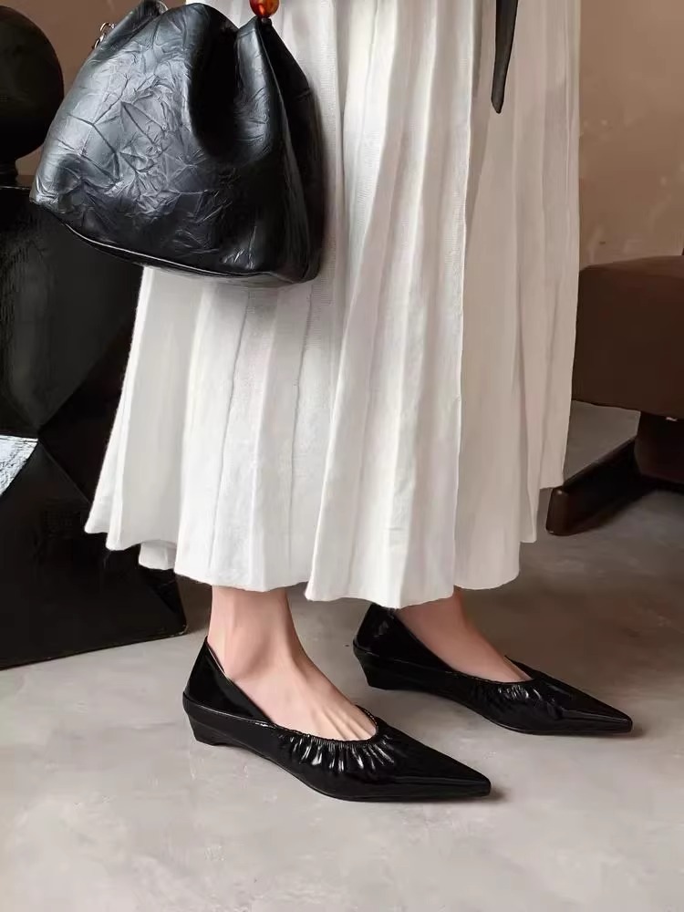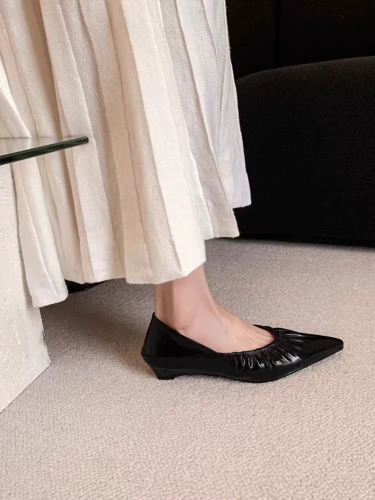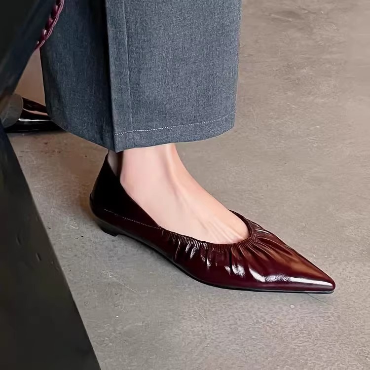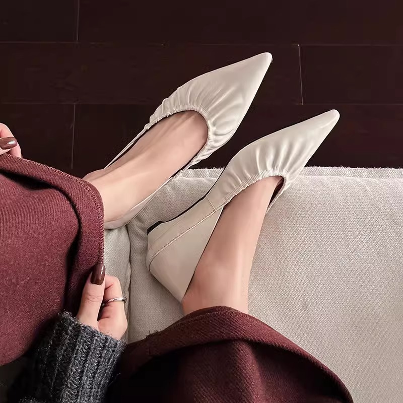 재고 있음 ~ 양가죽 버전 2025 봄 여름 섹시한 뾰족한 주름 부드러운 신발 얕은 입 통근 저녁 바람 작은 가죽 신발