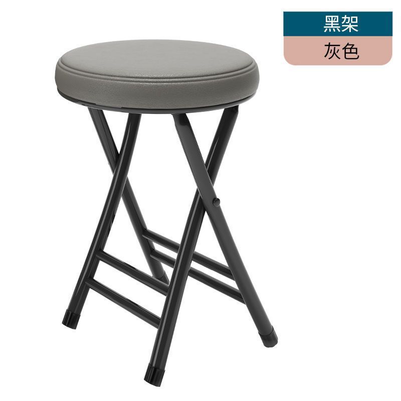 • [둥근 스툴] 블랙 프레임과 그레이 가죽