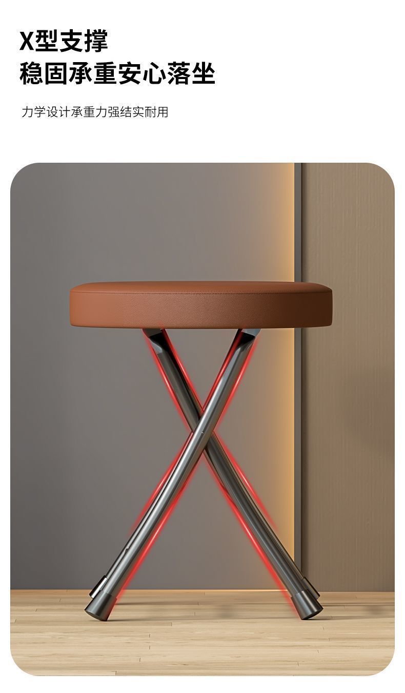 • [둥근 스툴] 블랙 프레임 브라운 가죽