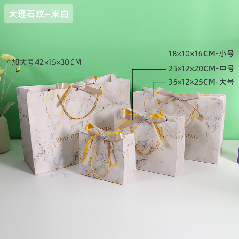 흰색 카드지 선물 가방, 고급스러운 대리석 무늬, 정교한 기념품 선물 가방, 명절 선물용 핸드백 포장 가방스토어 가기
