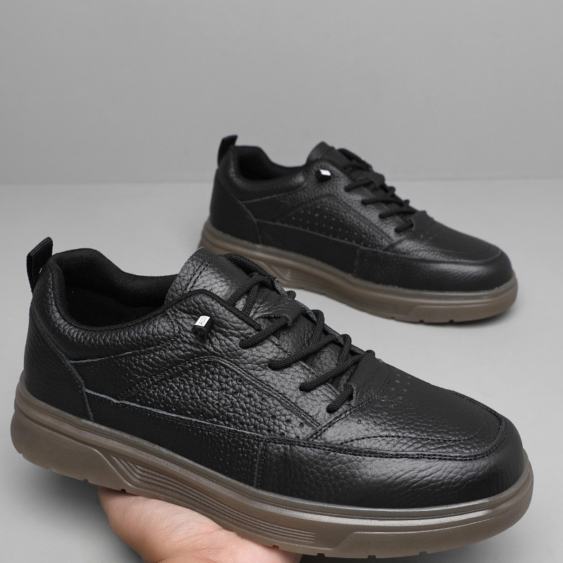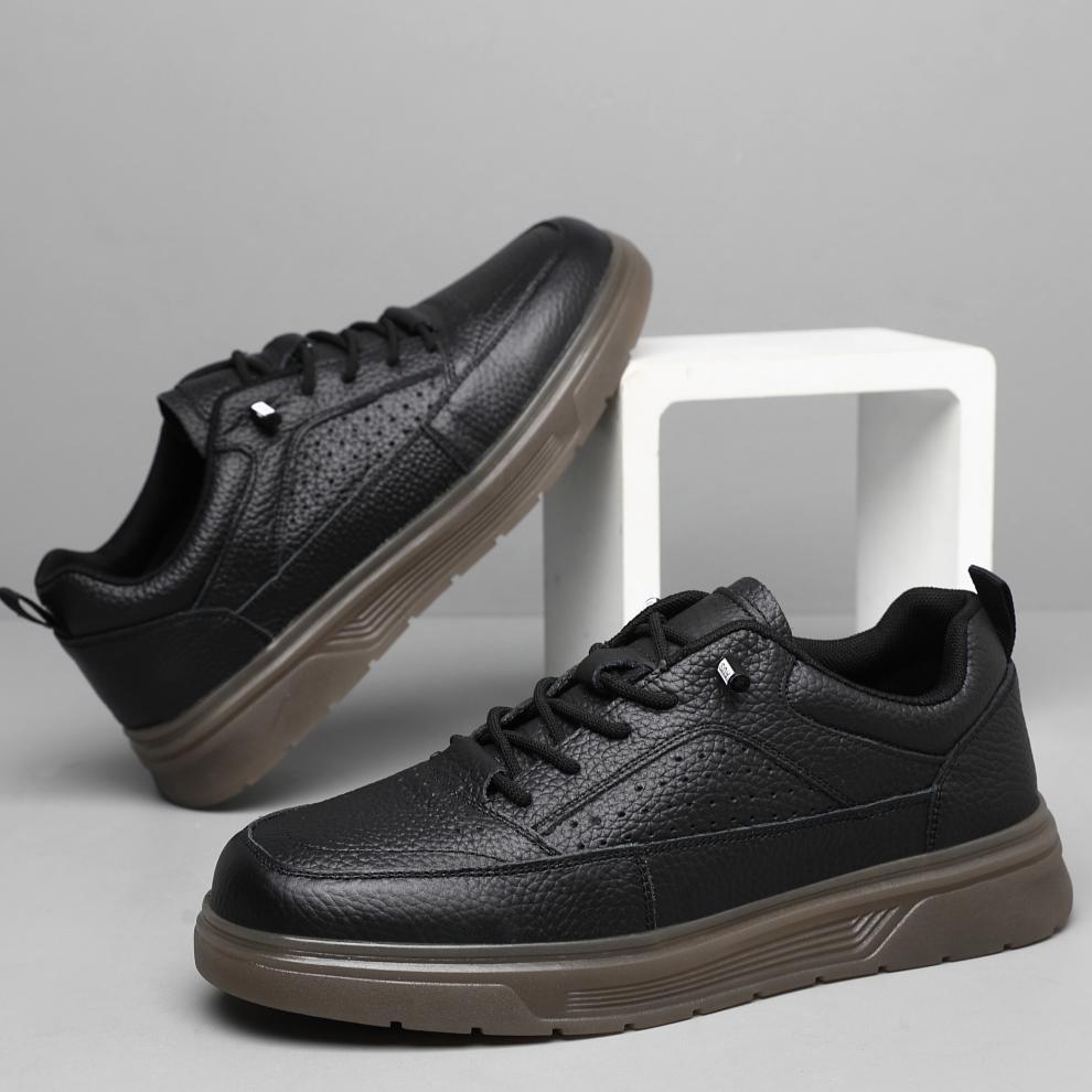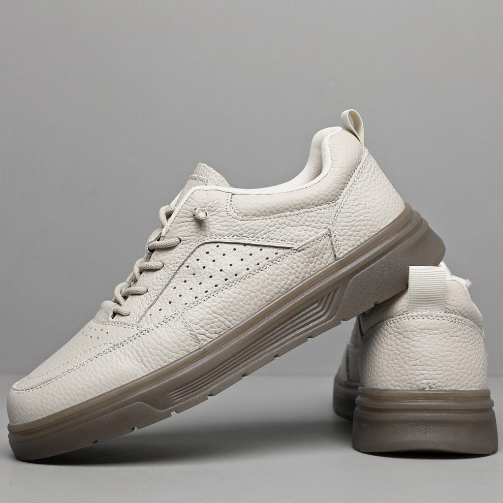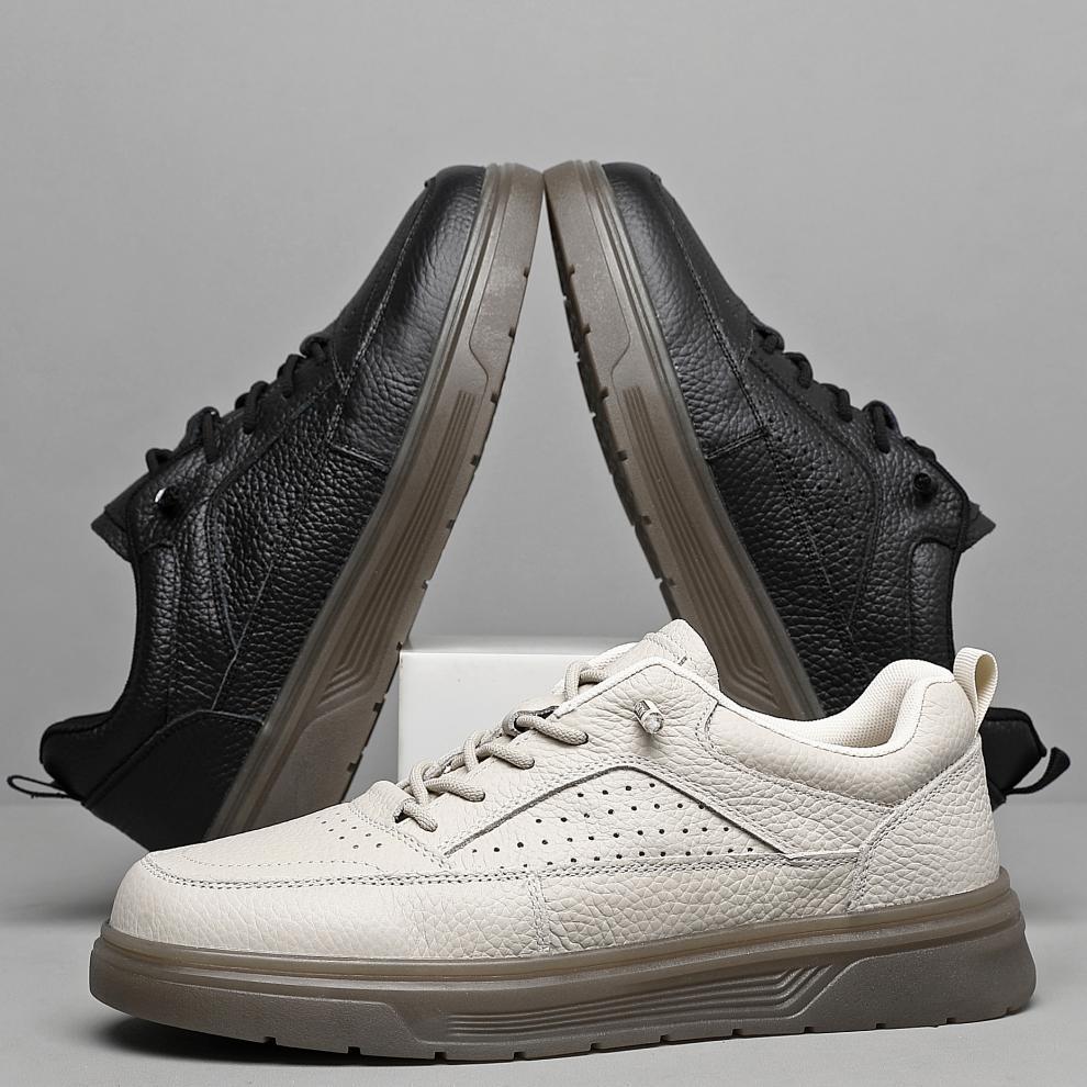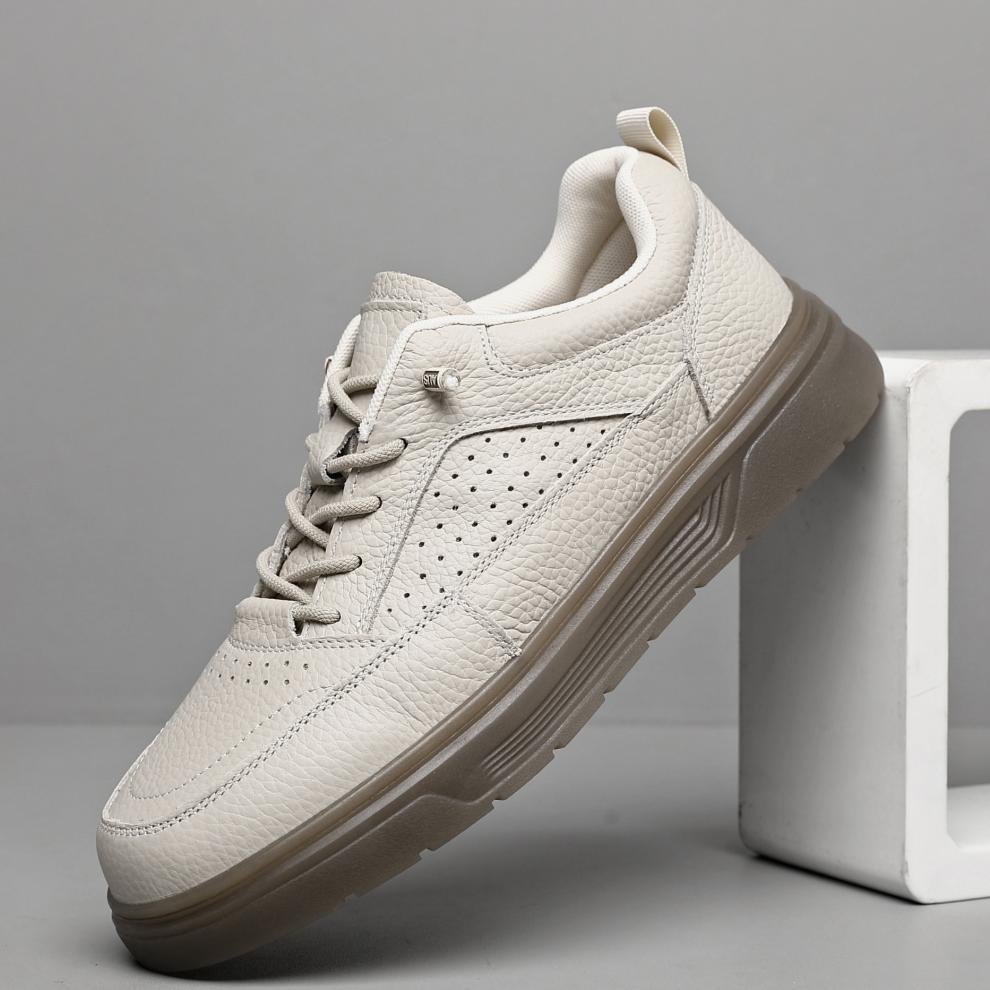 캐주얼하고 다재다능한 화이트 패셔너블한 남성화, 부드러운 표면의 두꺼운 밑창 신발, 통기성 좋은 신발, 2025 여름 중공 로우탑 가죽 신발스토어 가기