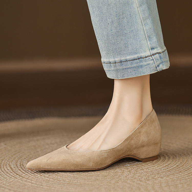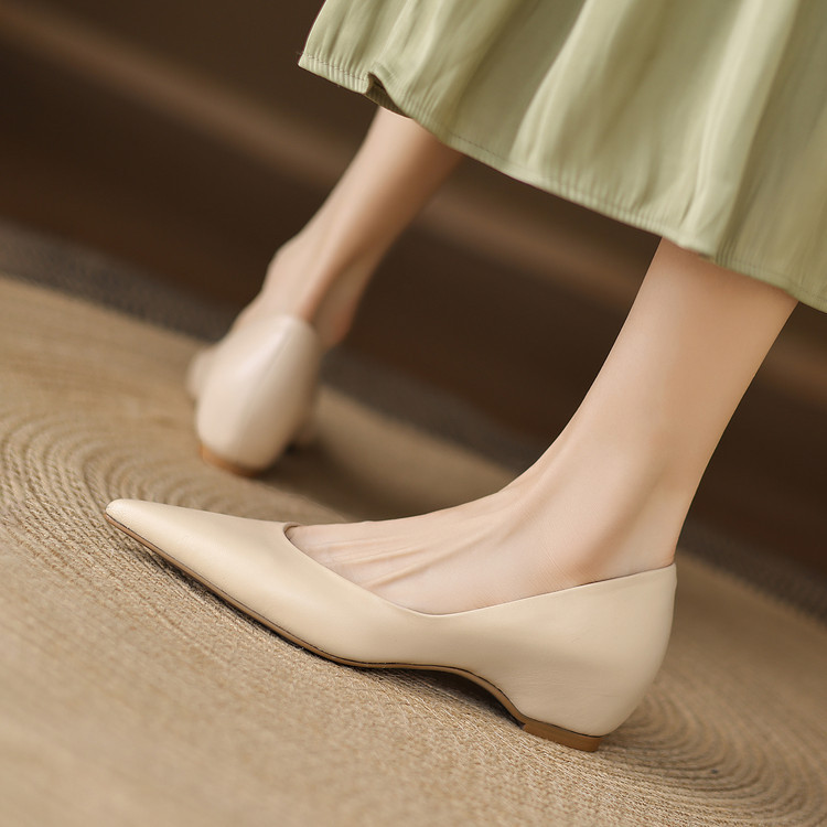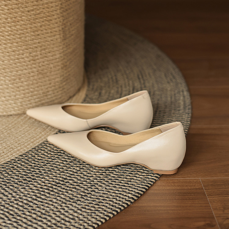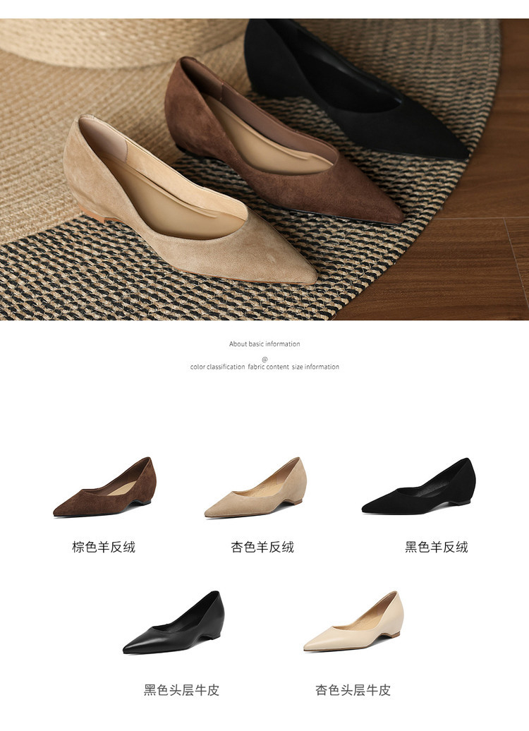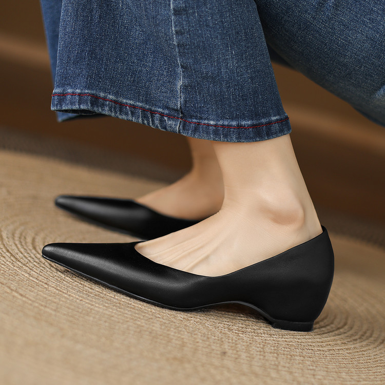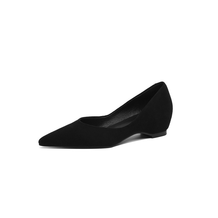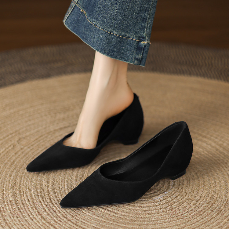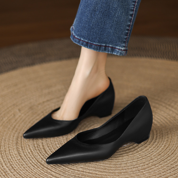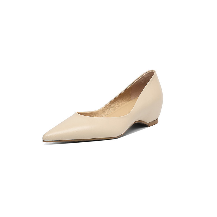 여성용 내부 키높이 심플 슈즈, 미드힐 슈즈, 가을 겨울 신상품, 내부 및 외부 풀 가죽 로우탑 포인티드 토 심플 슈즈, 작업화스토어 가기