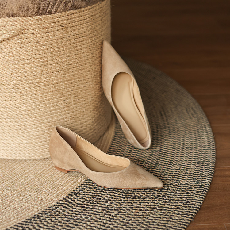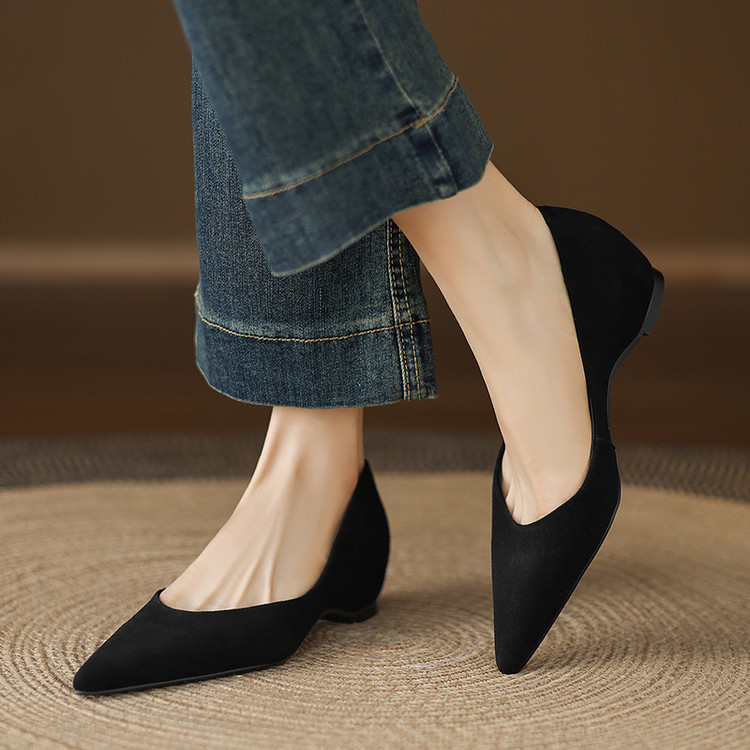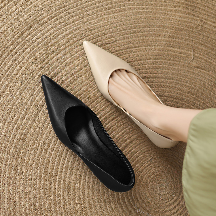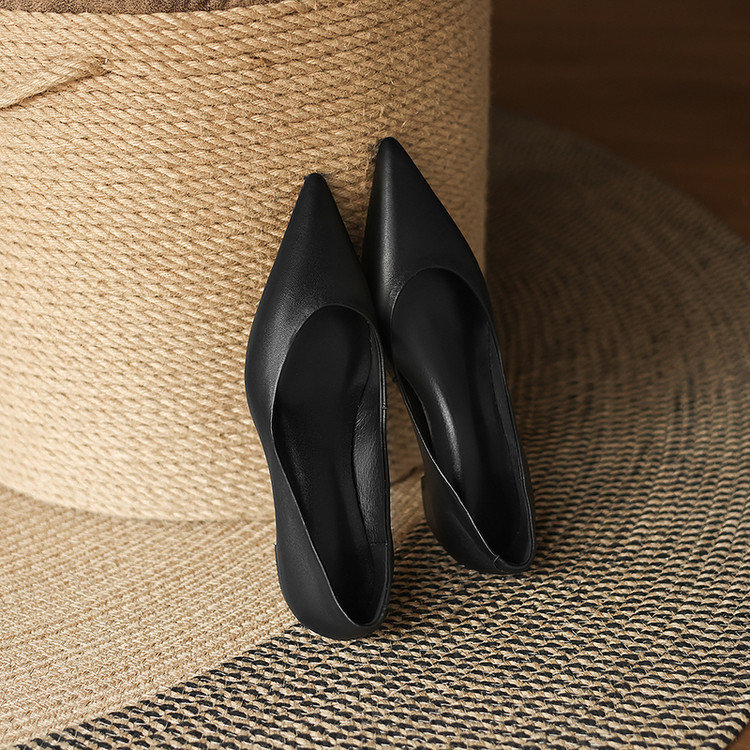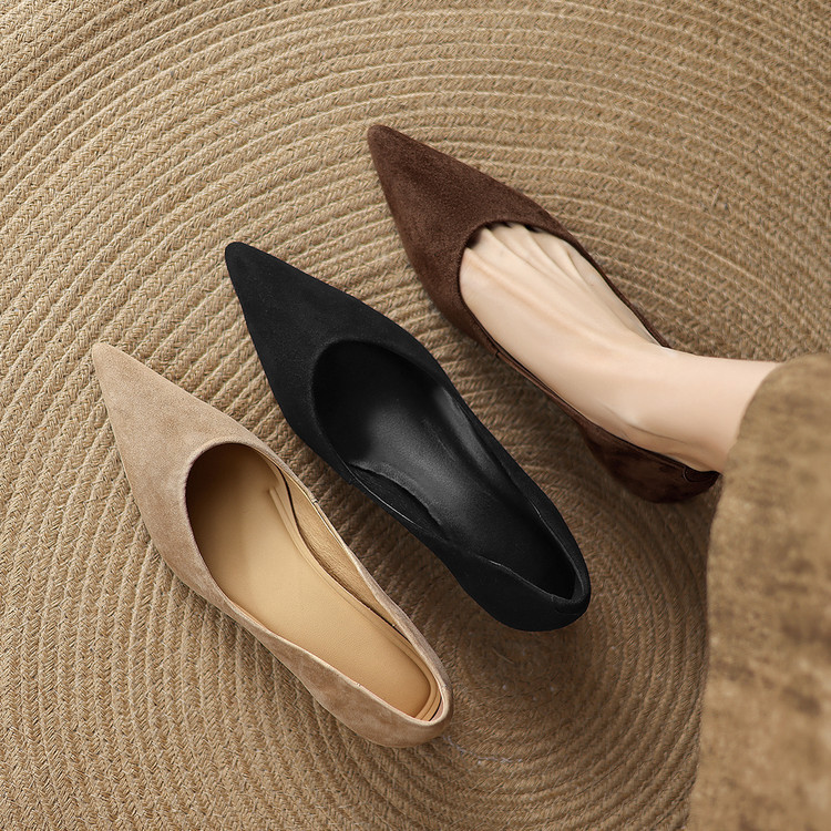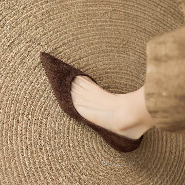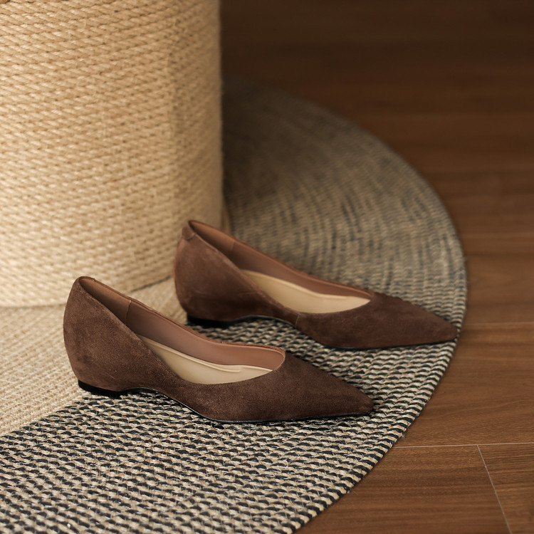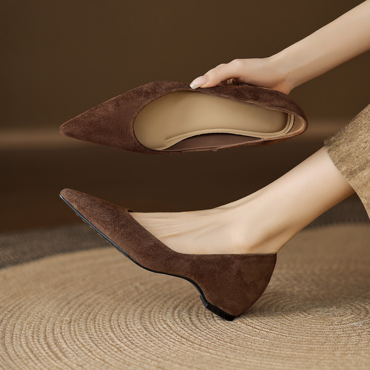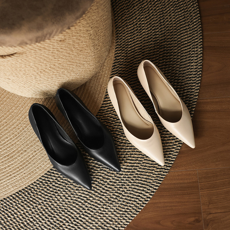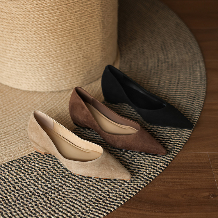 여성용 내부 키높이 심플 슈즈, 미드힐 슈즈, 가을 겨울 신상품, 내부 및 외부 풀 가죽 로우탑 포인티드 토 심플 슈즈, 작업화스토어 가기