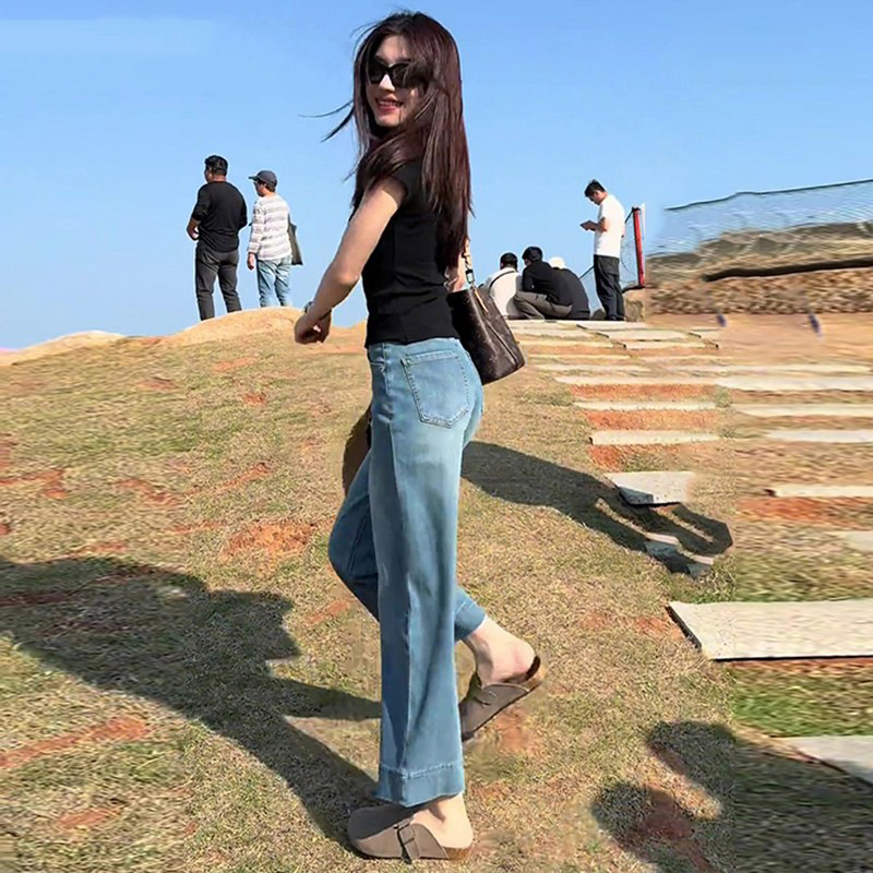 여성용 텐셀 리오셀 스트레이트 9부 청바지 여름 얇은 2025 새로운 루즈 슬림 캐주얼 와이드 팬츠스토어 가기