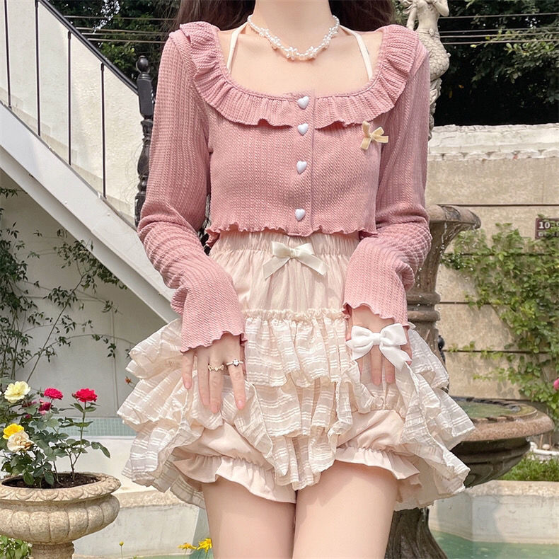 2025 새로운 여름 정장 발레 스타일 작은 부드러운 핑크 코트 보우 케이크 스커트 여성용 투피스 세트스토어 가기